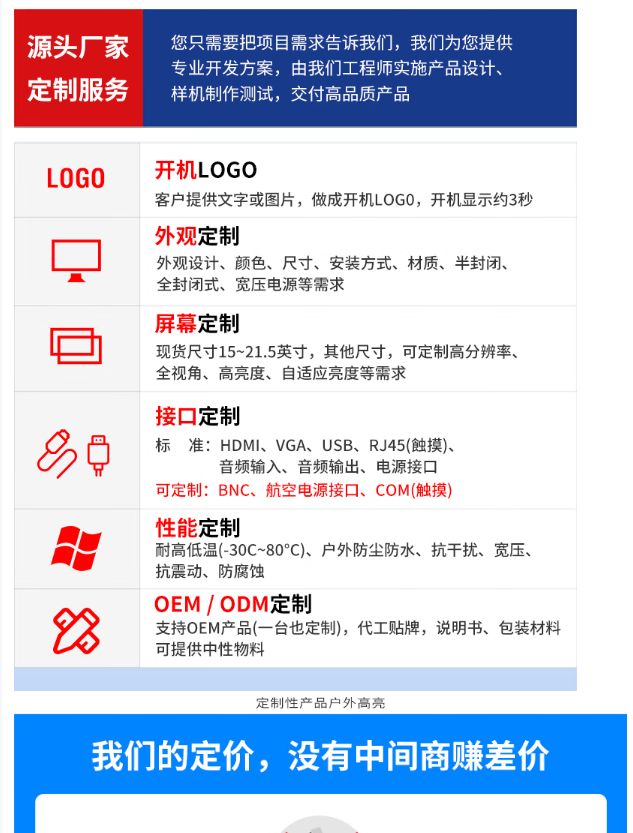 Встраиваемый промышленный дисплей с резистивно-емкостным сенсорным экраном, промышленный сенсорный монитор для систем управления, настенный шкаф