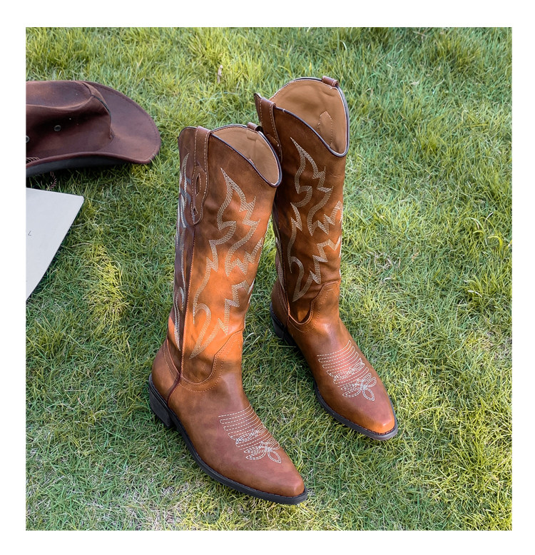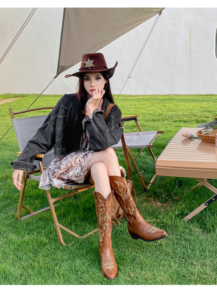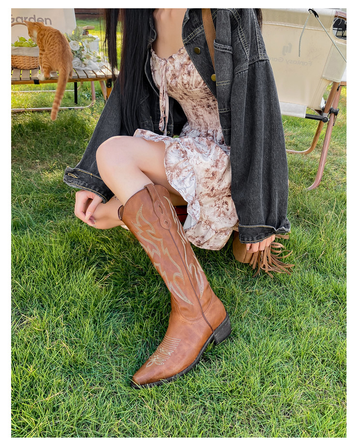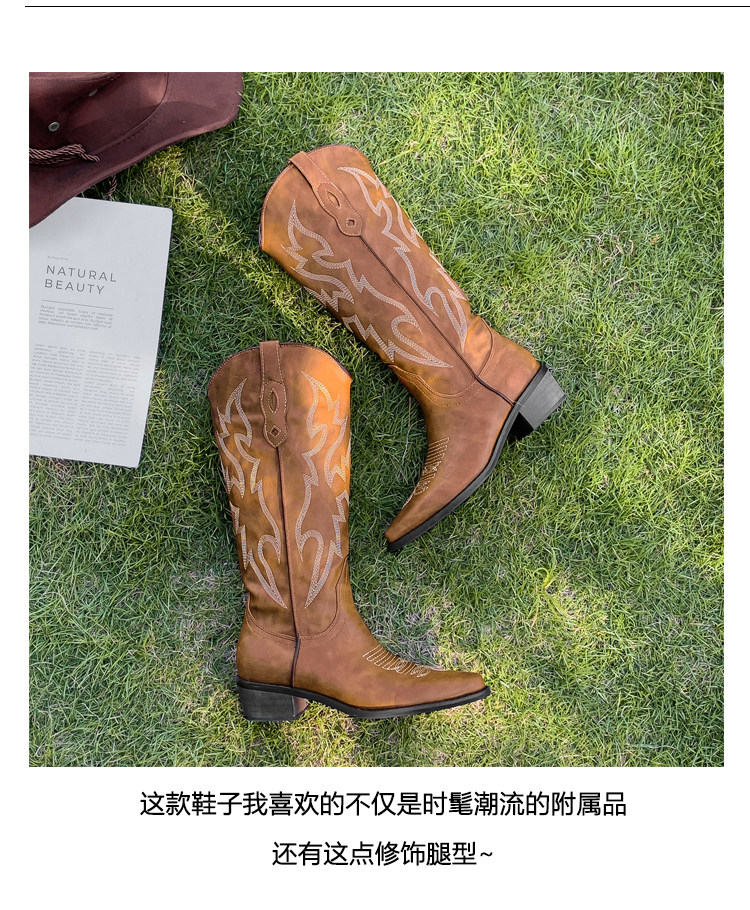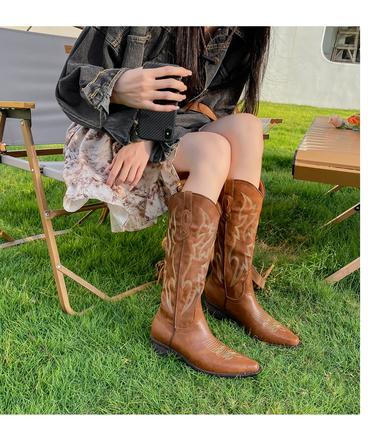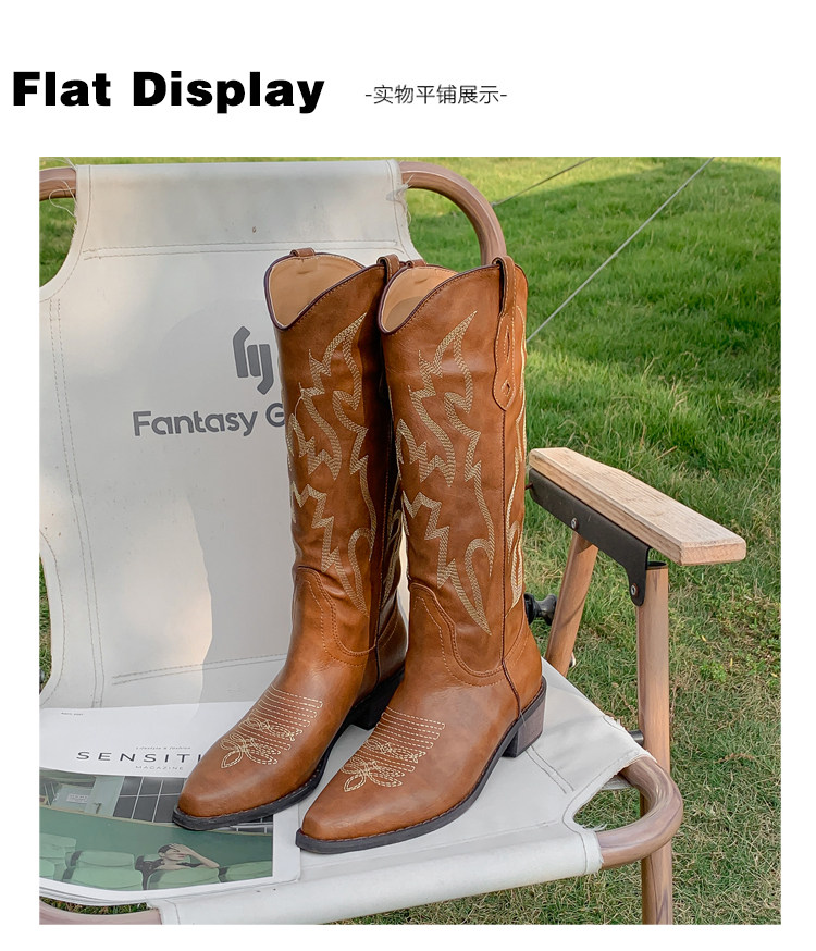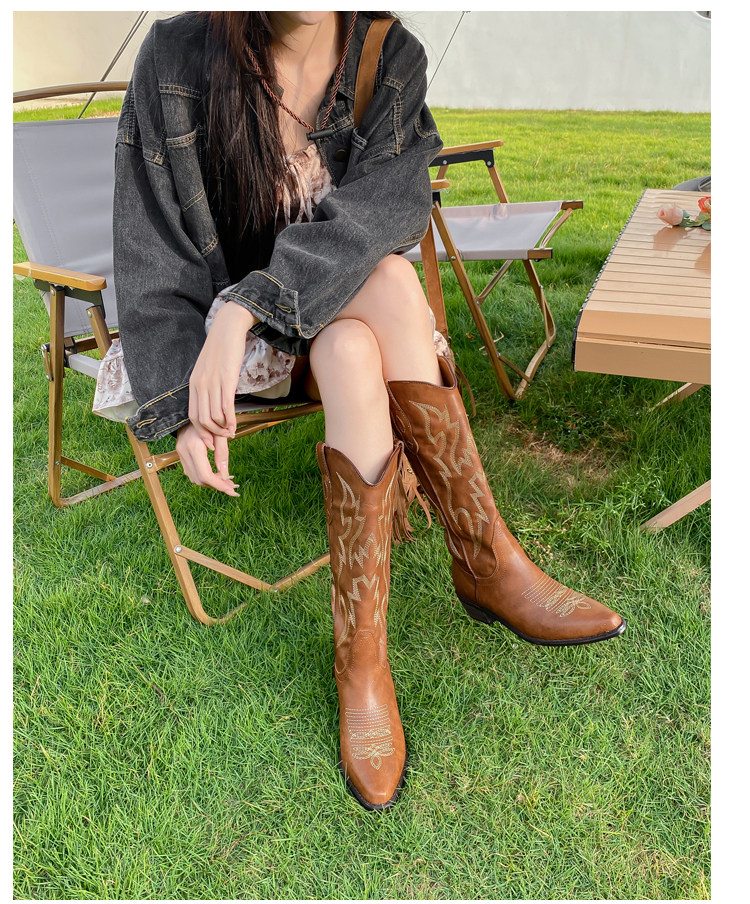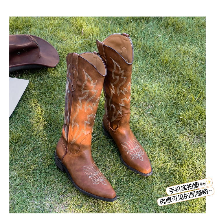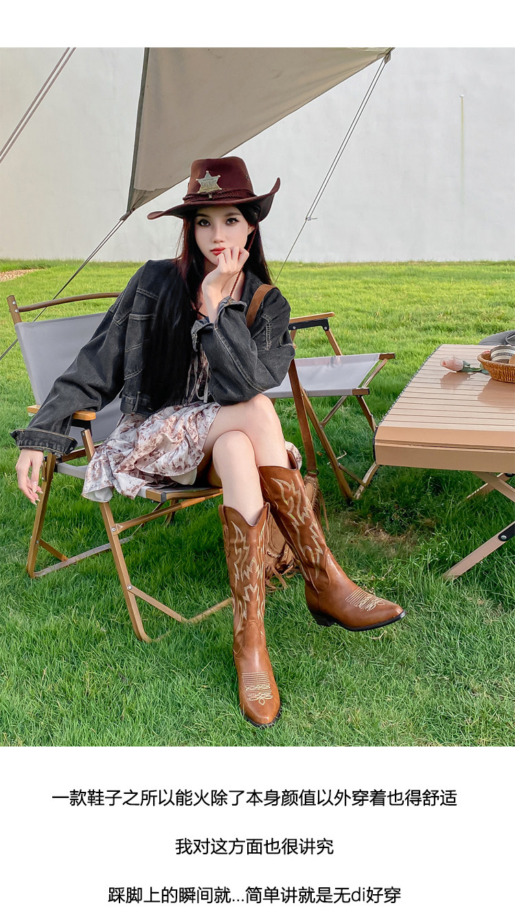 He Sui's Same Style Western Cowboy Boots for Women, 2025 Winter New Popular Xinjiang Riding Boots, Great for Thick Legs, Long Boots