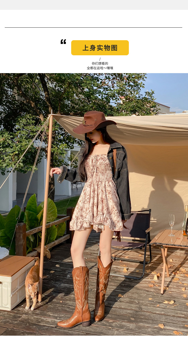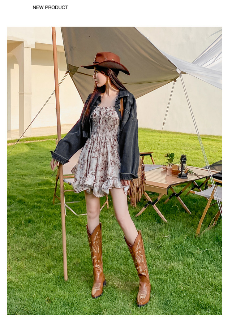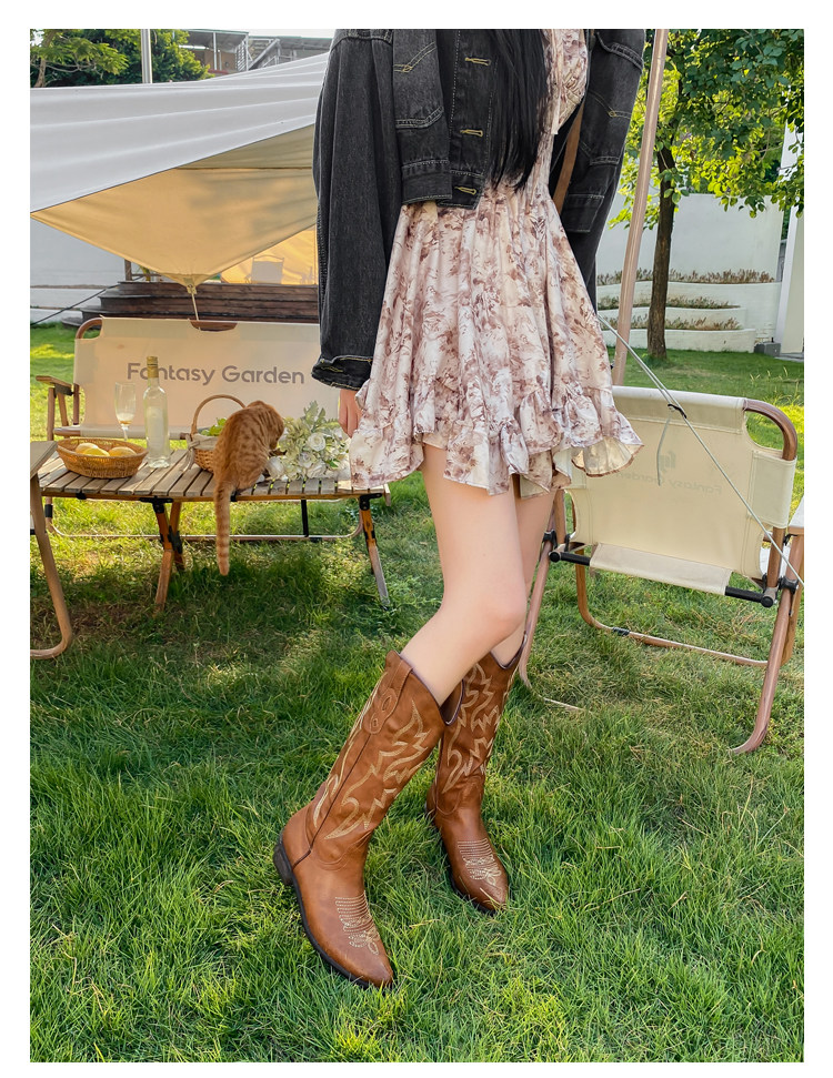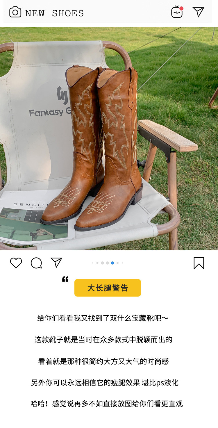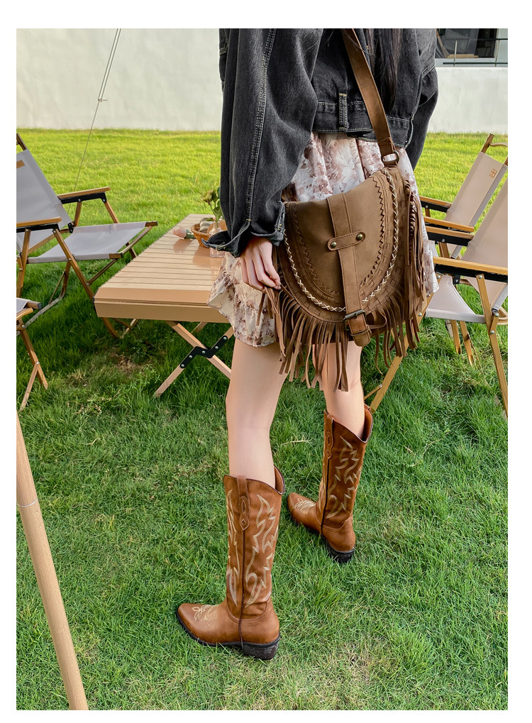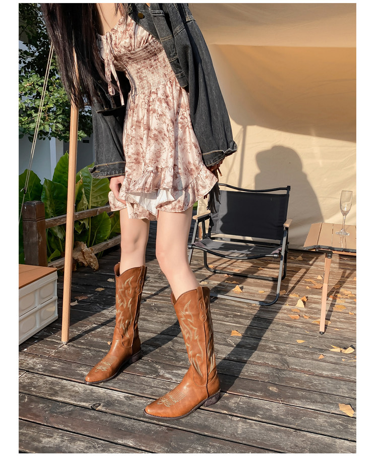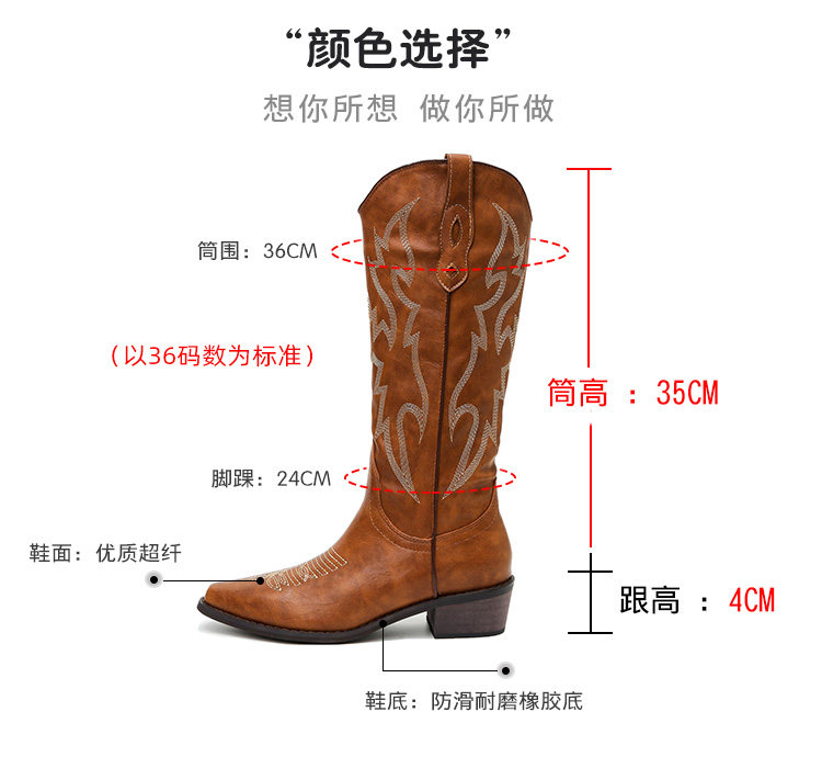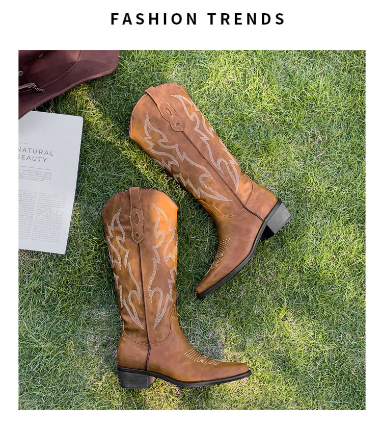 He Sui's Same Style Western Cowboy Boots for Women, 2025 Winter New Popular Xinjiang Riding Boots, Great for Thick Legs, Long Boots