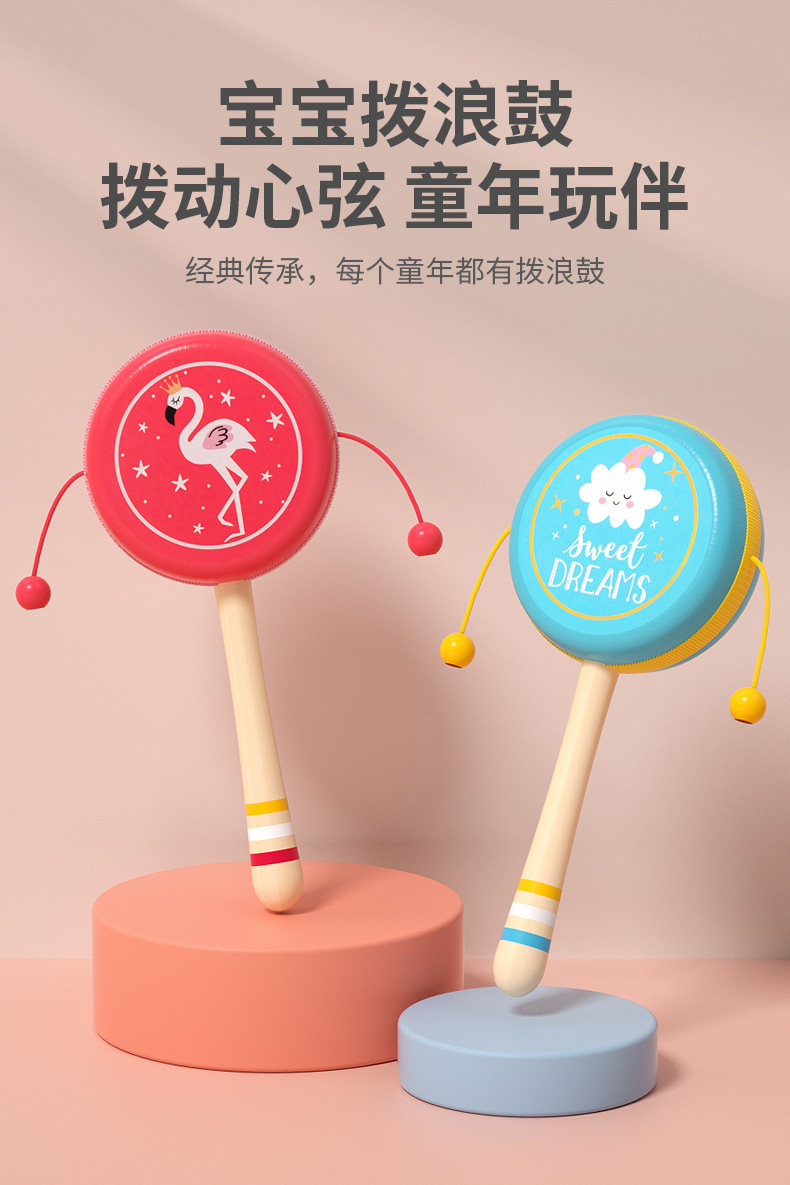 Wooden Traditional Rattle Baby Toy Old-Fashioned Style for 3-Year-Old Baby 2 Newborn 1 Hand Bell 0 Sand Hammer Soothing Wave Drum