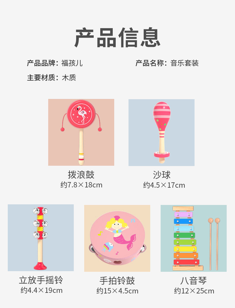 Color Classification Wooden Rattle (Red),Wooden Rattle (Blue),3-Piece Set (Red Rattle + Maracas + Rattle),3-Piece Set (Blue Rattle + Maracas + Rattle),4-Piece Set (Red Rattle + Maracas + Rattle + Hand Tambourine),4-Piece Set (Blue Rattle + Maracas + Rattle + Hand Tambourine),5-Piece Set (Red Rattle + Maracas + Rattle + Hand Tambourine + Eight-Tone Piano),5-Piece Set (Blue Rattle + Maracas + Rattle + Hand Tambourine + Eight-Tone Piano)