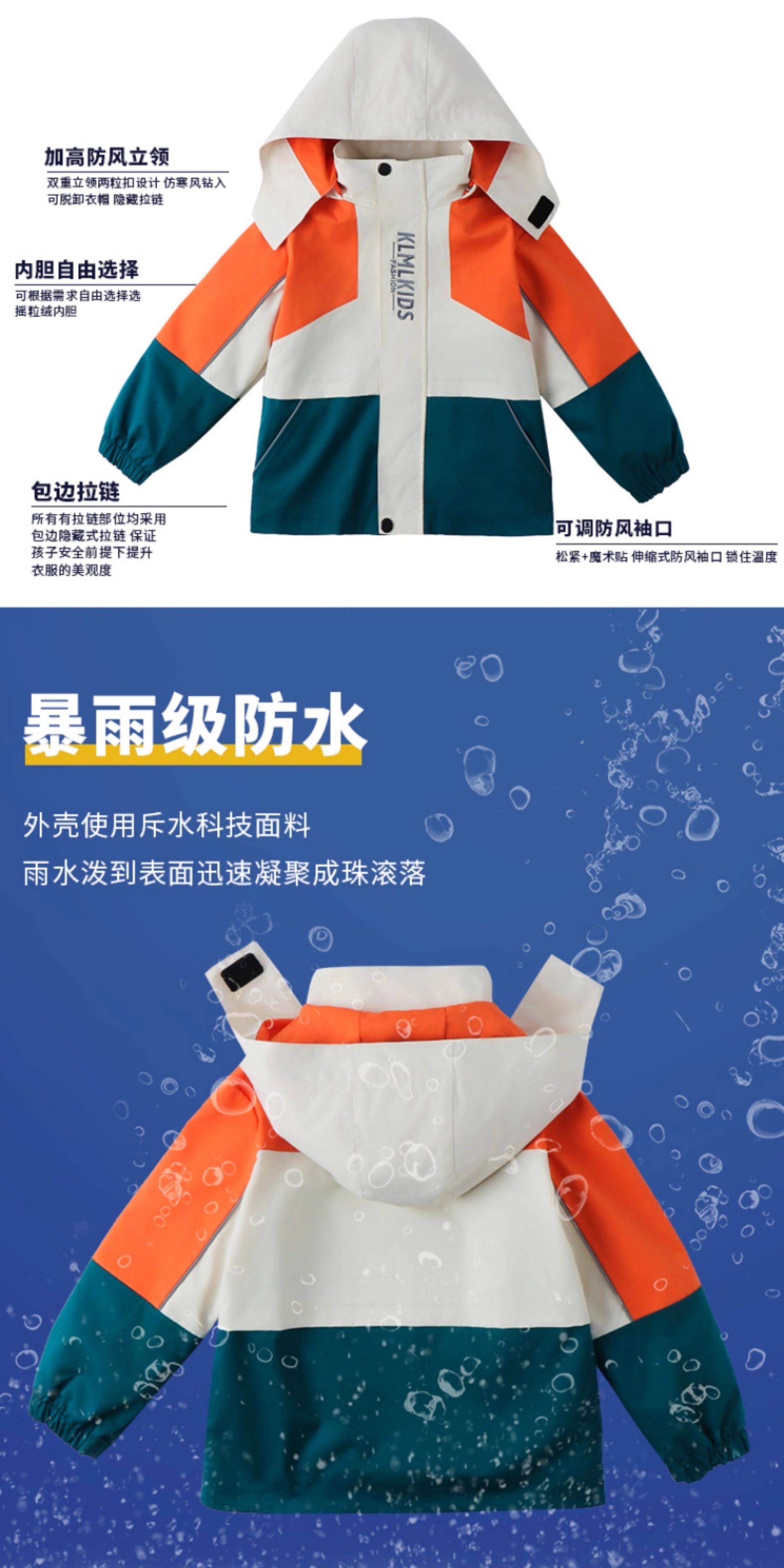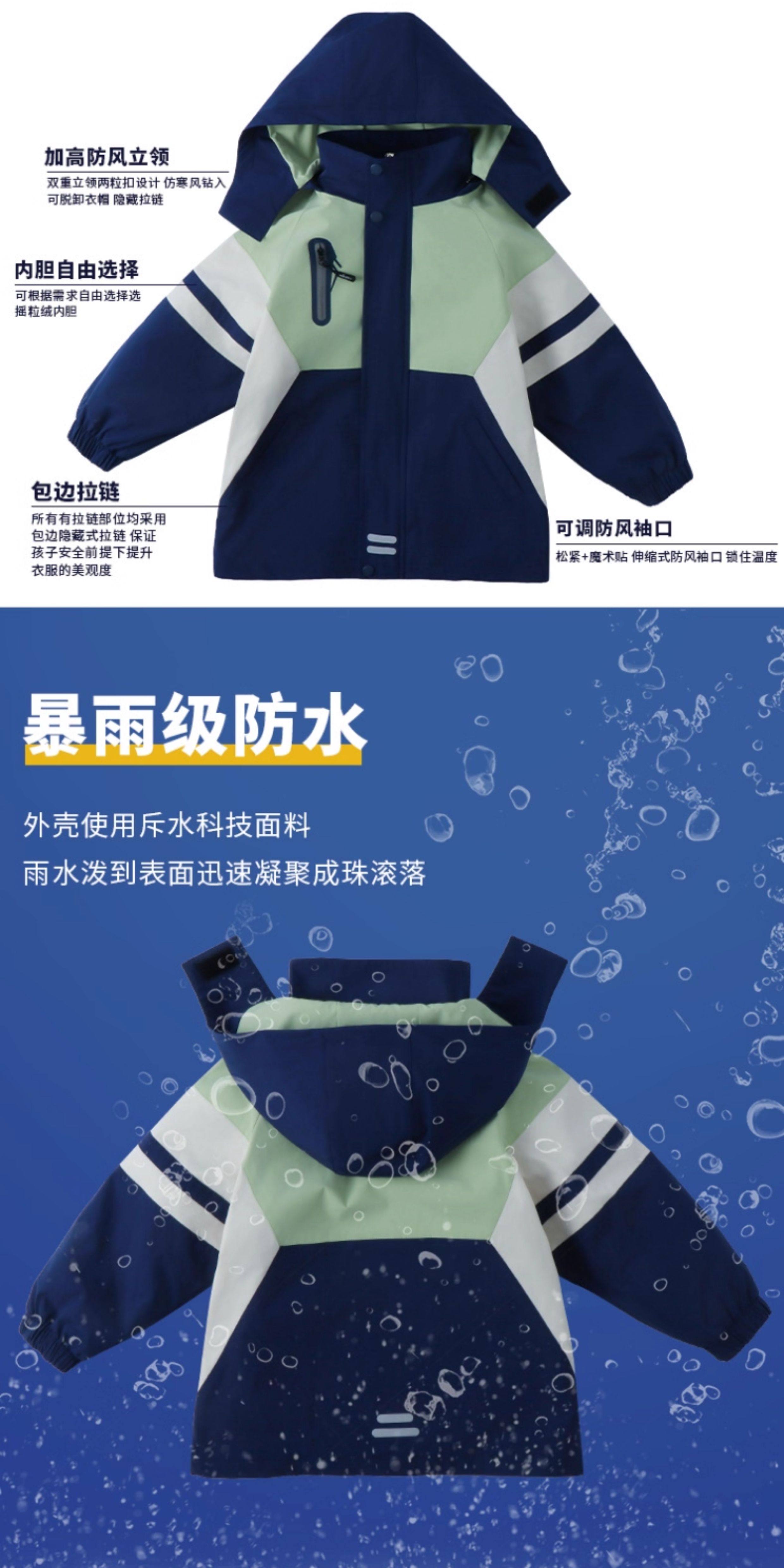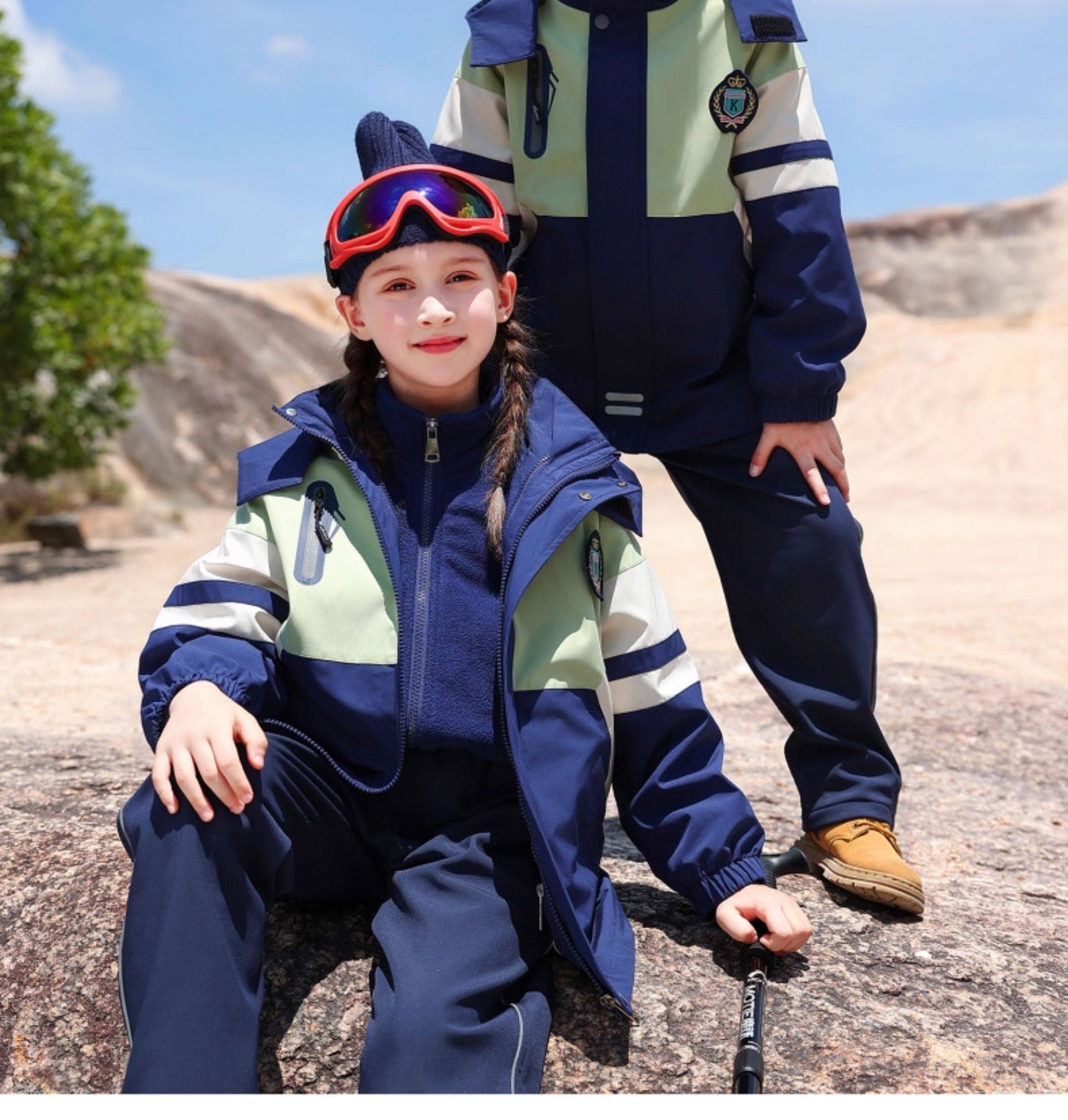 Boys' Three-In-One Detachable Outdoor Jacket for Children, New Autumn and Spring Clothing, Windproof Jacket for Older Children and Girls, School Uniform