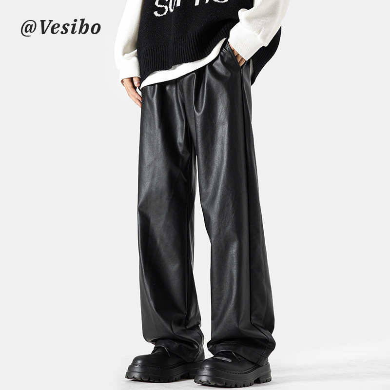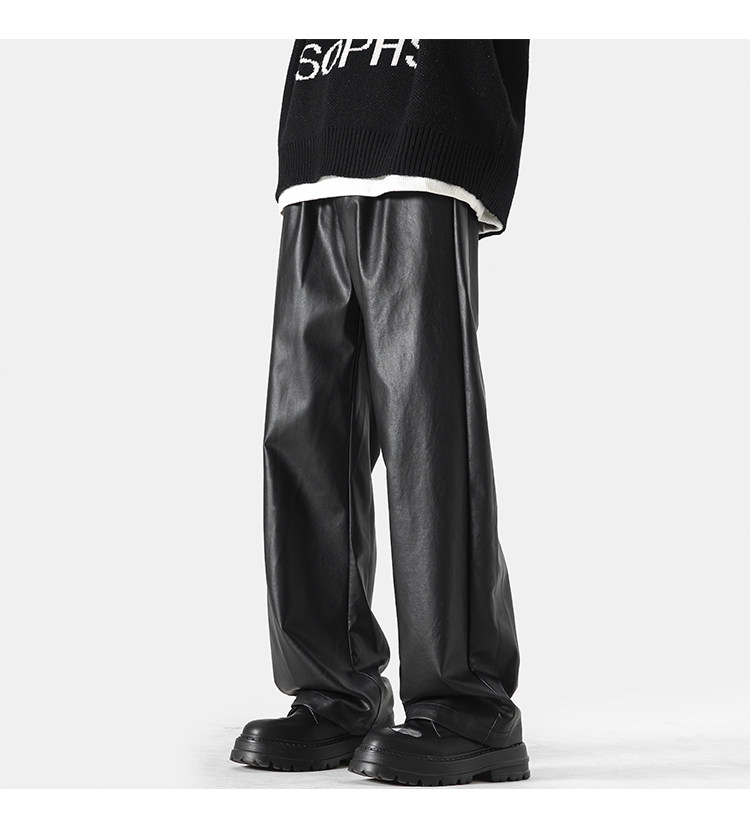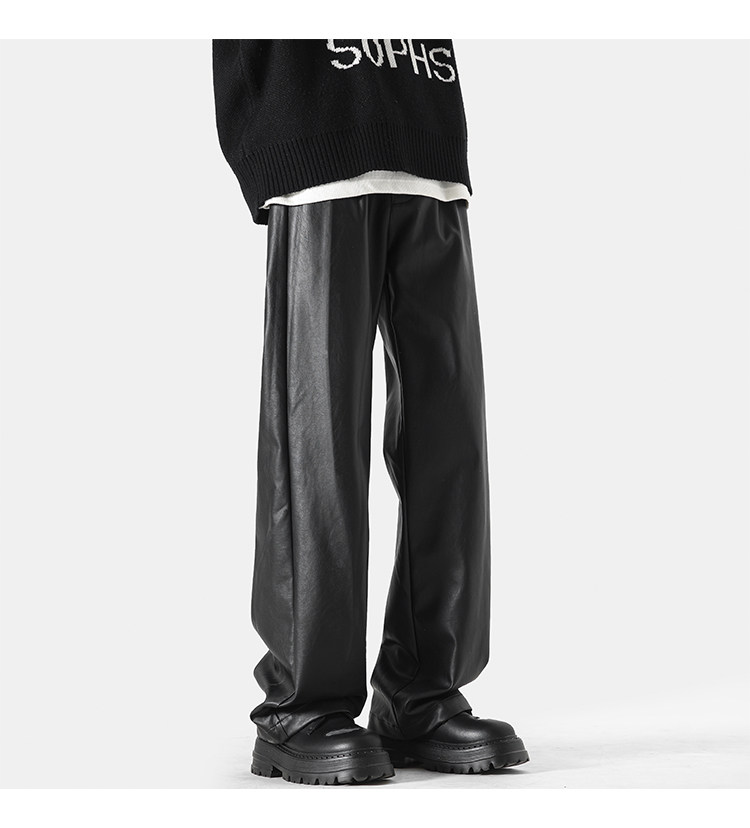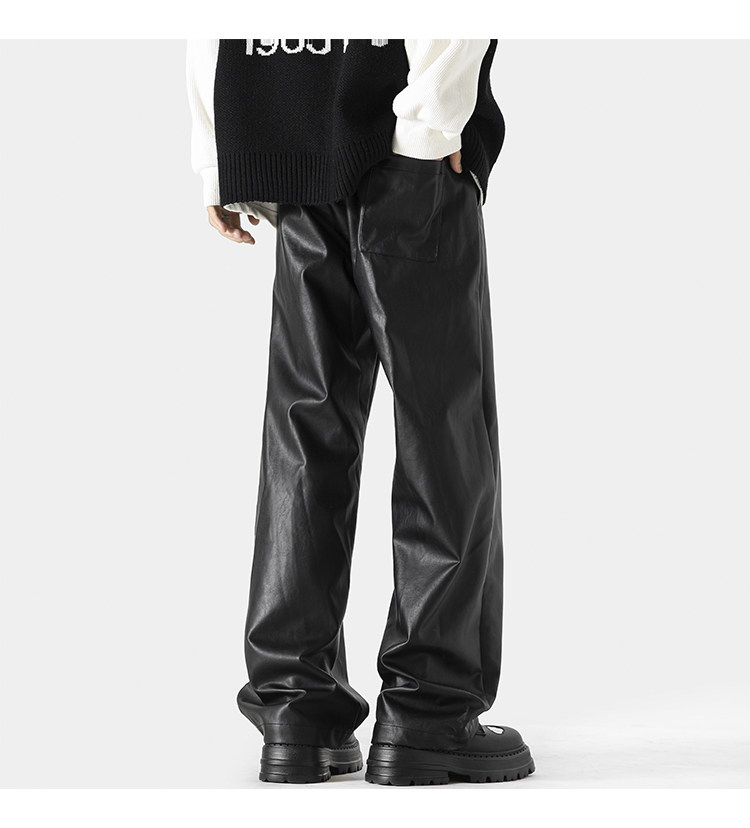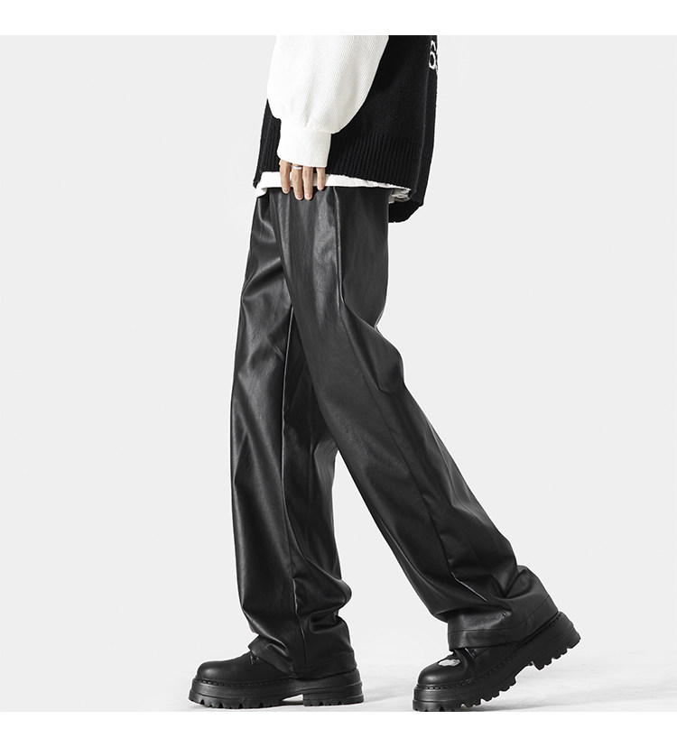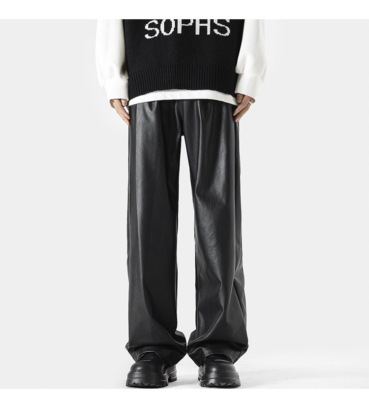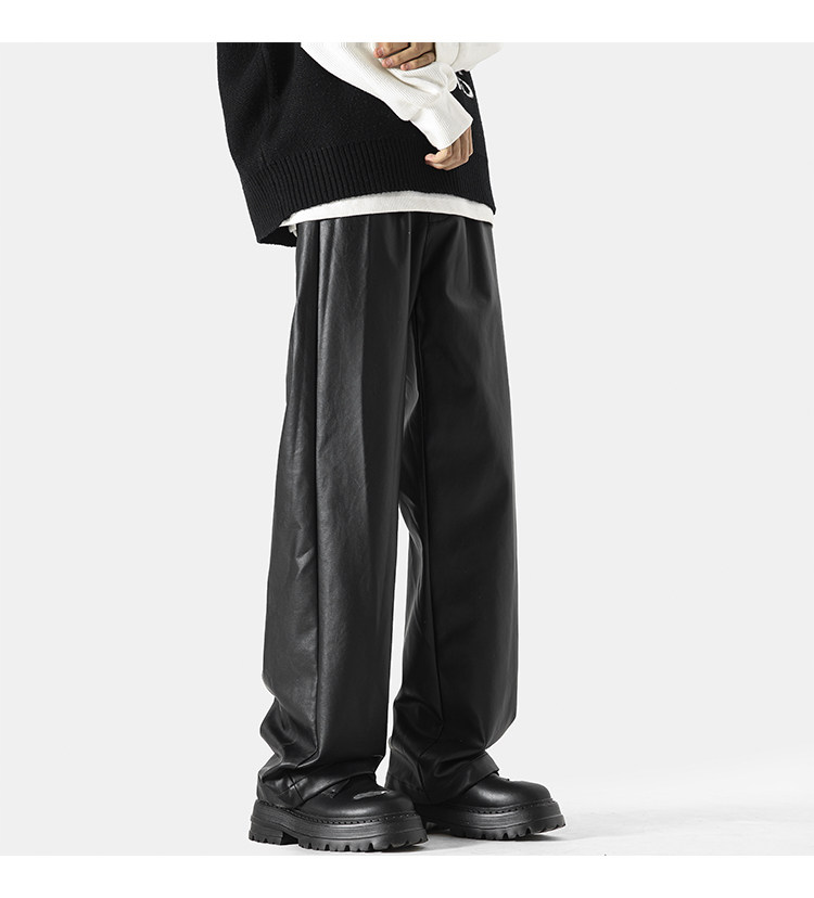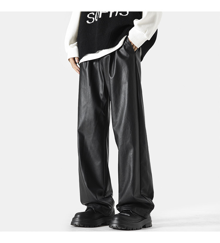美式高街pu皮裤男冬潮牌宽松阔腿休闲裤子oversize复古百搭机车裤