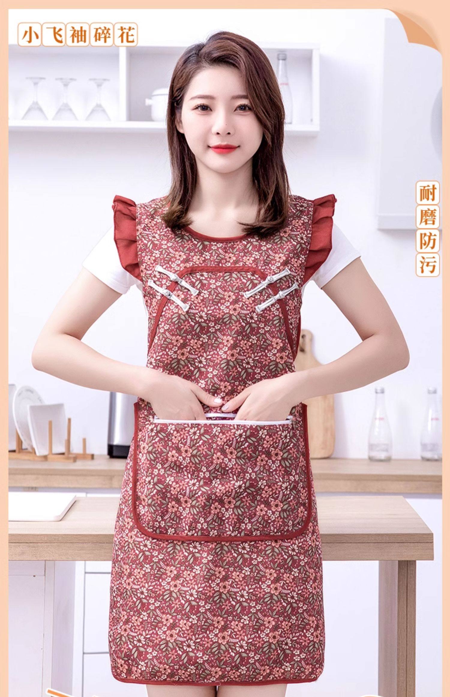 国风复古棉布围裙罩衣女上班干活工作服厨房家用做饭旗袍坎肩围腰