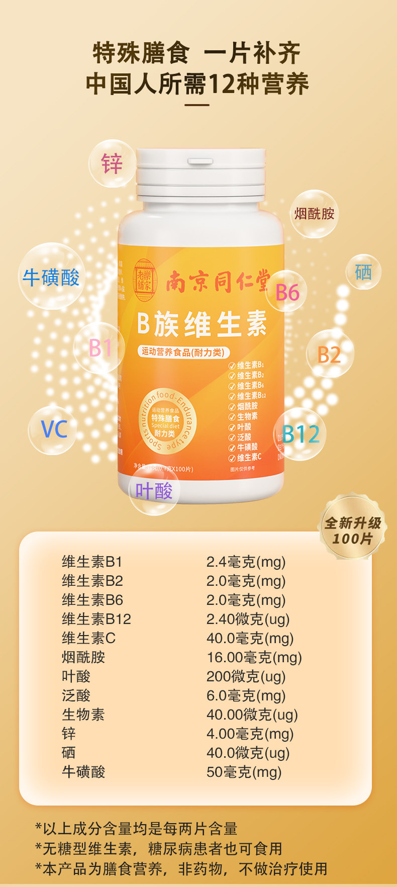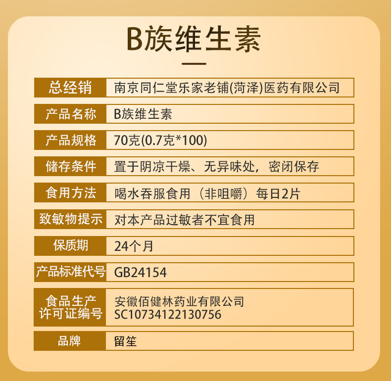 Multivitamin B Complex Tablets, Multivitamin C, Vitamin A, B2, B6, B12, Vevd, Multi-Dimensional Calcium, Iron, Zinc, Selenium, Liu Sheng Genuine Product