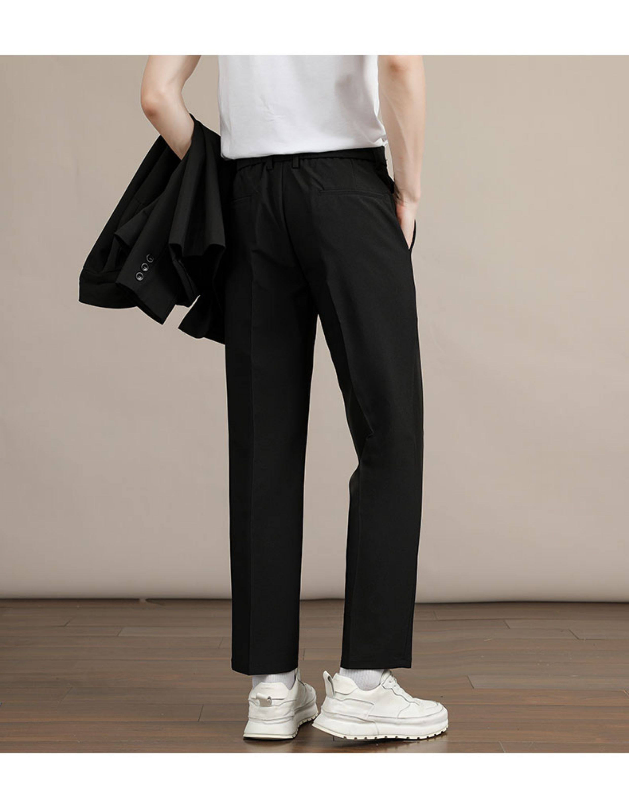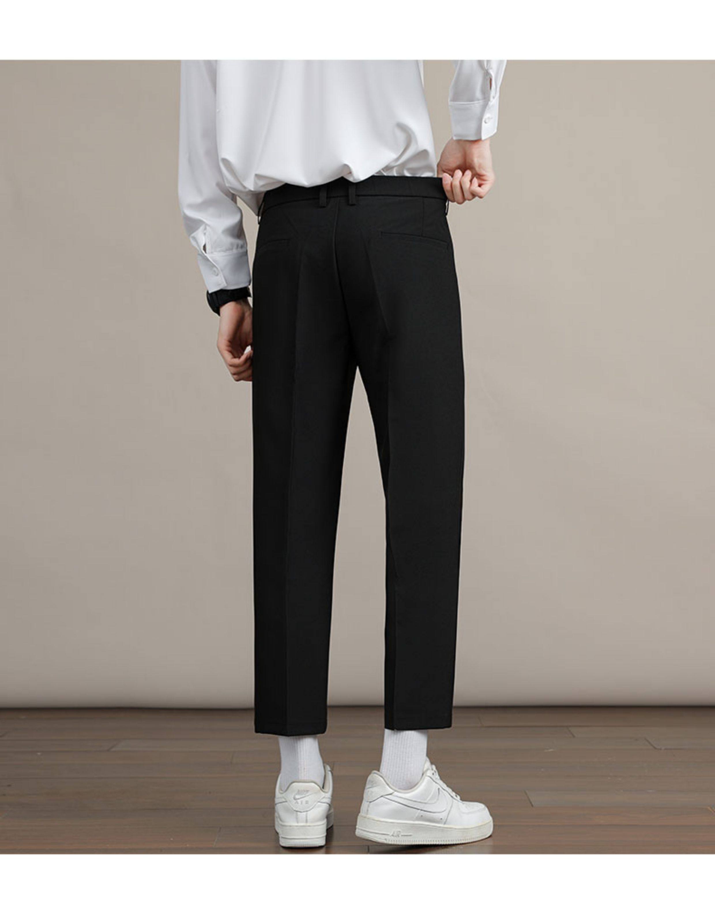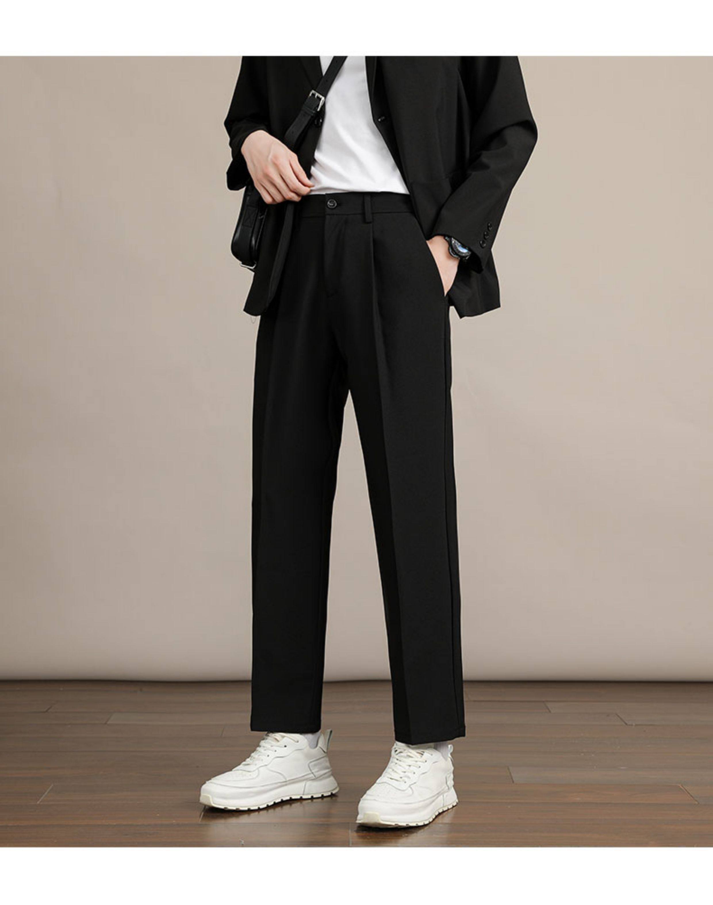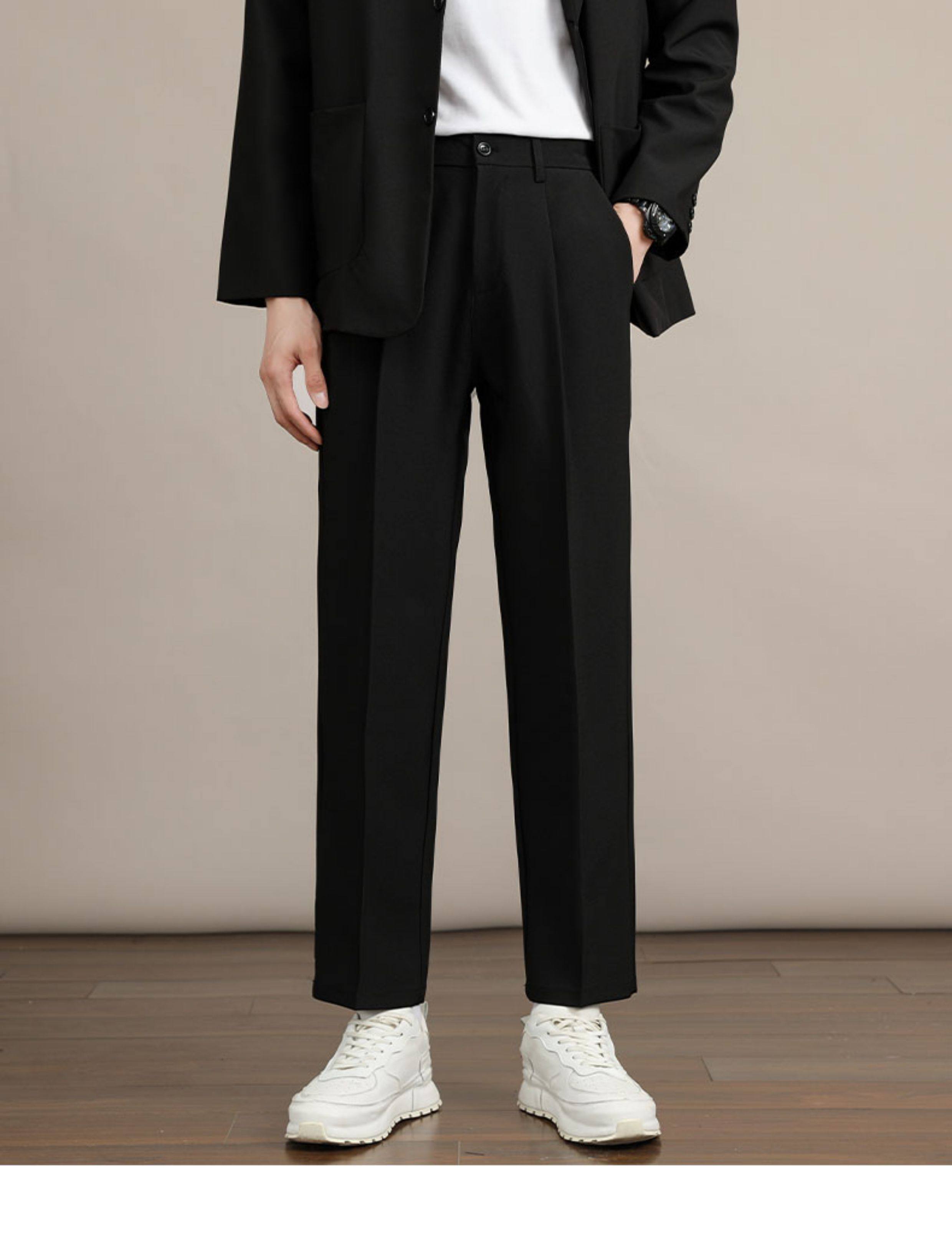 Luo Meng Drapierte kleine Anzughose Herren Herbst und Winter Samt Neun-Punkt-gerades Bein lockere Freizeithose Schwarze High-End-Anzughose