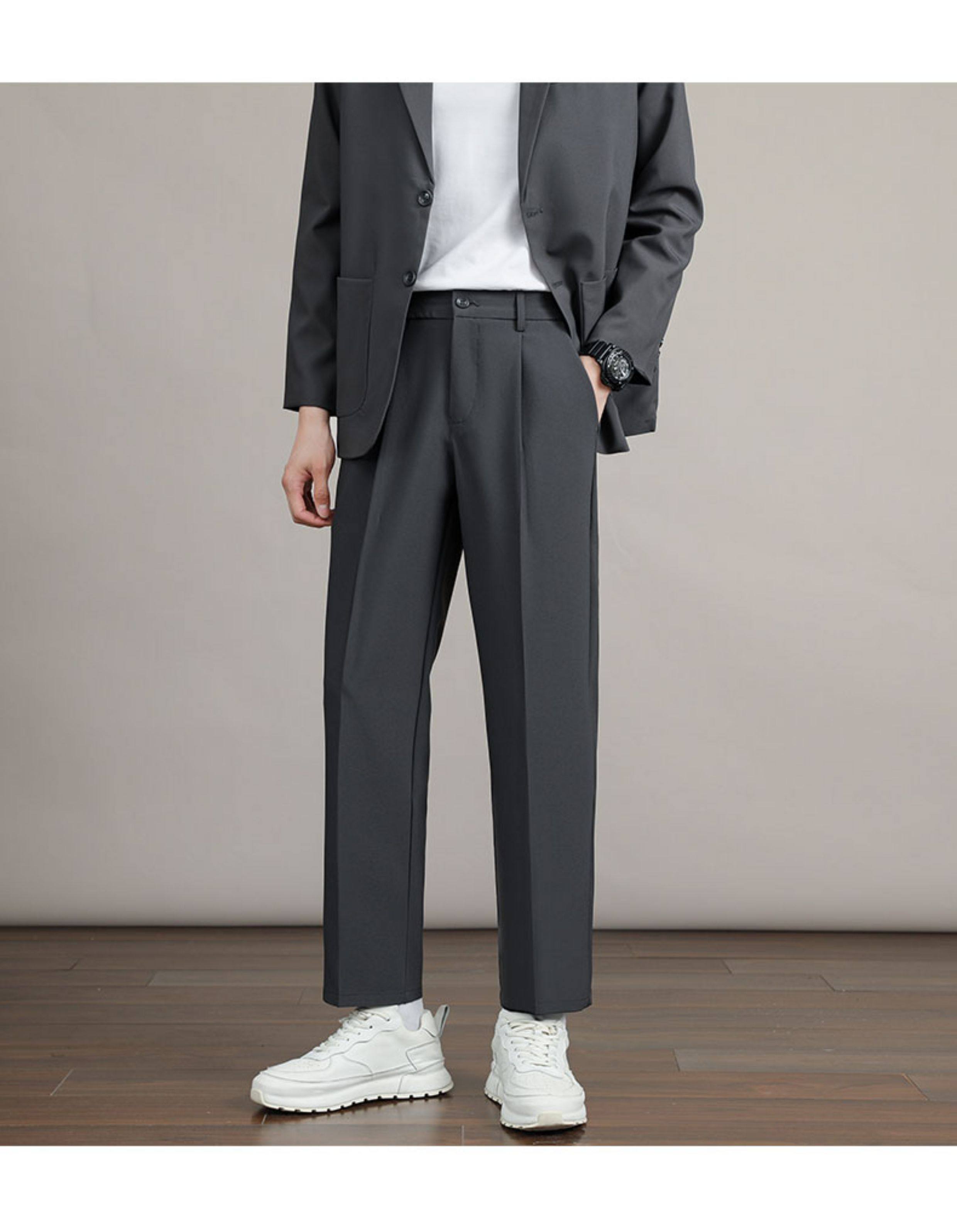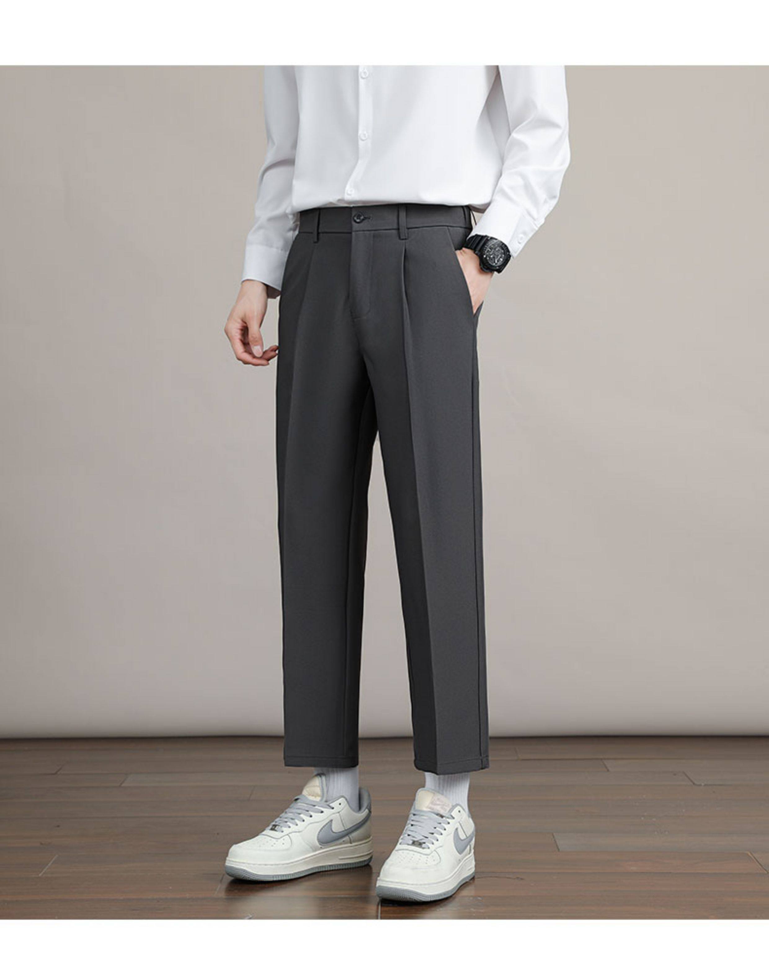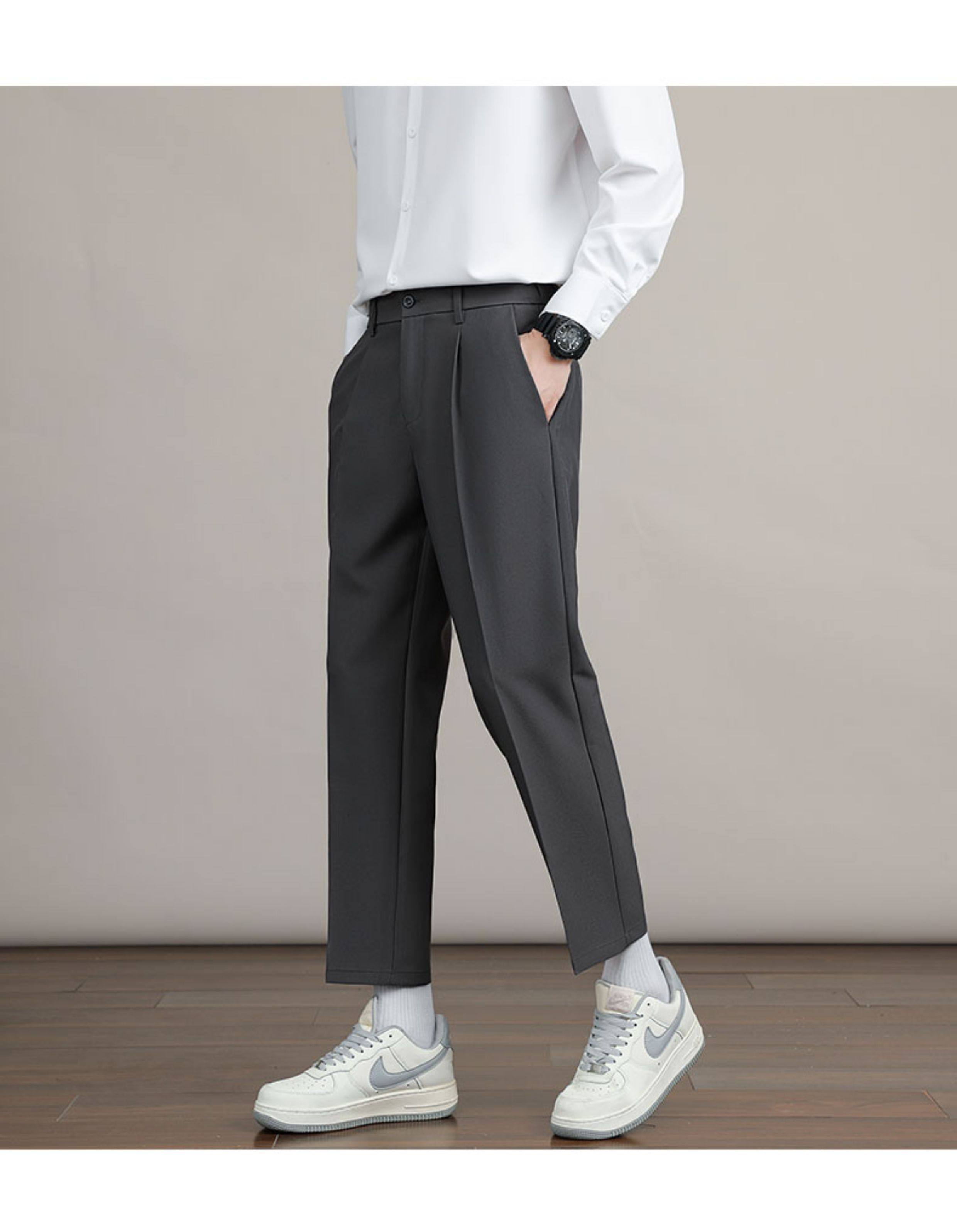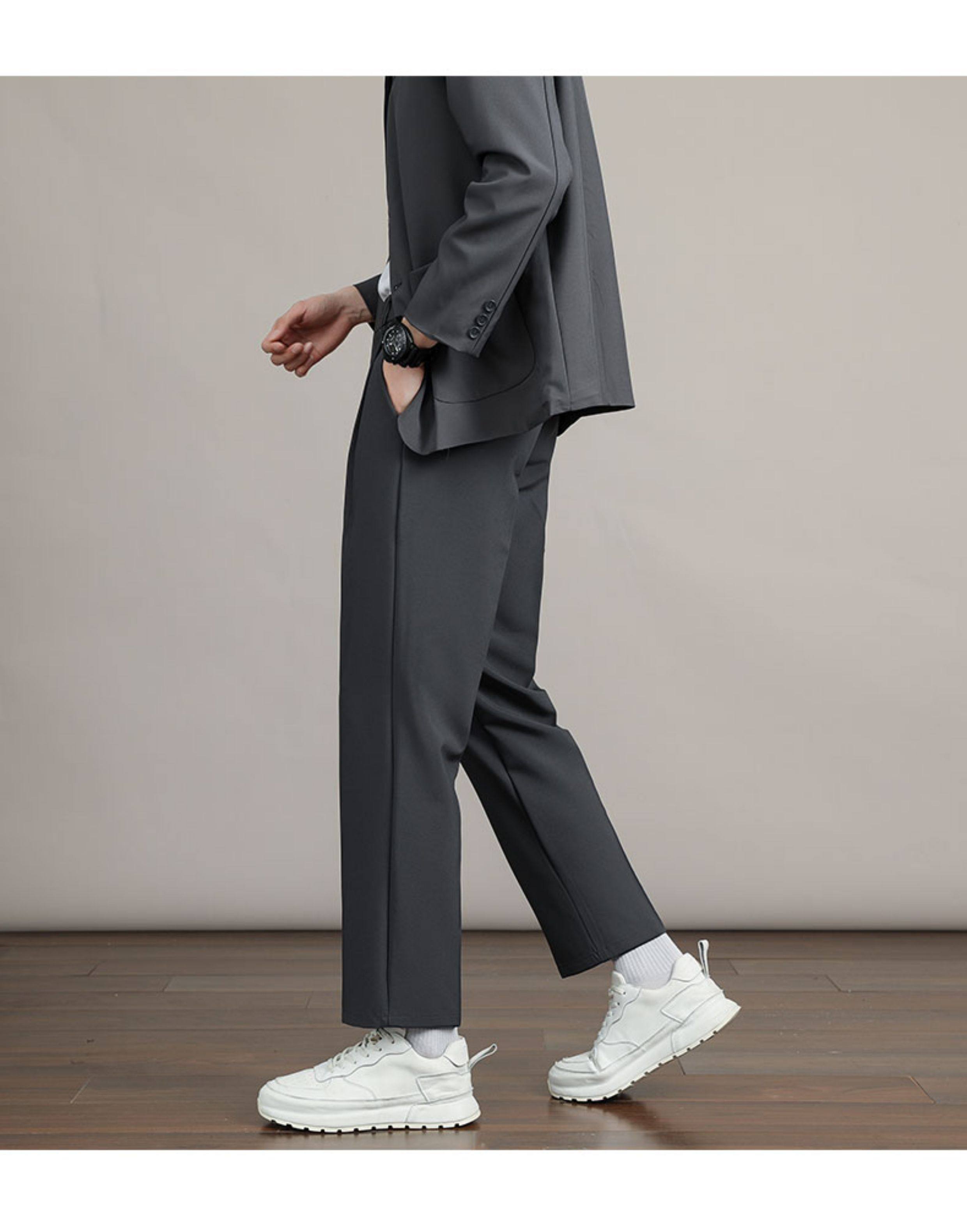Luo Meng Drapierte kleine Anzughose Herren Herbst und Winter Samt Neun-Punkt-gerades Bein lockere Freizeithose Schwarze High-End-Anzughose