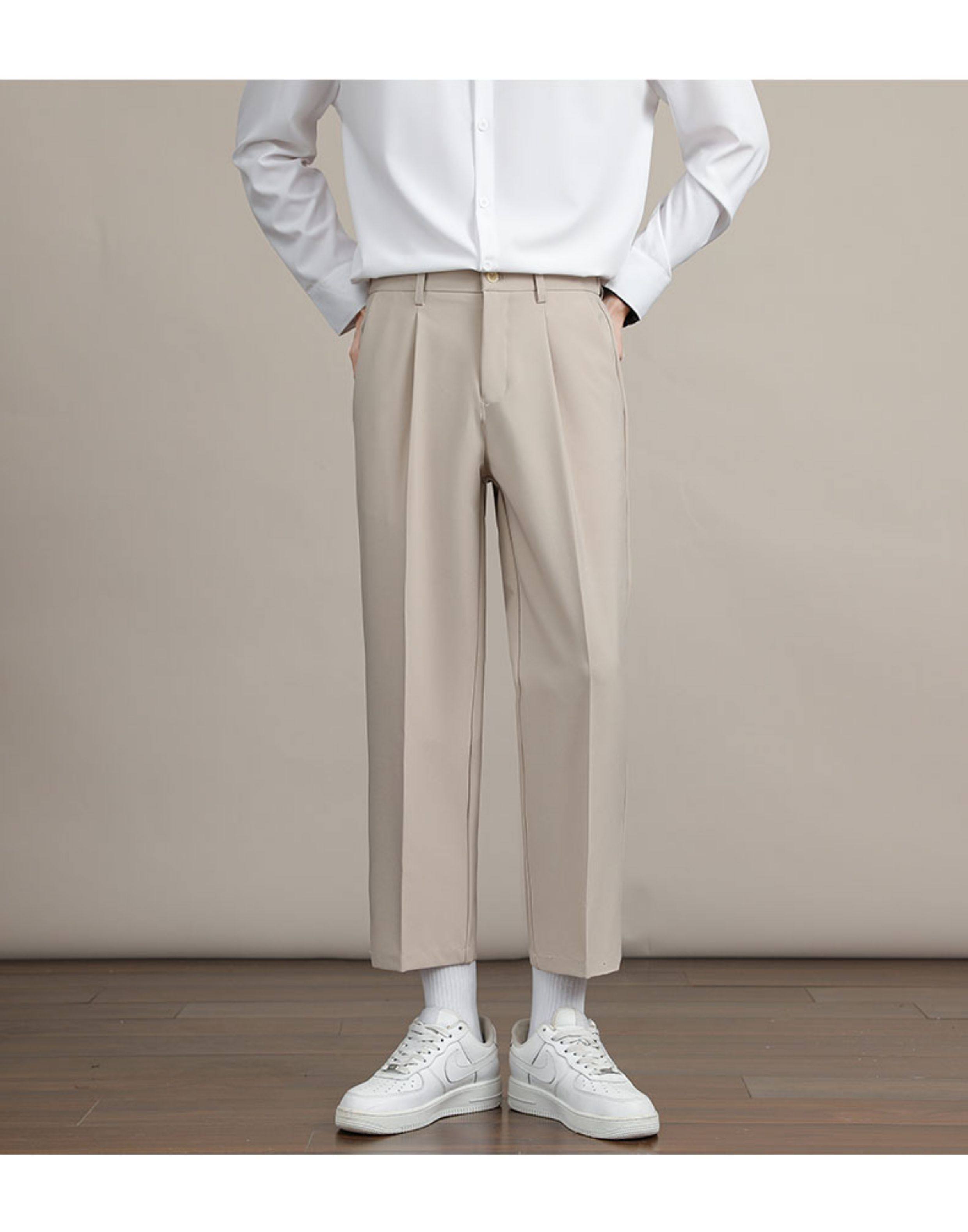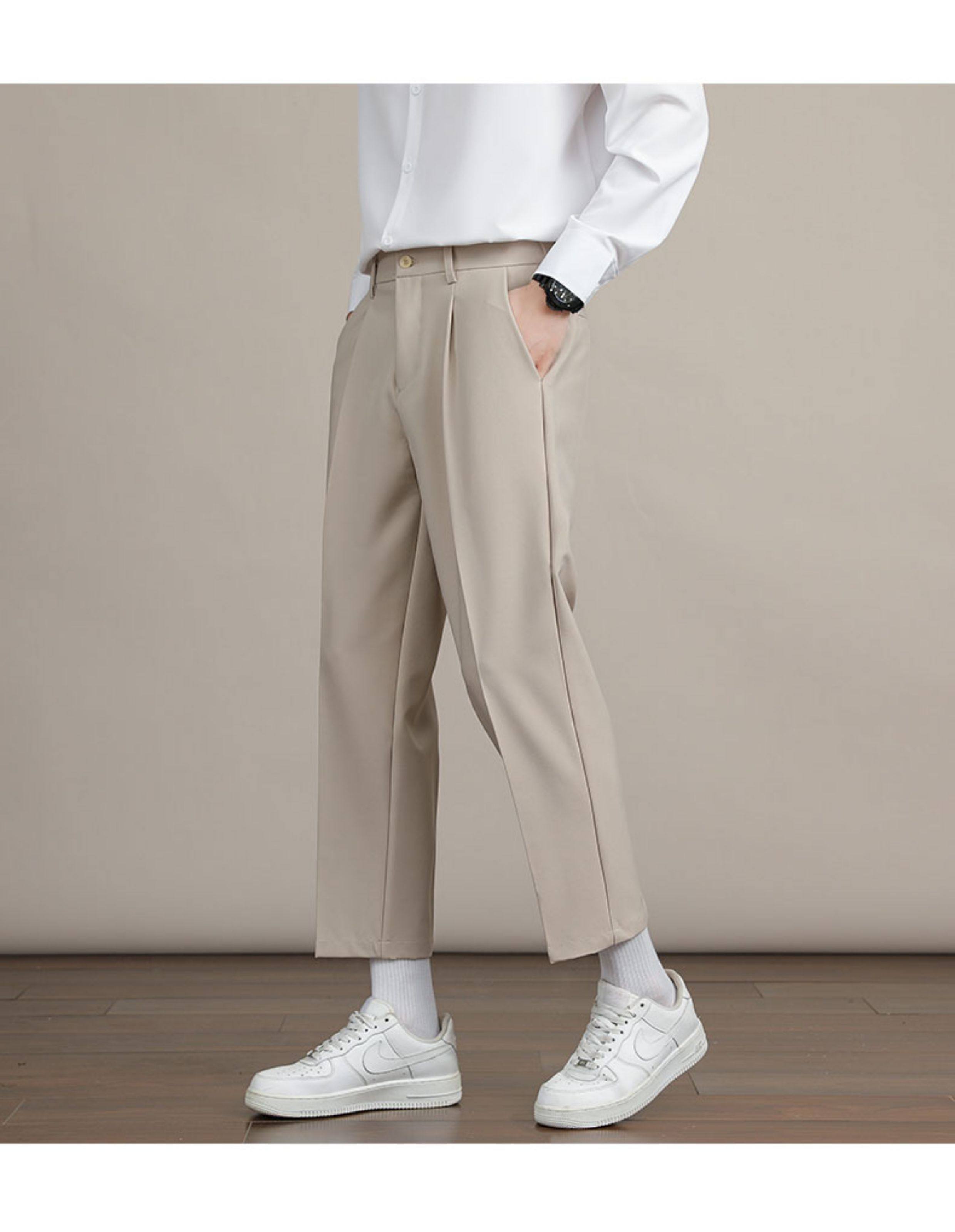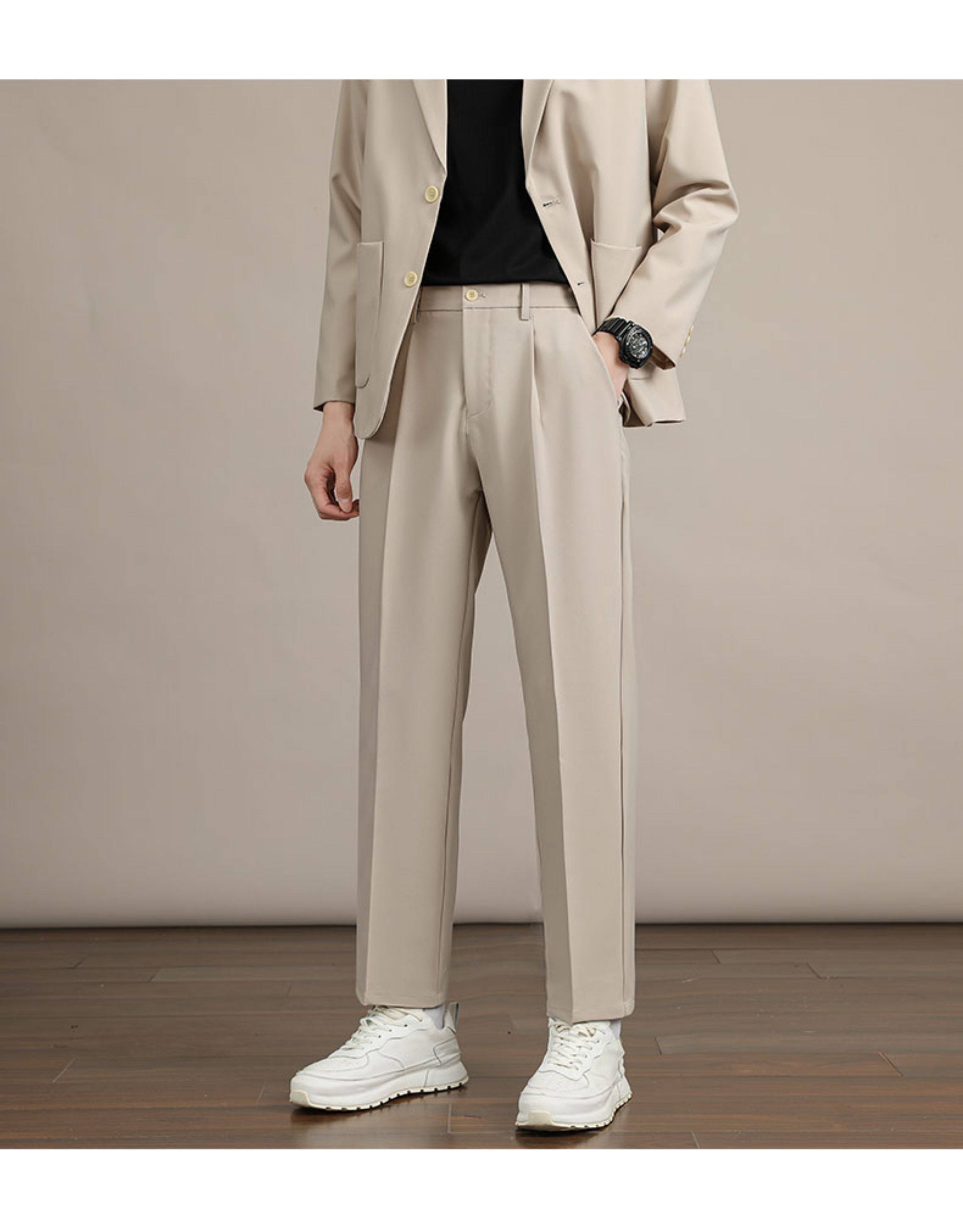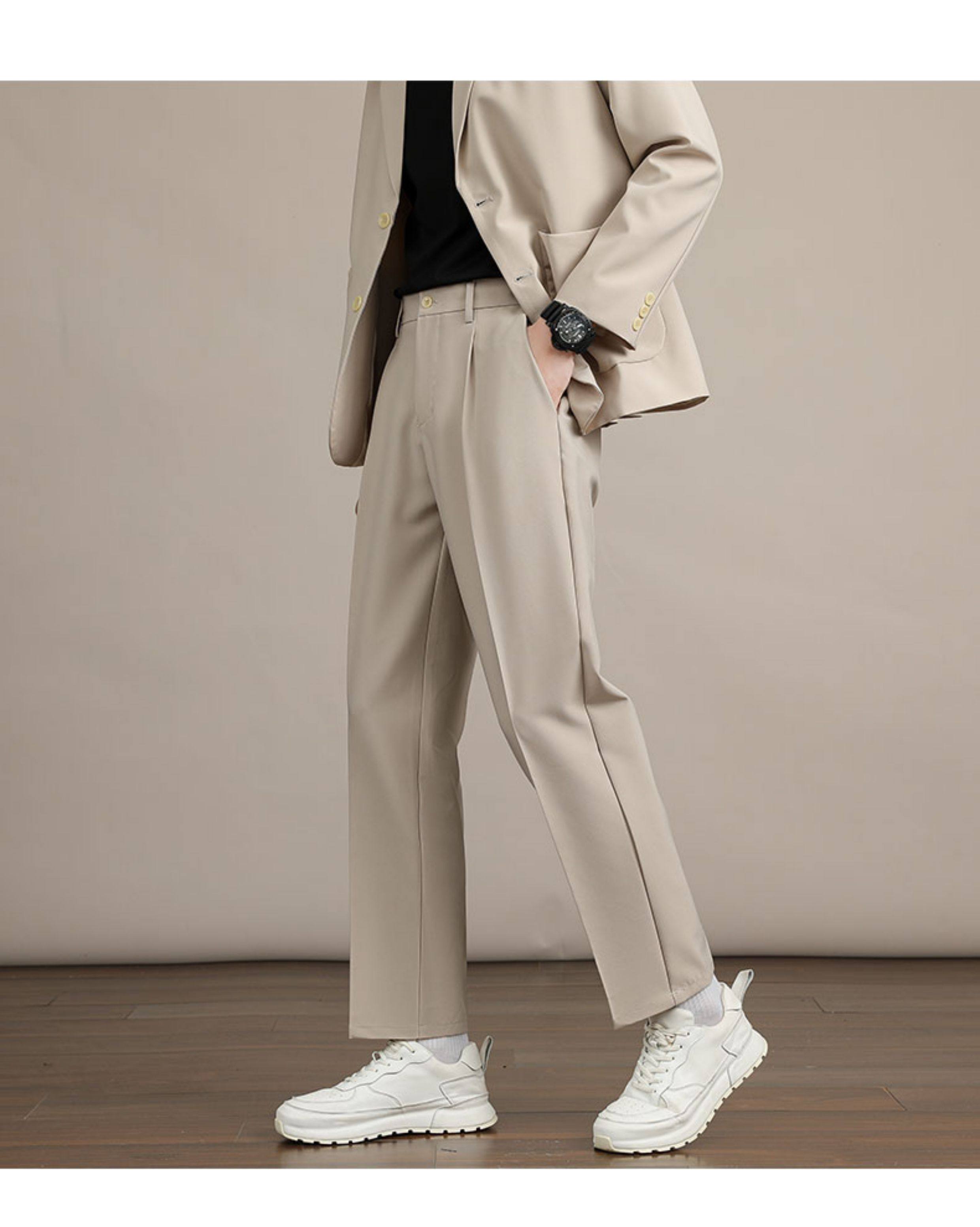 Luo Meng Drapierte kleine Anzughose Herren Herbst und Winter Samt Neun-Punkt-gerades Bein lockere Freizeithose Schwarze High-End-Anzughose