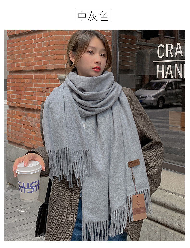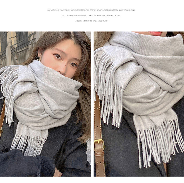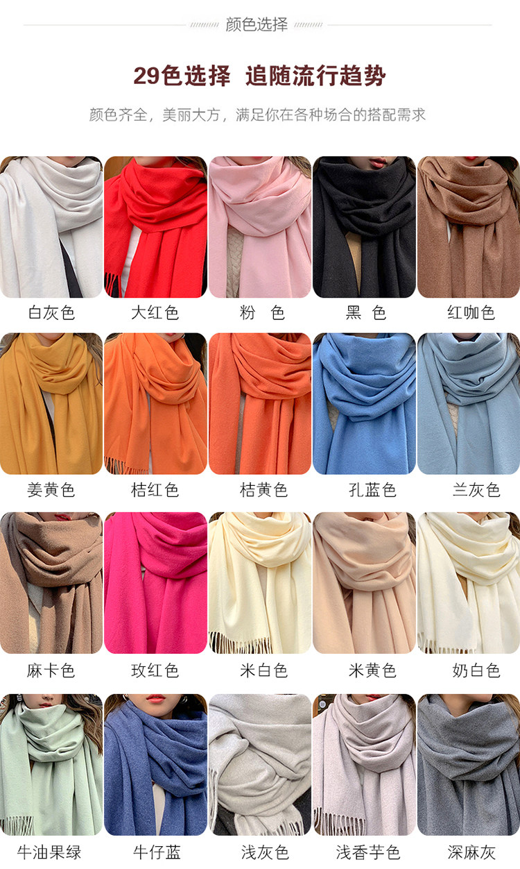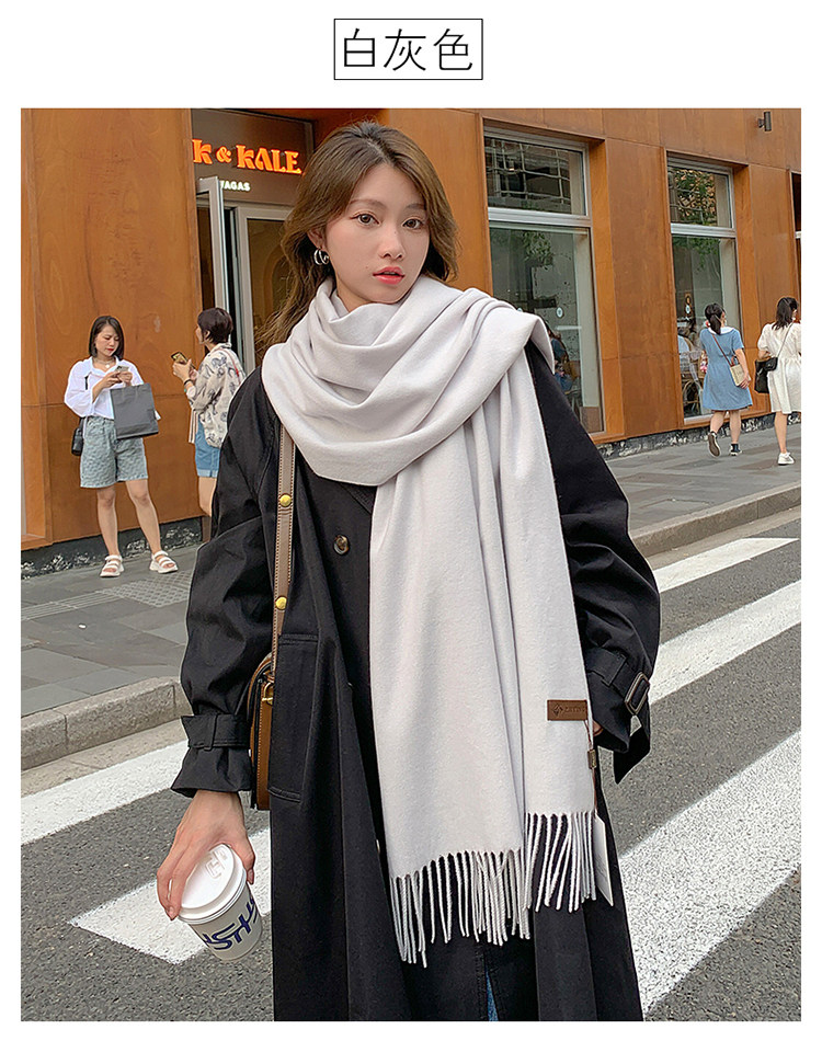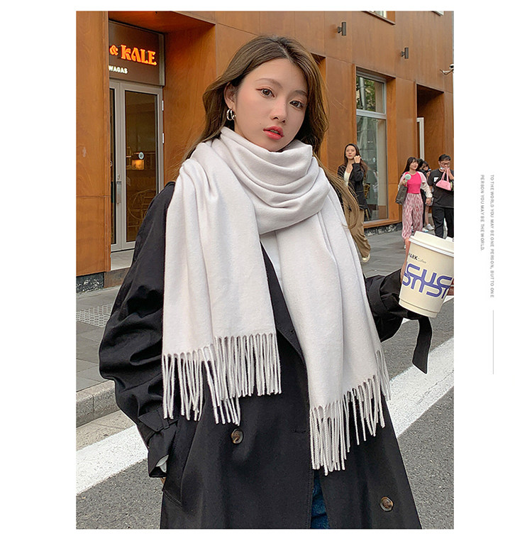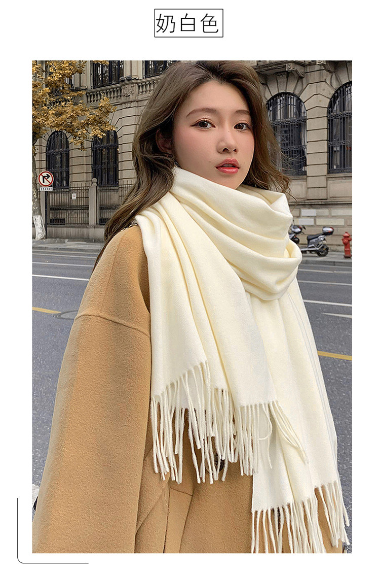 Schal Damen Winter 2025 neuer weißer koreanischer Stil vielseitiger High-End-Kaschmirimitat einfarbig verdickter warmer Schal Herbst