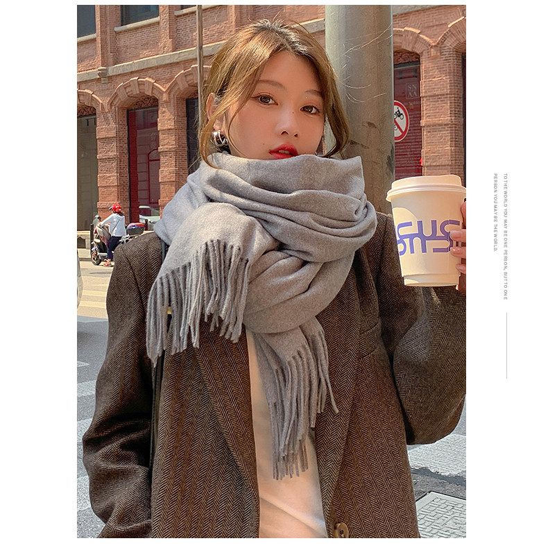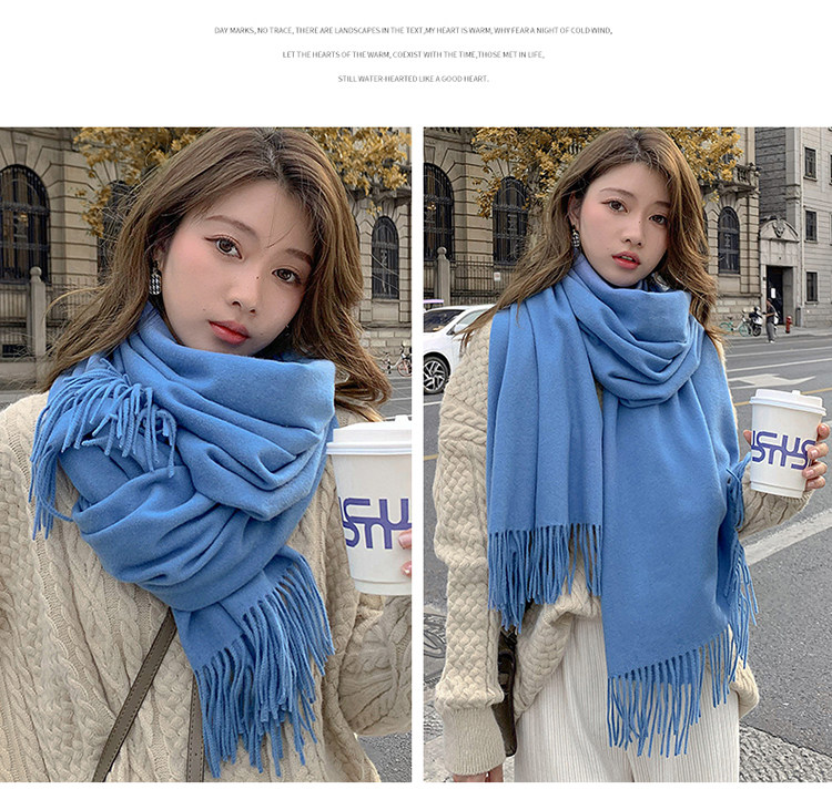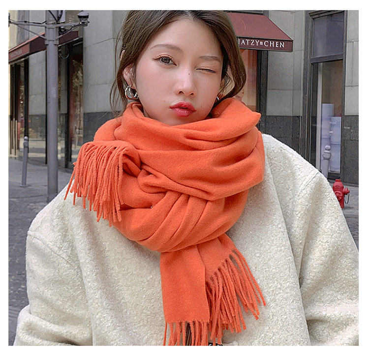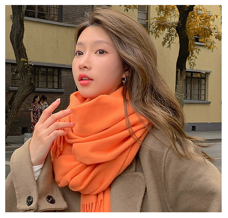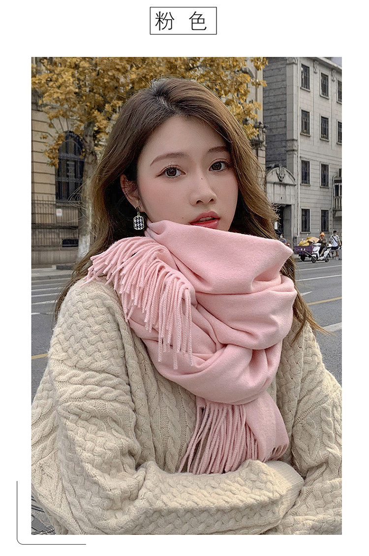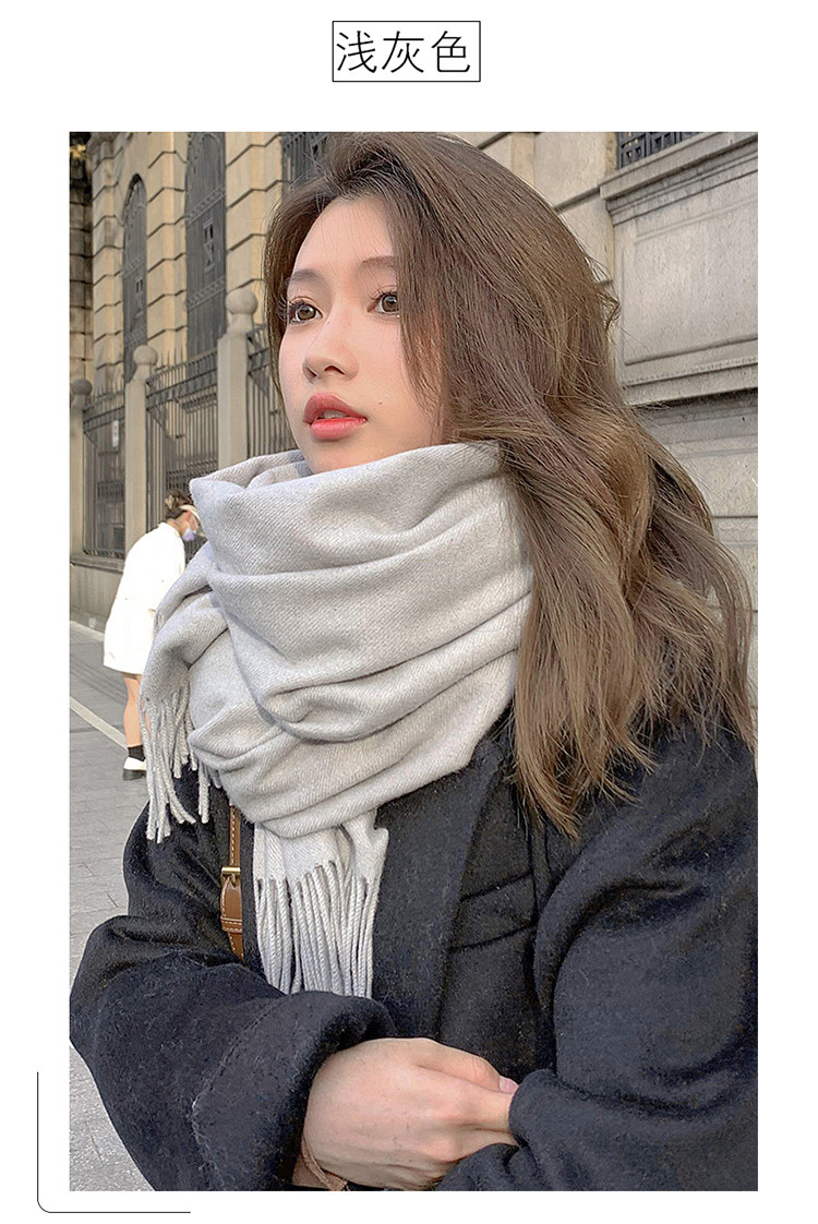 Schal Damen Winter 2025 neuer weißer koreanischer Stil vielseitiger High-End-Kaschmirimitat einfarbig verdickter warmer Schal Herbst