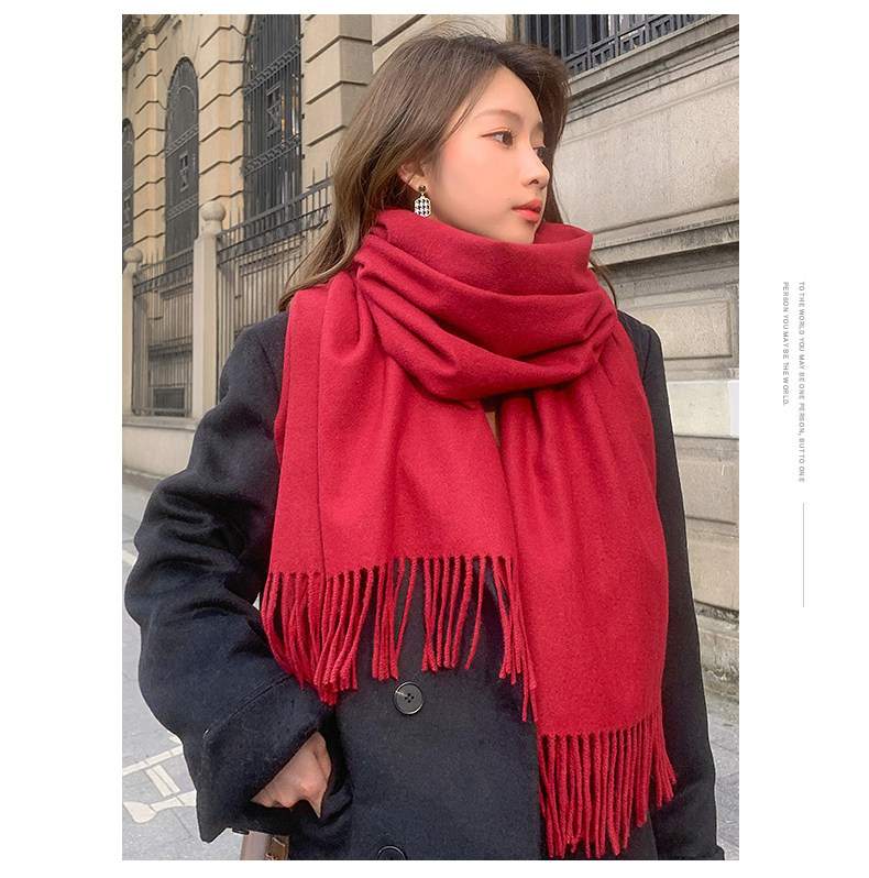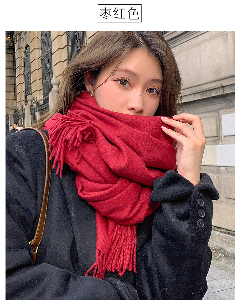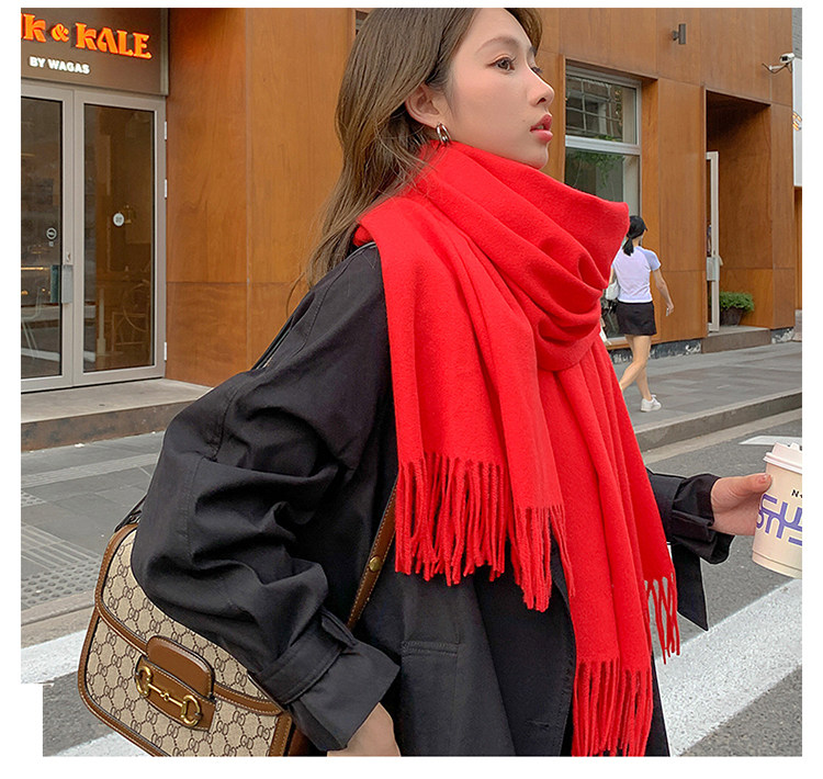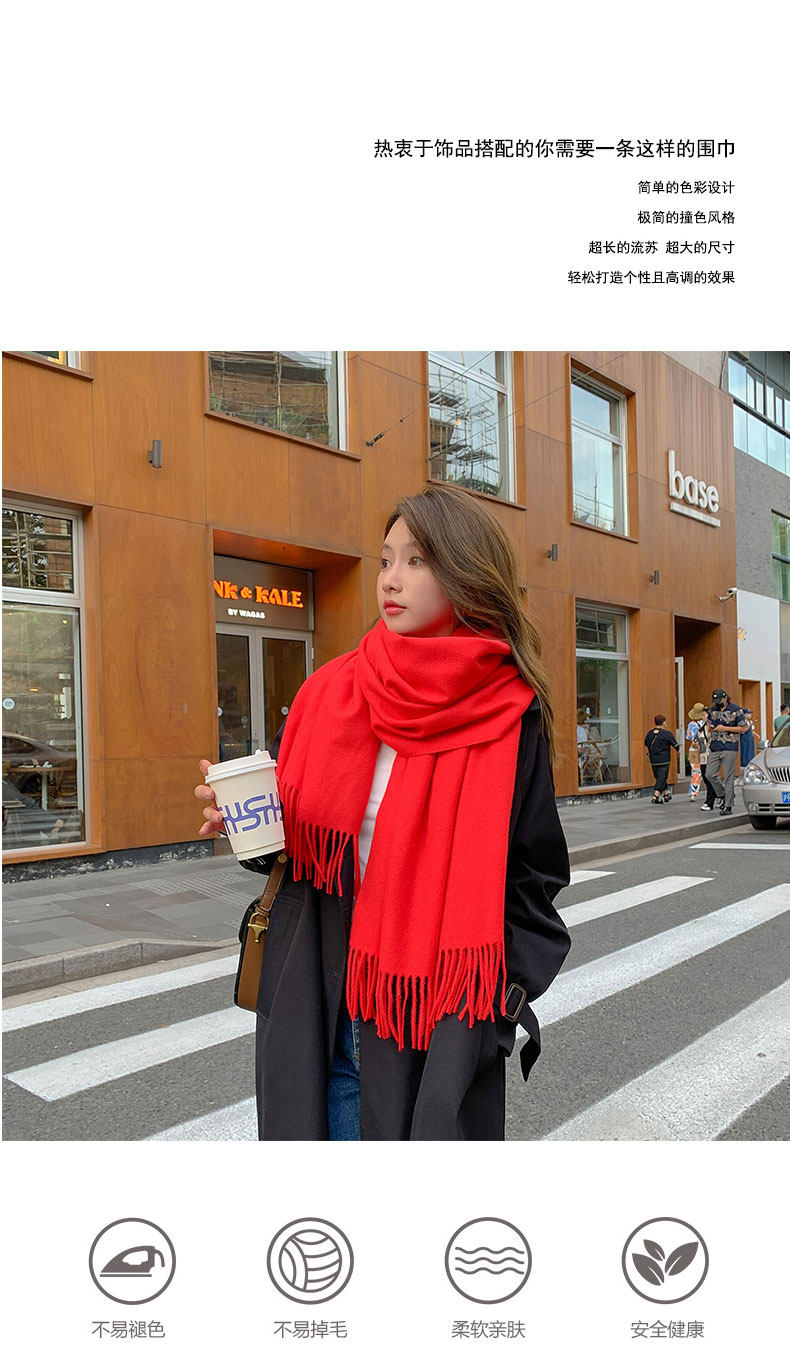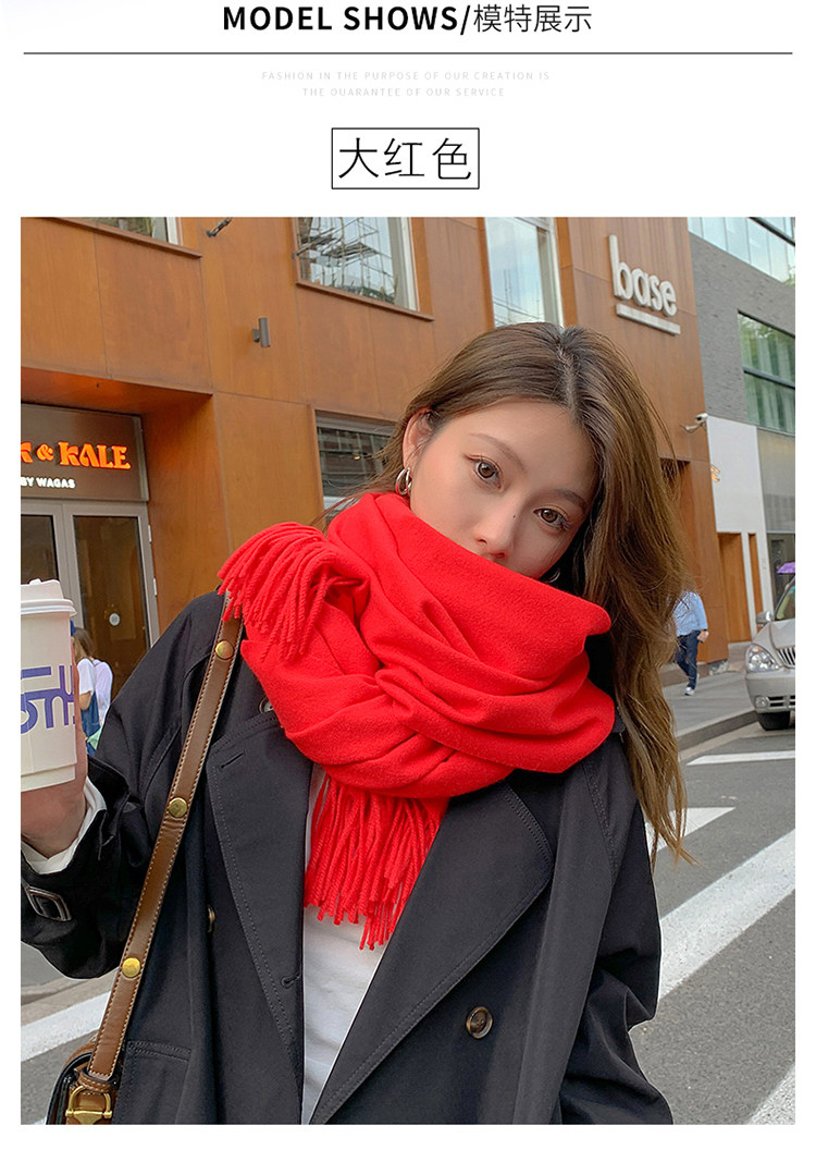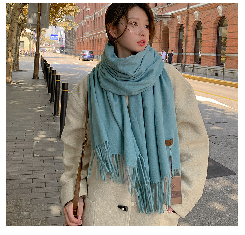 Schal Damen Winter 2025 neuer weißer koreanischer Stil vielseitiger High-End-Kaschmirimitat einfarbig verdickter warmer Schal Herbst