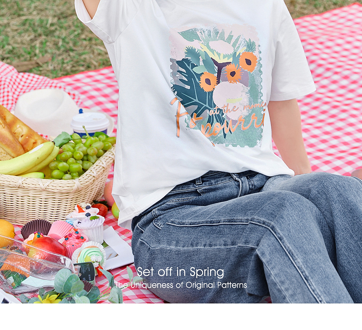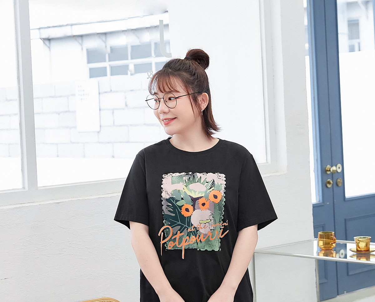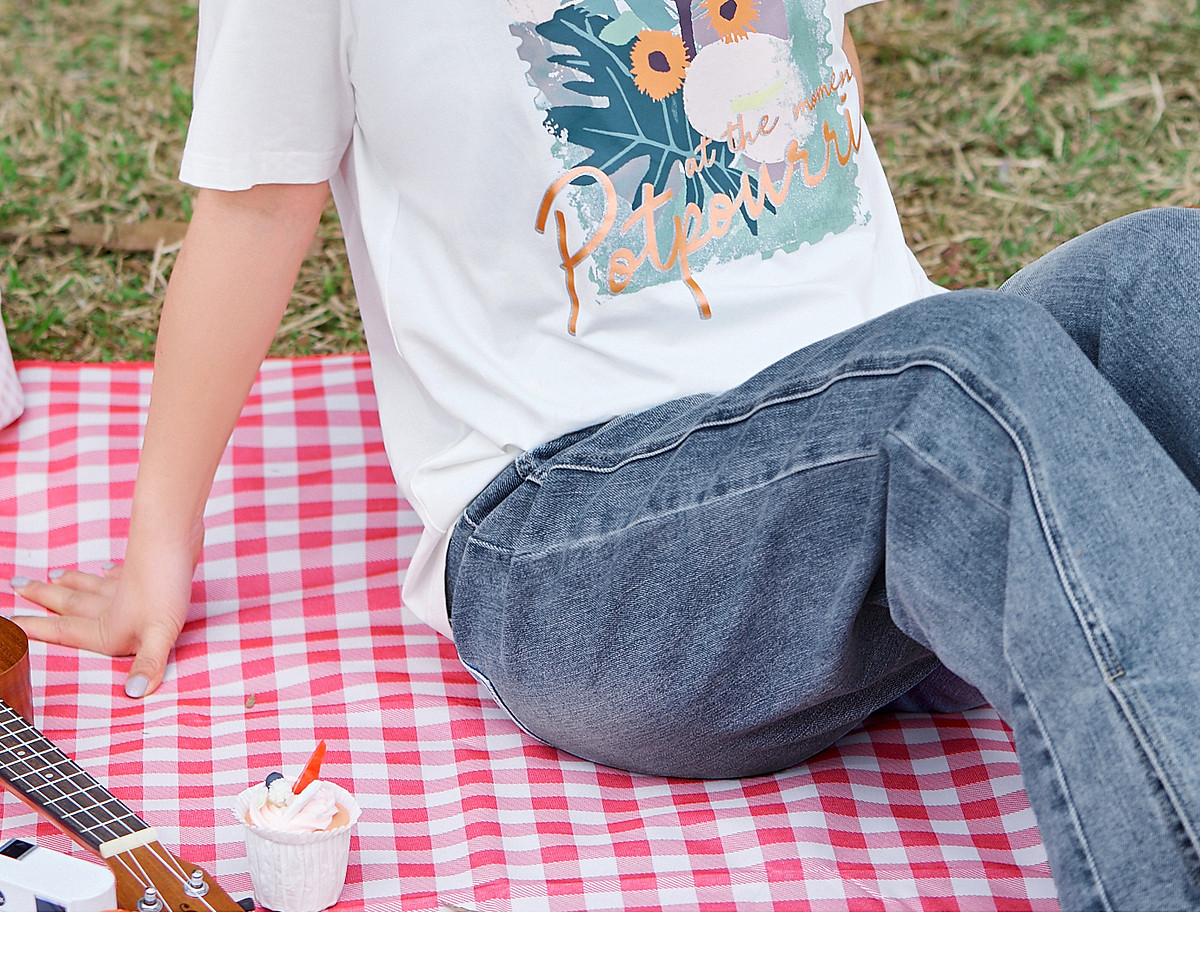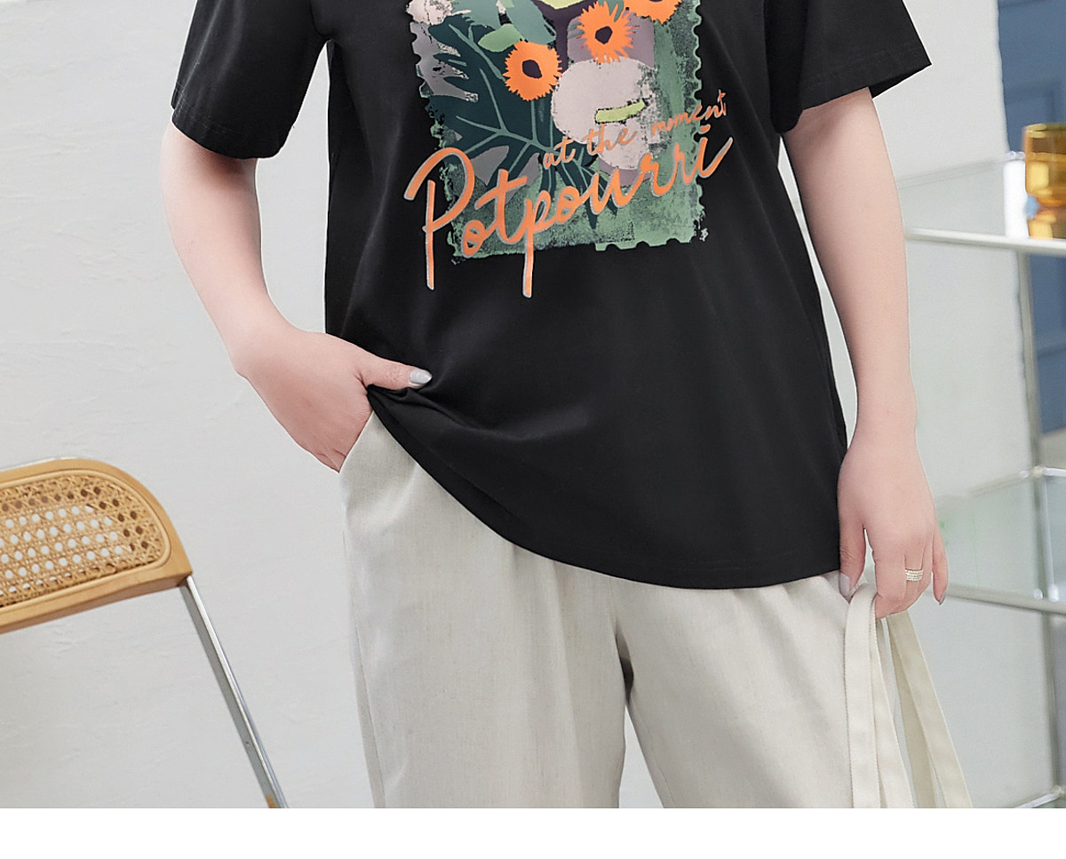 [Tencel Cotton] Msshe Plus Size Women's Clothing 2025 Summer Fat Girl Slimming Printed Glitter Short Sleeve T-Shirt Top