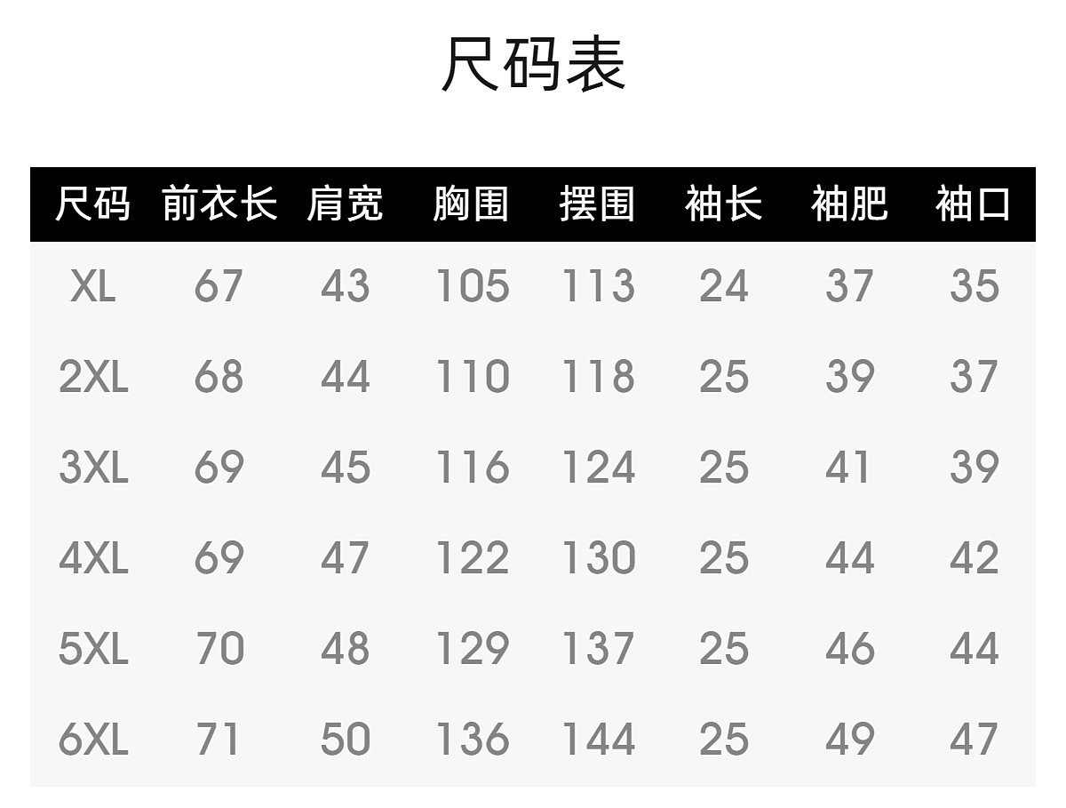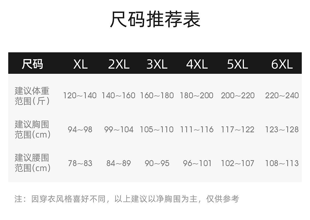 Size XL,2XL,3XL,4XL,5XL,6XL