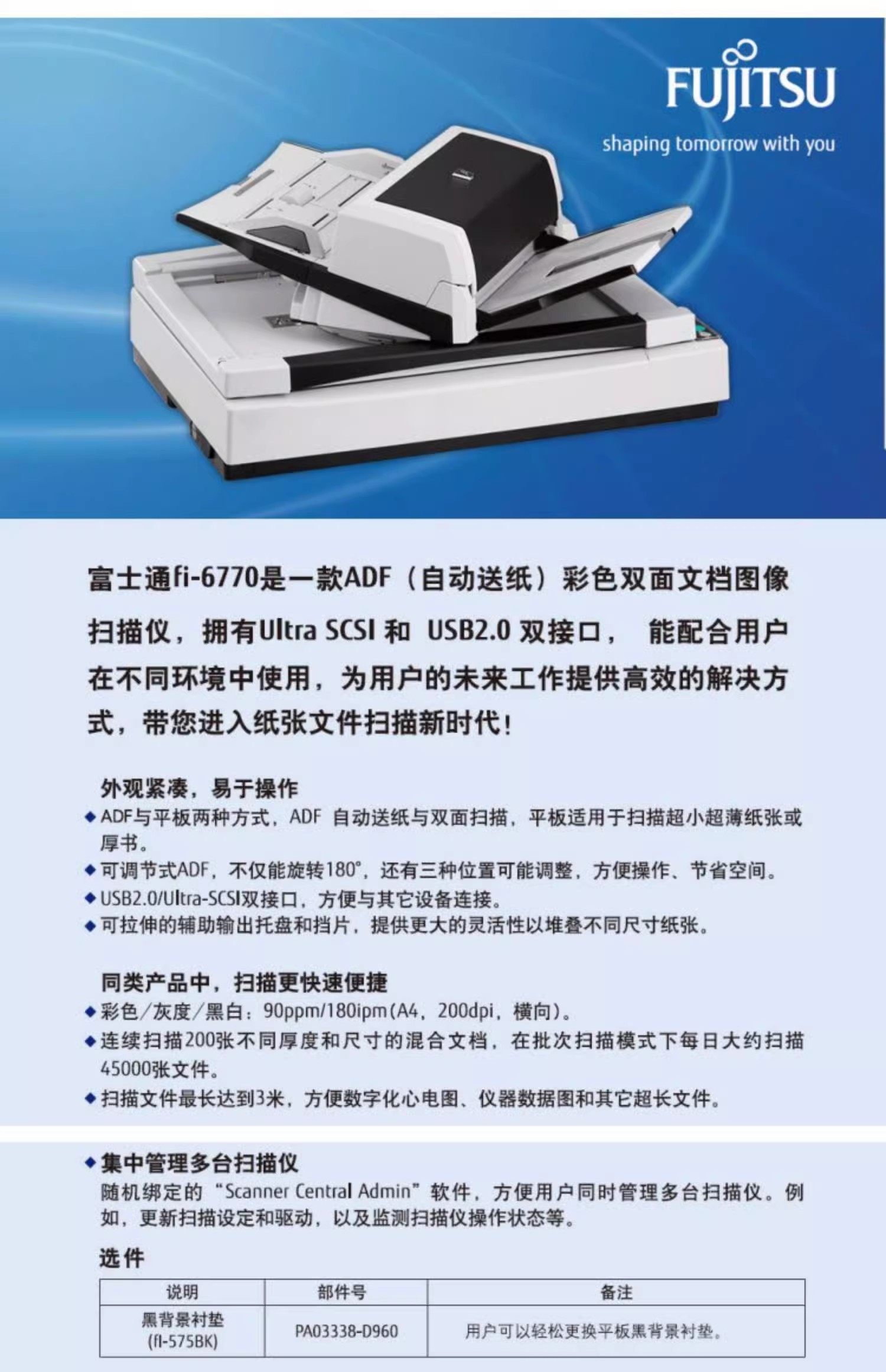 Fujitsu fi-6670 Scanner A3-Batch-Hochgeschwindigkeits-Doppelseitenscanner mit automatischer kontinuierlicher Farbdokumentenhülle