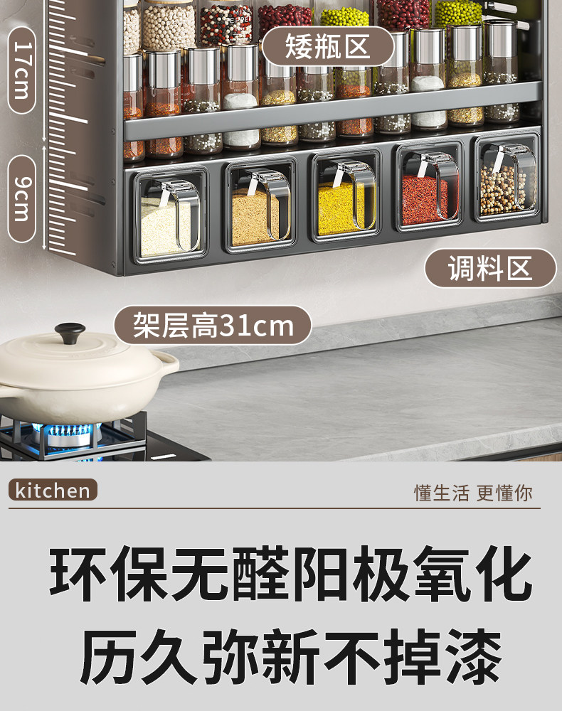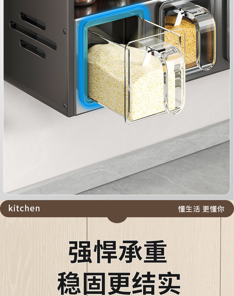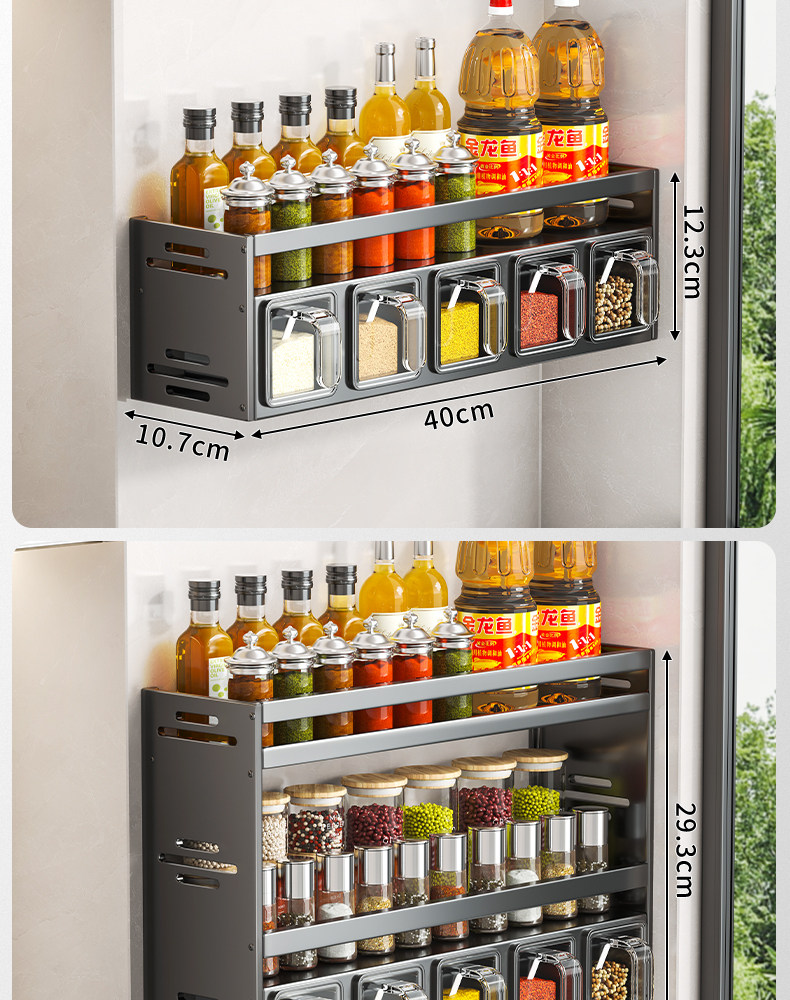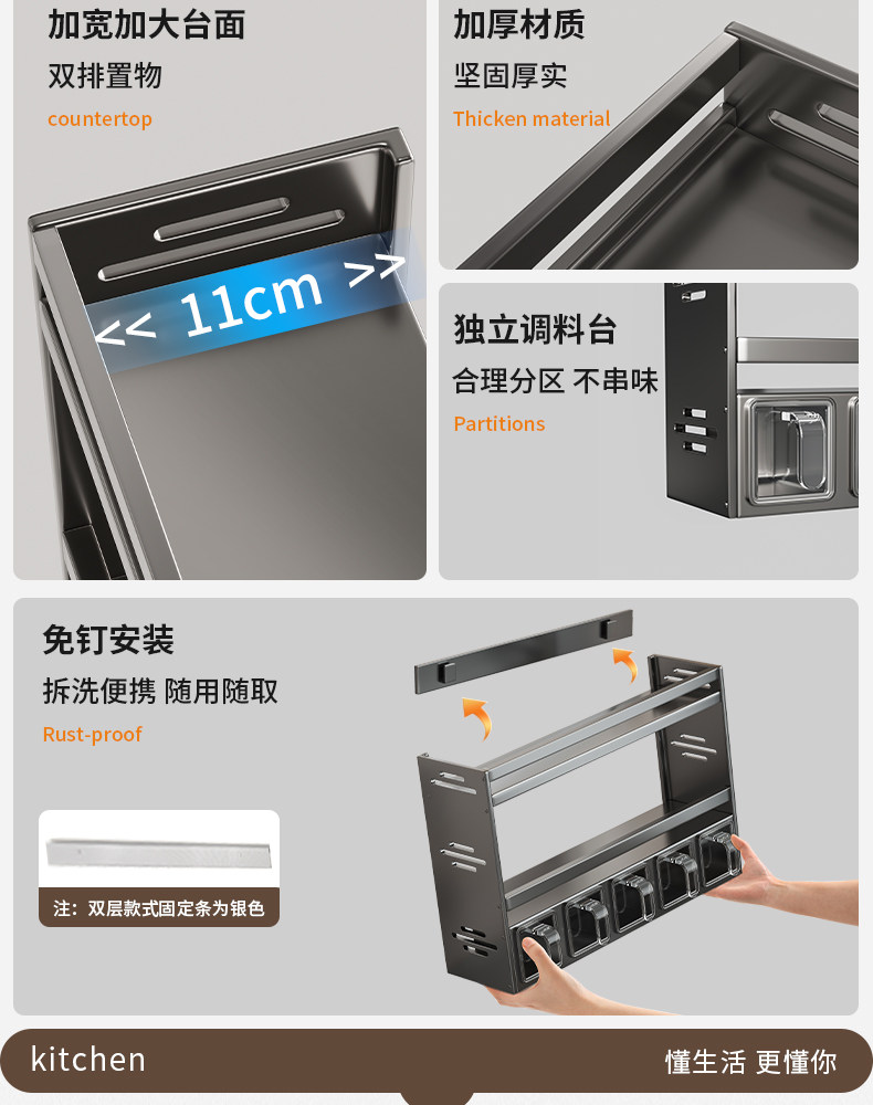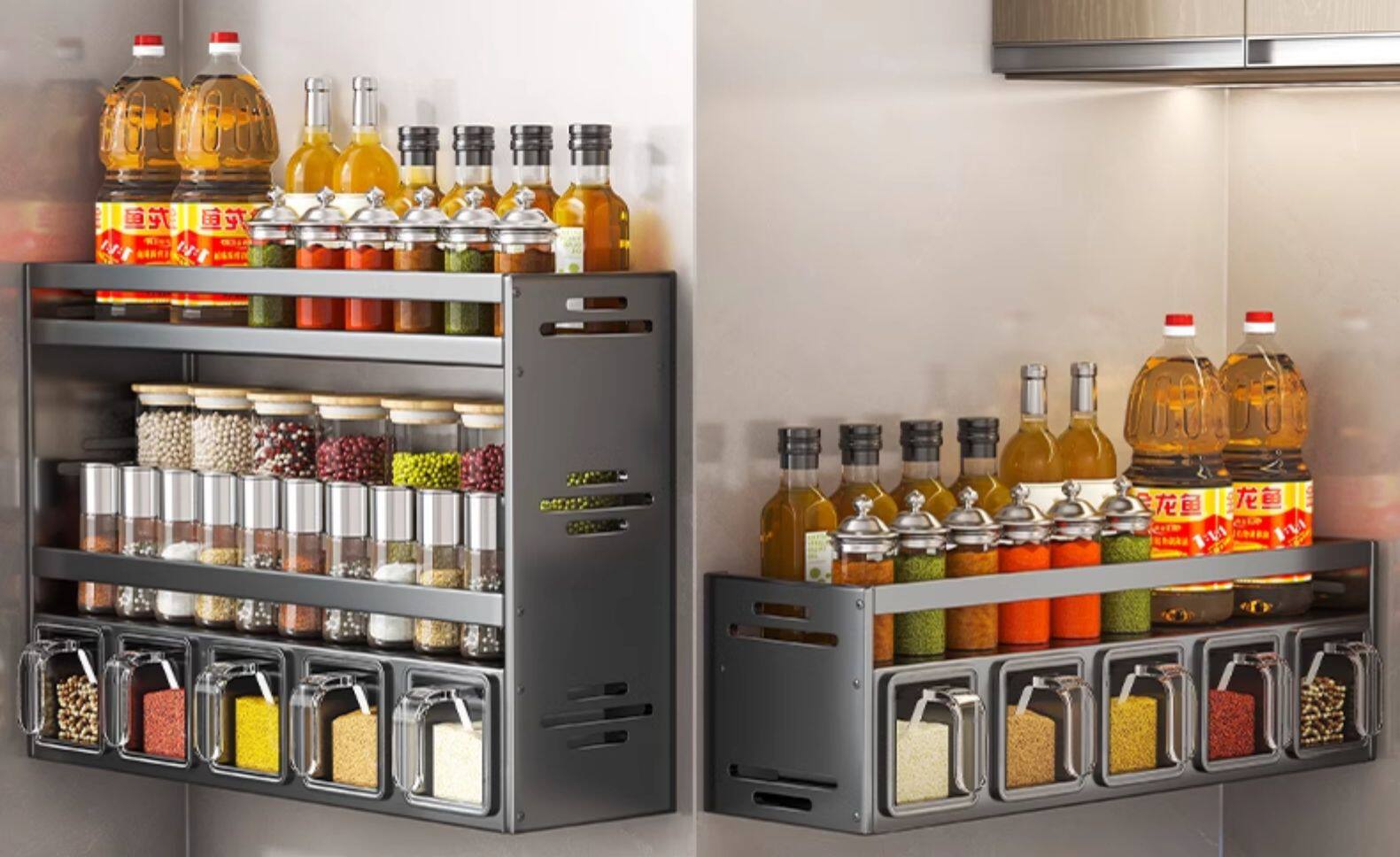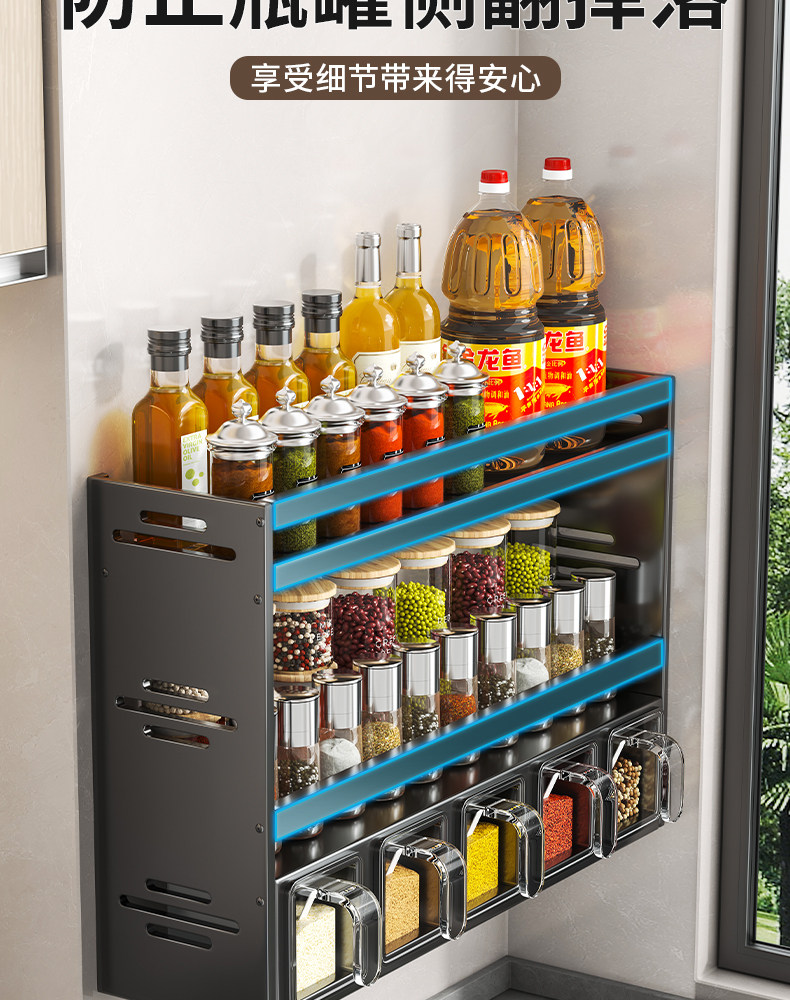 Support de cuisine mural pour pots à condiments d'huile, de sel, de sauce et de vinaigre sans poinçonnage, boîte de rangement domestique multifonctionnelle