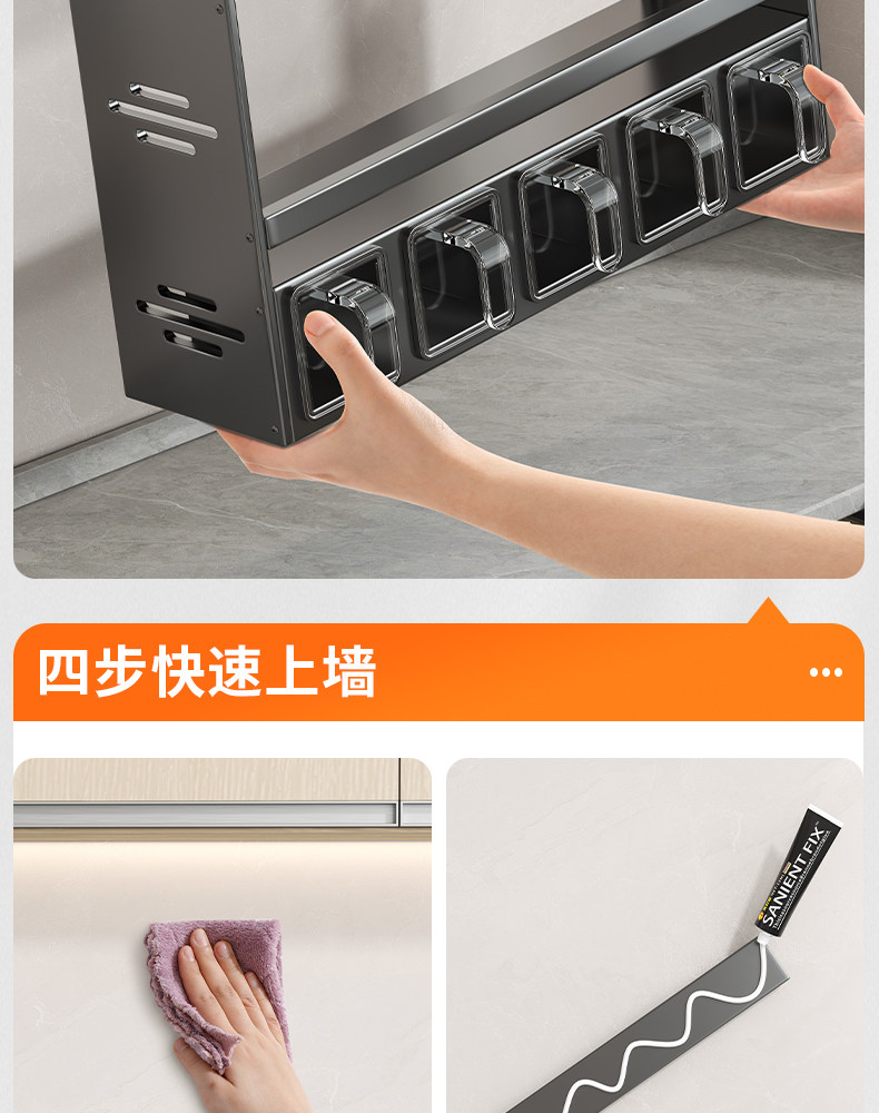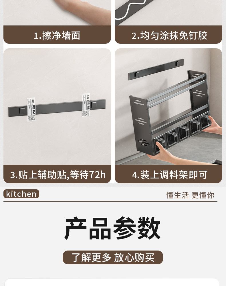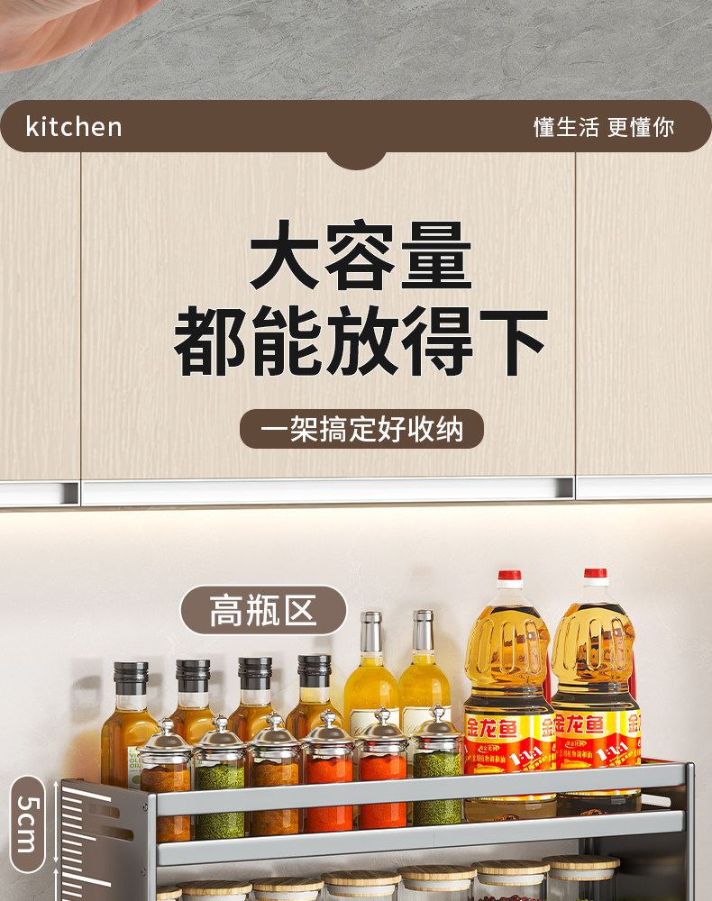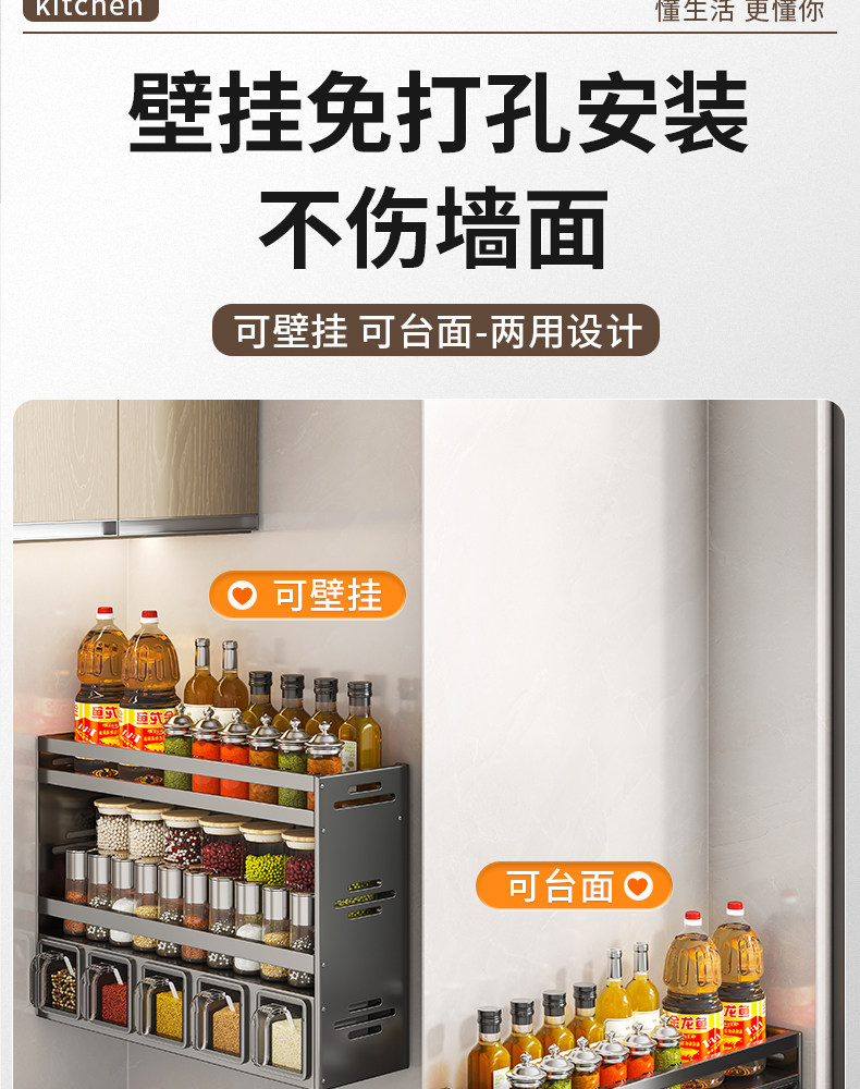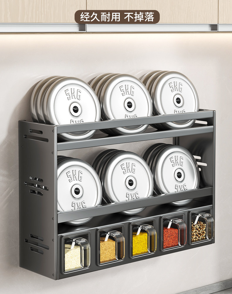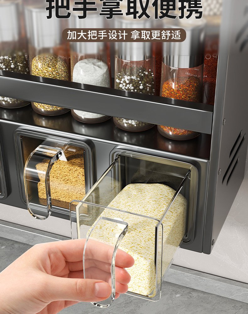Support de cuisine mural pour pots à condiments d'huile, de sel, de sauce et de vinaigre sans poinçonnage, boîte de rangement domestique multifonctionnelle