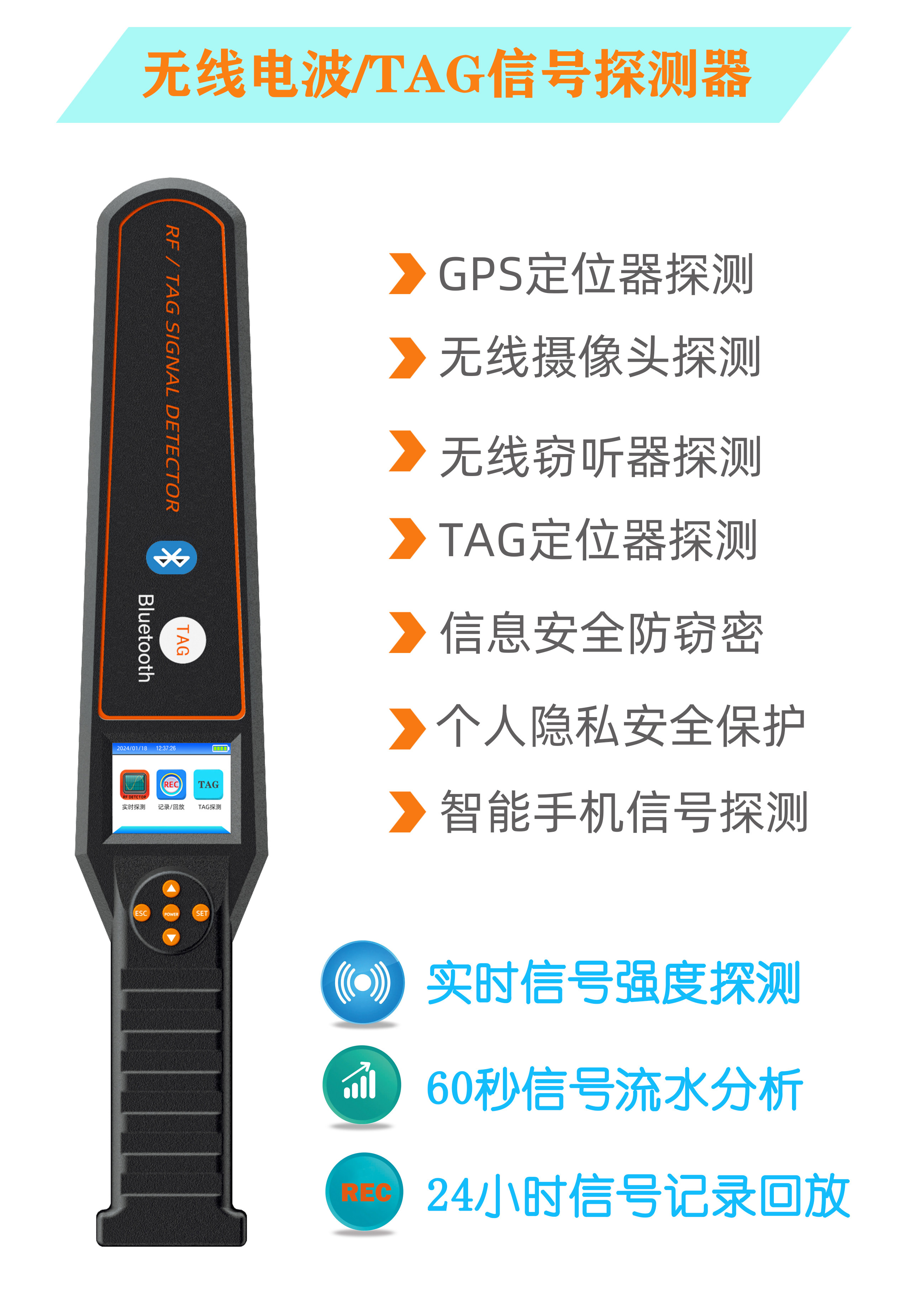 汽车gps探测器防AirTag蓝牙定位检测仪反监控窃听探测仪扫描查找