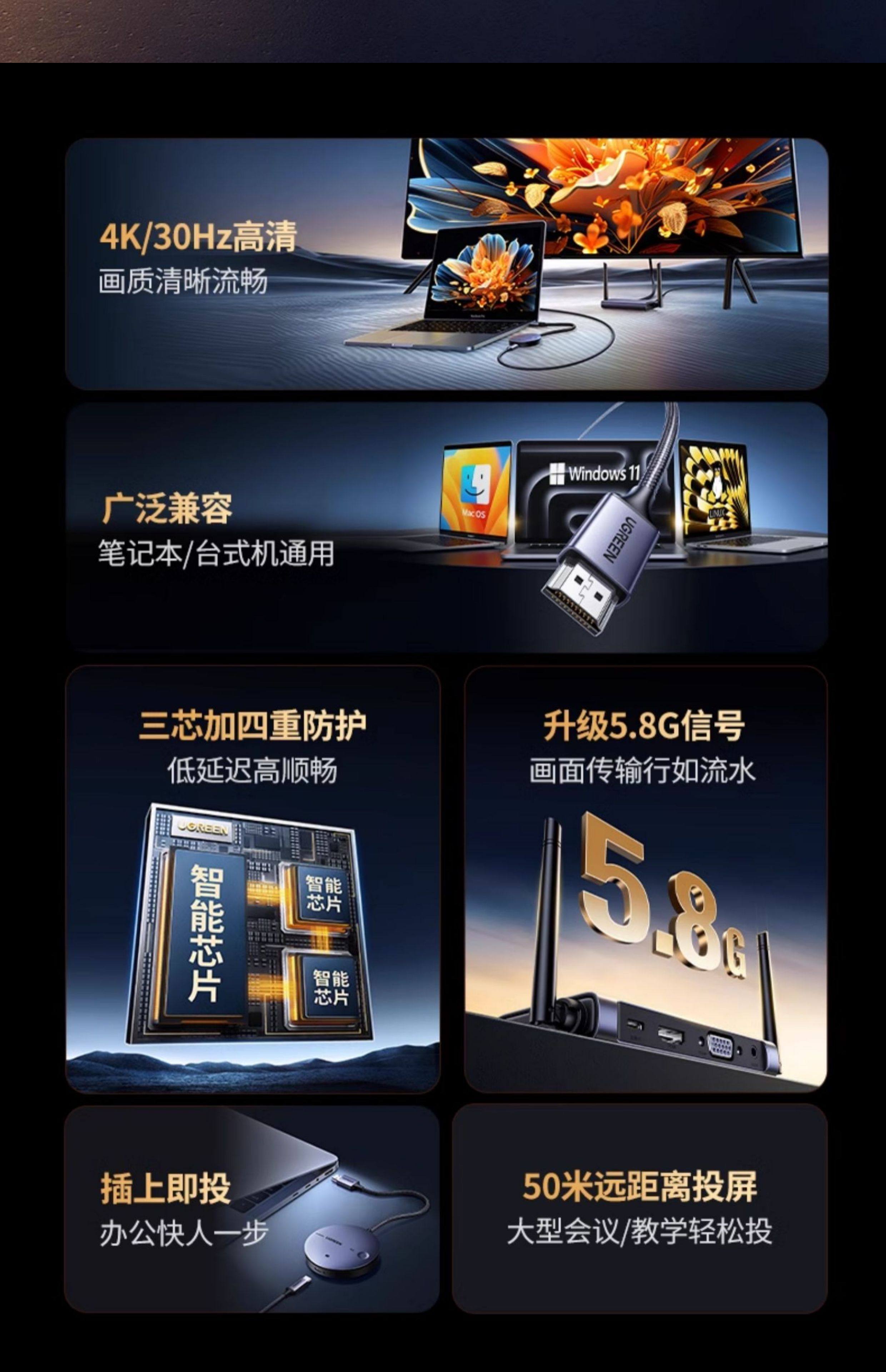 Беспроводной проектор Greenlink с HDMI-интерфейсом, передатчик видео 4K, подключение компьютера и мобильного телефона к телевизору CM506/50633