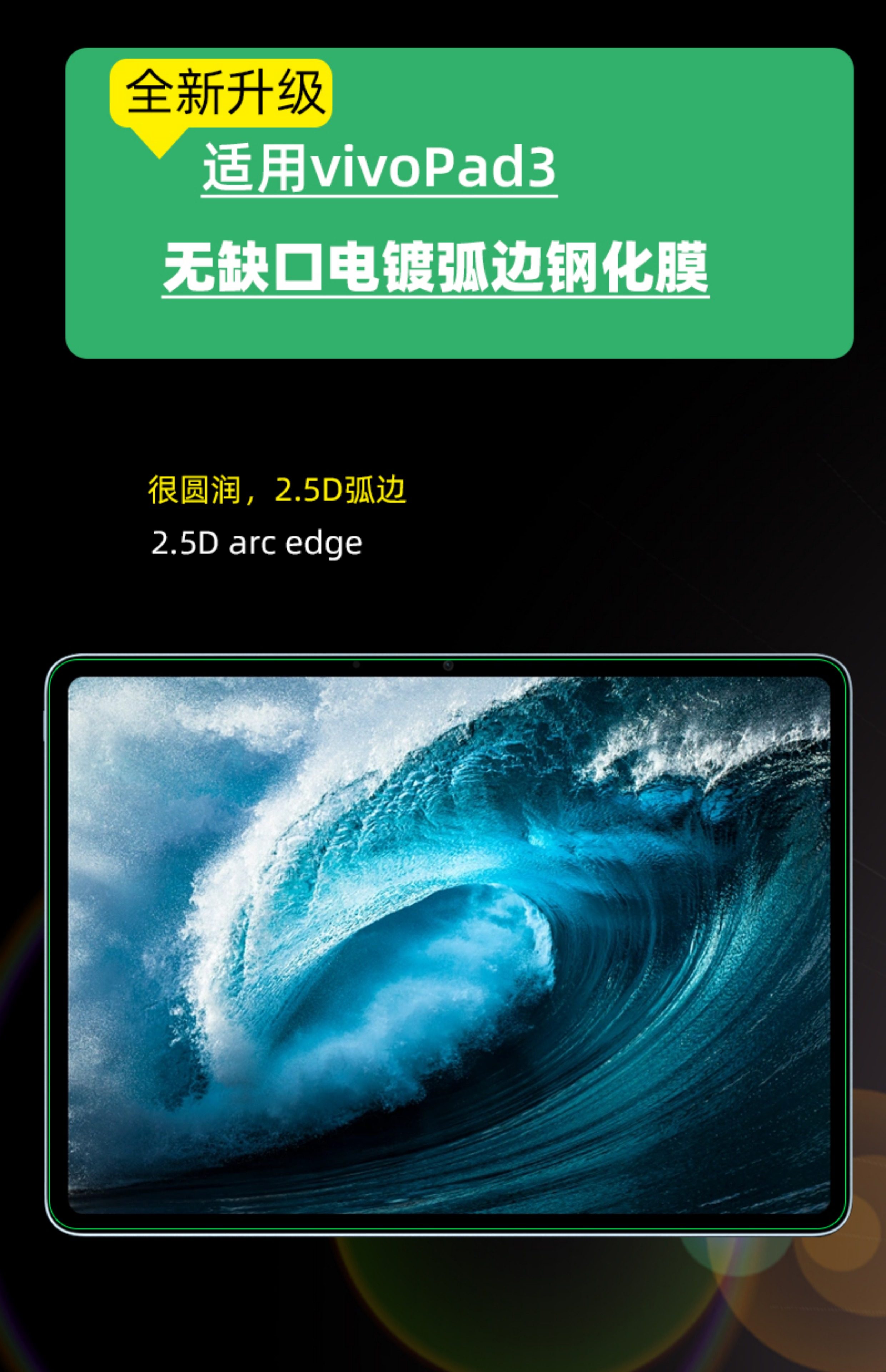 Jianqiying is suitable for vivopad3 non-porous tempered film blue light non-notch smooth oleophobic layer iqoopad2 curved edge high-definition protective film