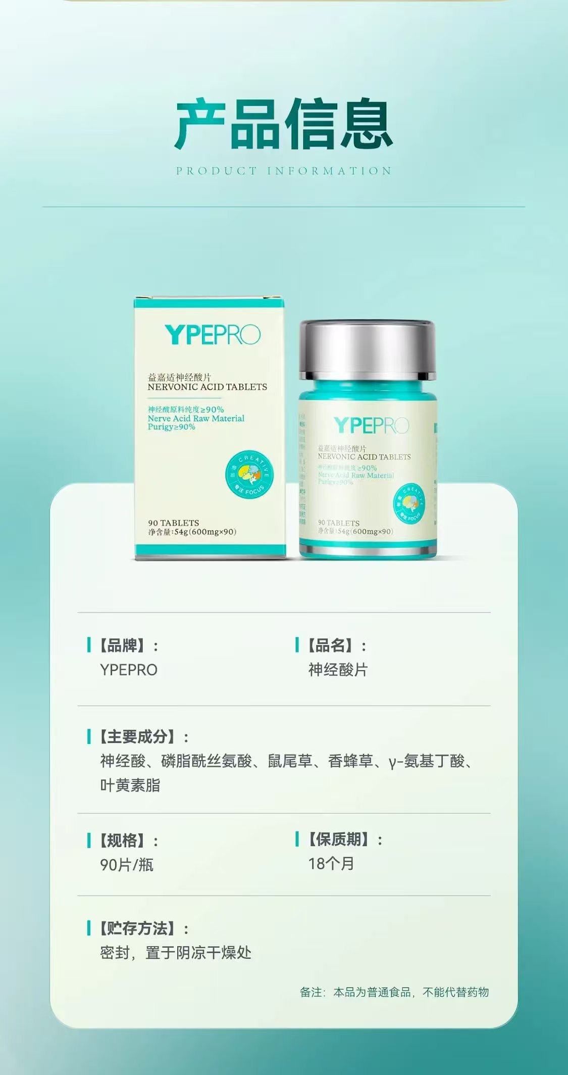 Ypepro Yijiasi Neuroacid Brain Nutrition Enhances Student Memory and Focus, Supplementing Ps Phosphatidylserine for Brain Power