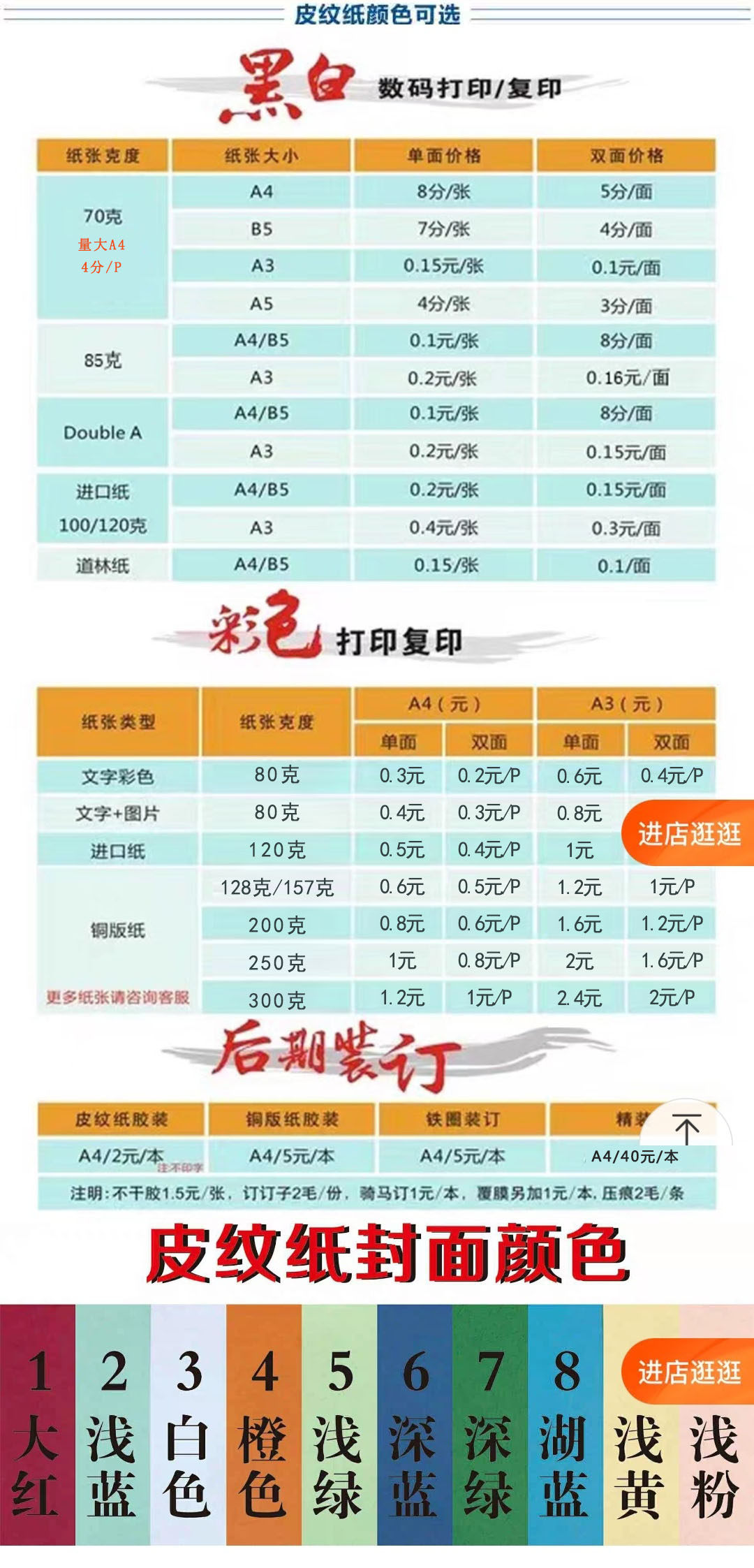 Printing materials: black and white color printing of handouts, photocopies of test papers, binding of printed materials into volumes, xi'an citywide