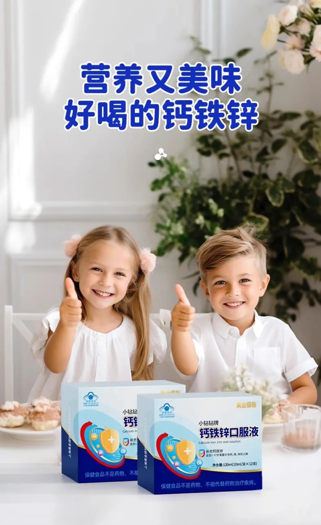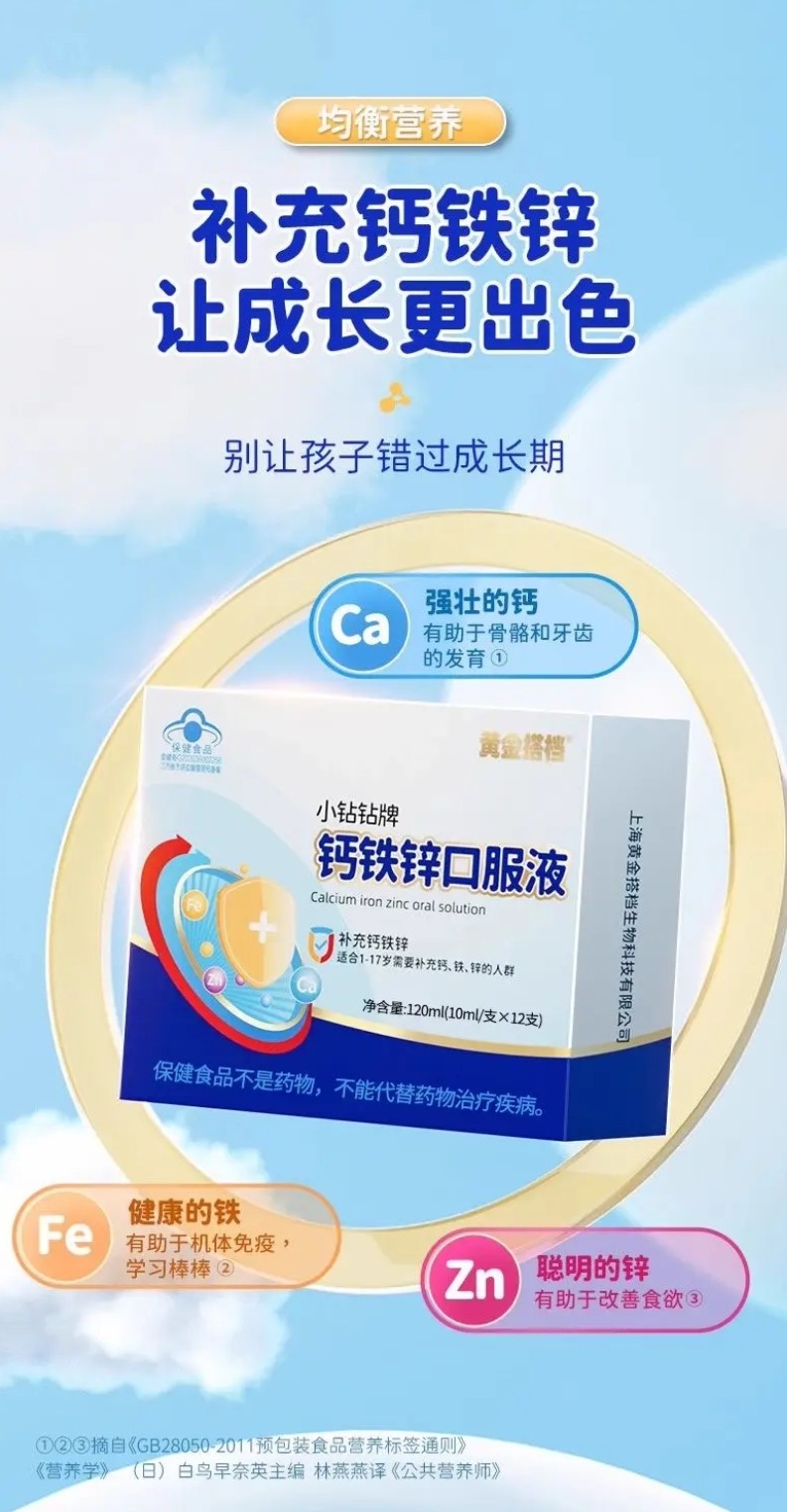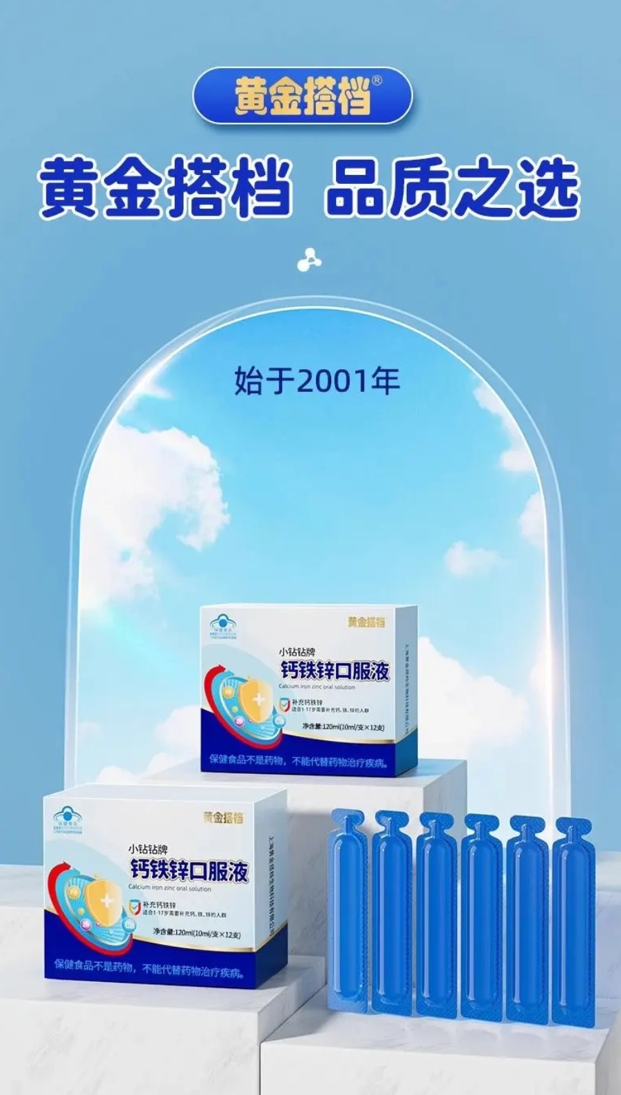 Golden partner calcium, iron and zinc oral liquid 96 bottles for children, teenagers and students to supplement calcium, genuine gift box nutritional products