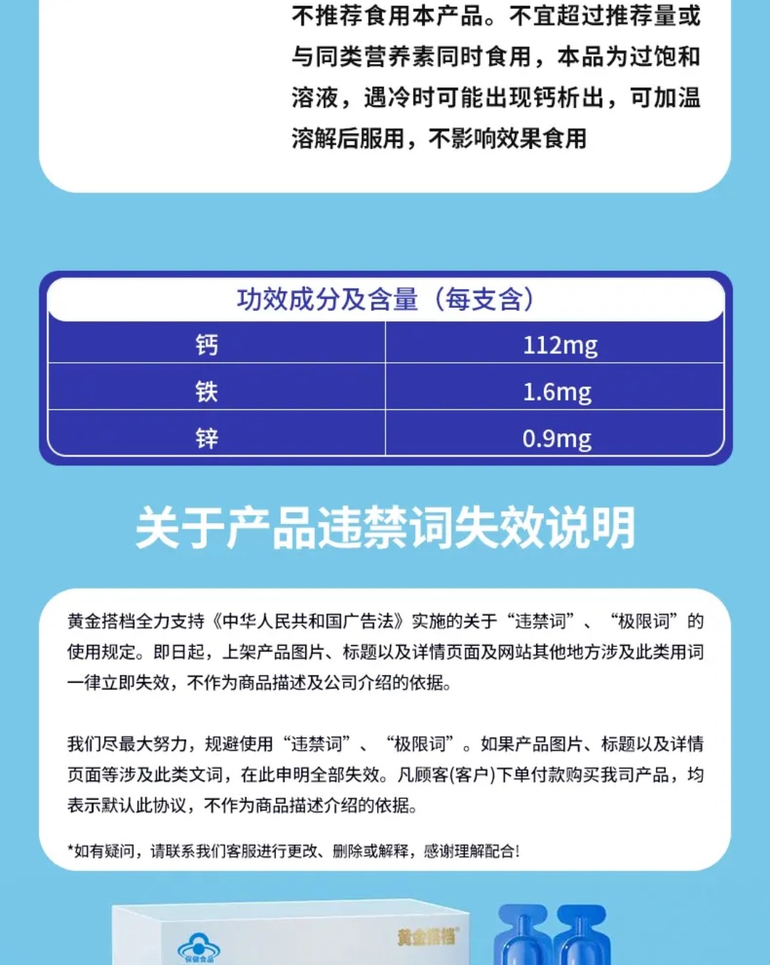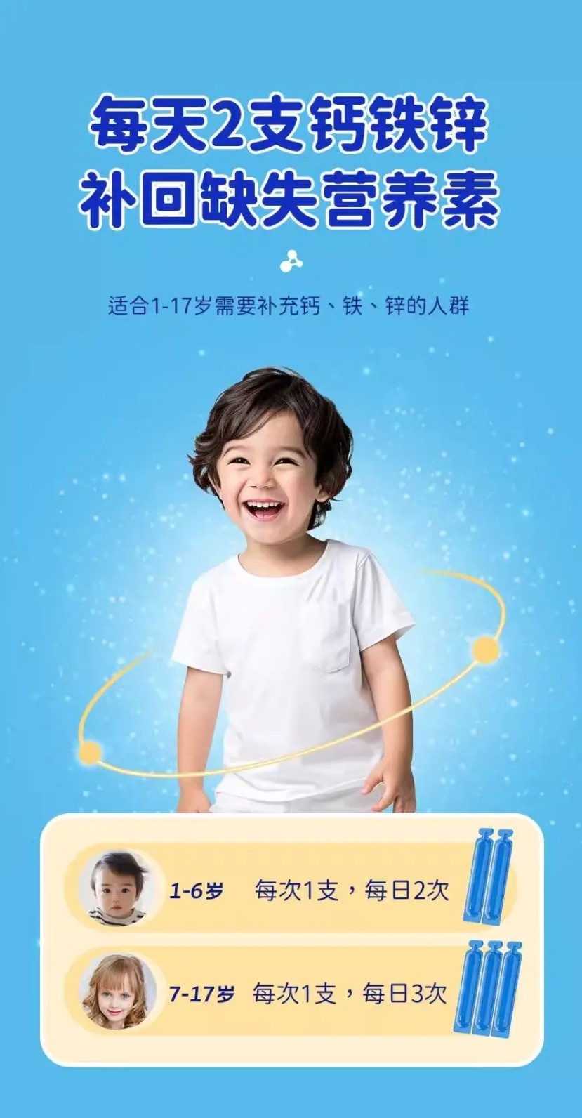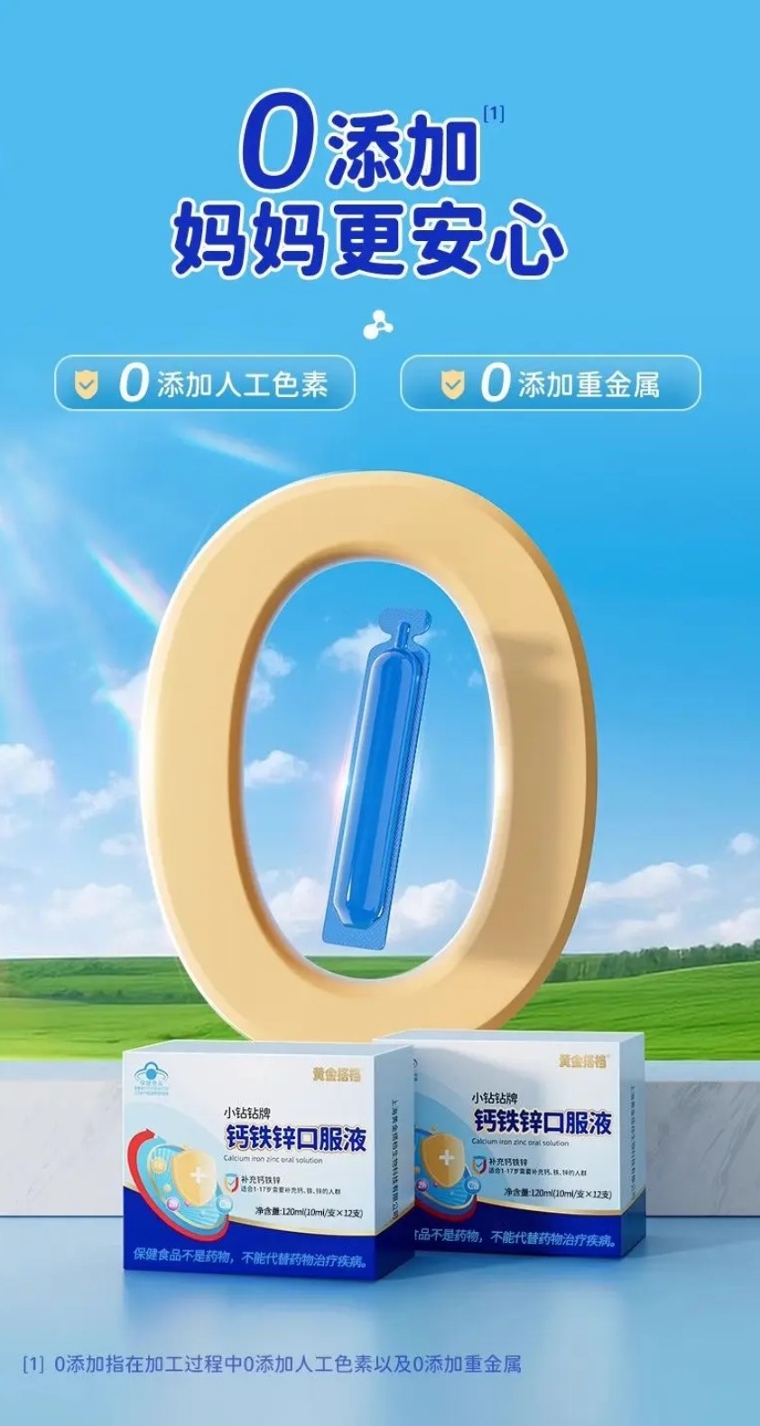 Golden partner calcium, iron and zinc oral liquid 96 bottles for children, teenagers and students to supplement calcium, genuine gift box nutritional products