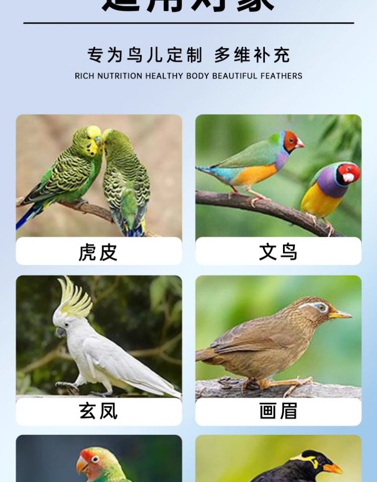 适用生长阶段 成年鸟,老年鸟,幼年鸟,繁殖期