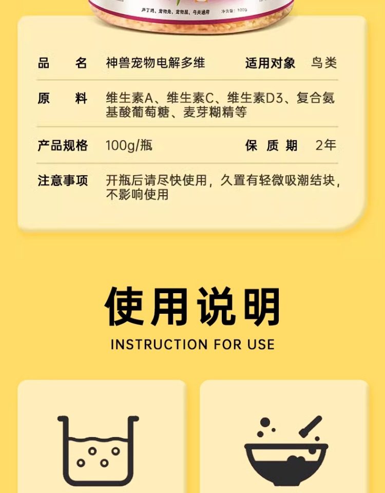电解多维鹦鹉专用鸟玄凤虎皮珍珠鸟营养补充电解质鸟用多种维生素