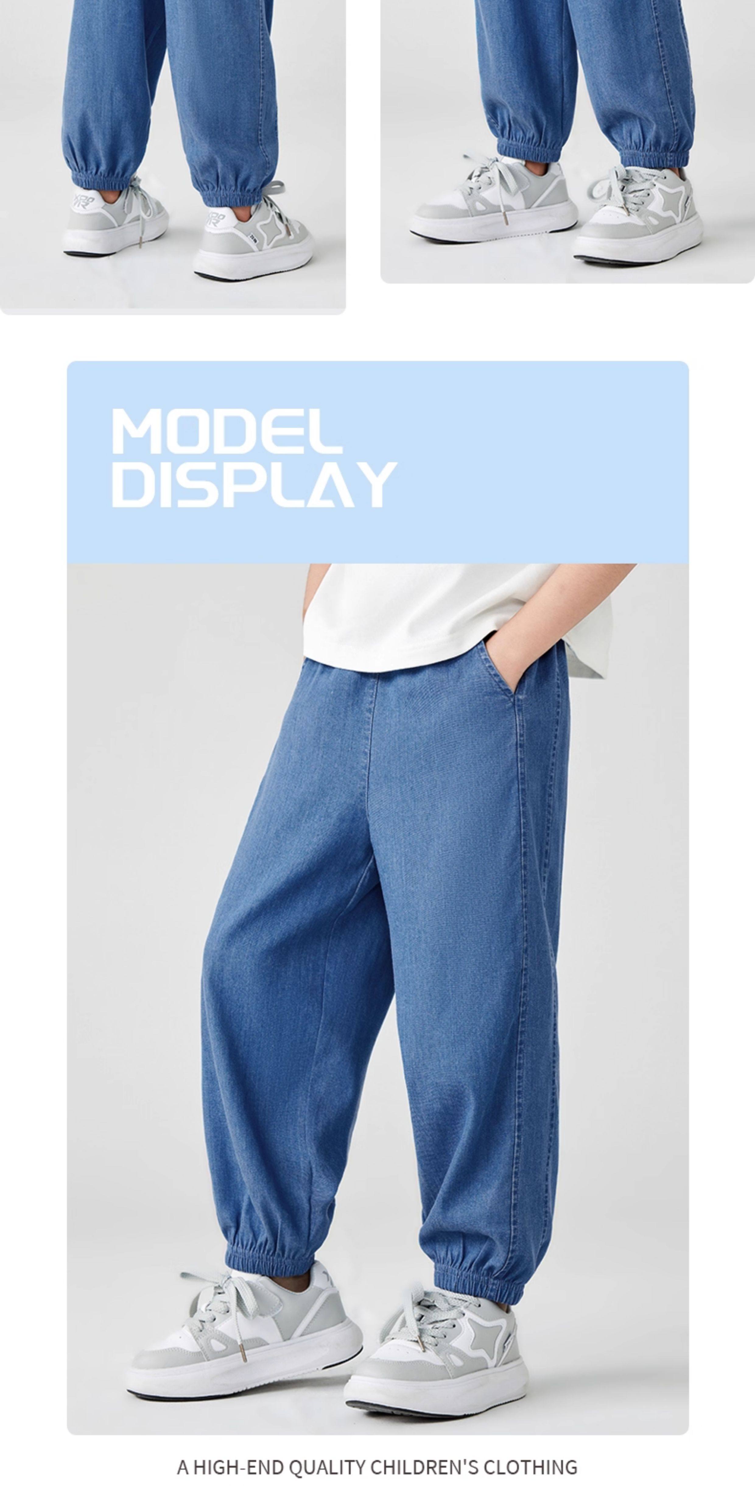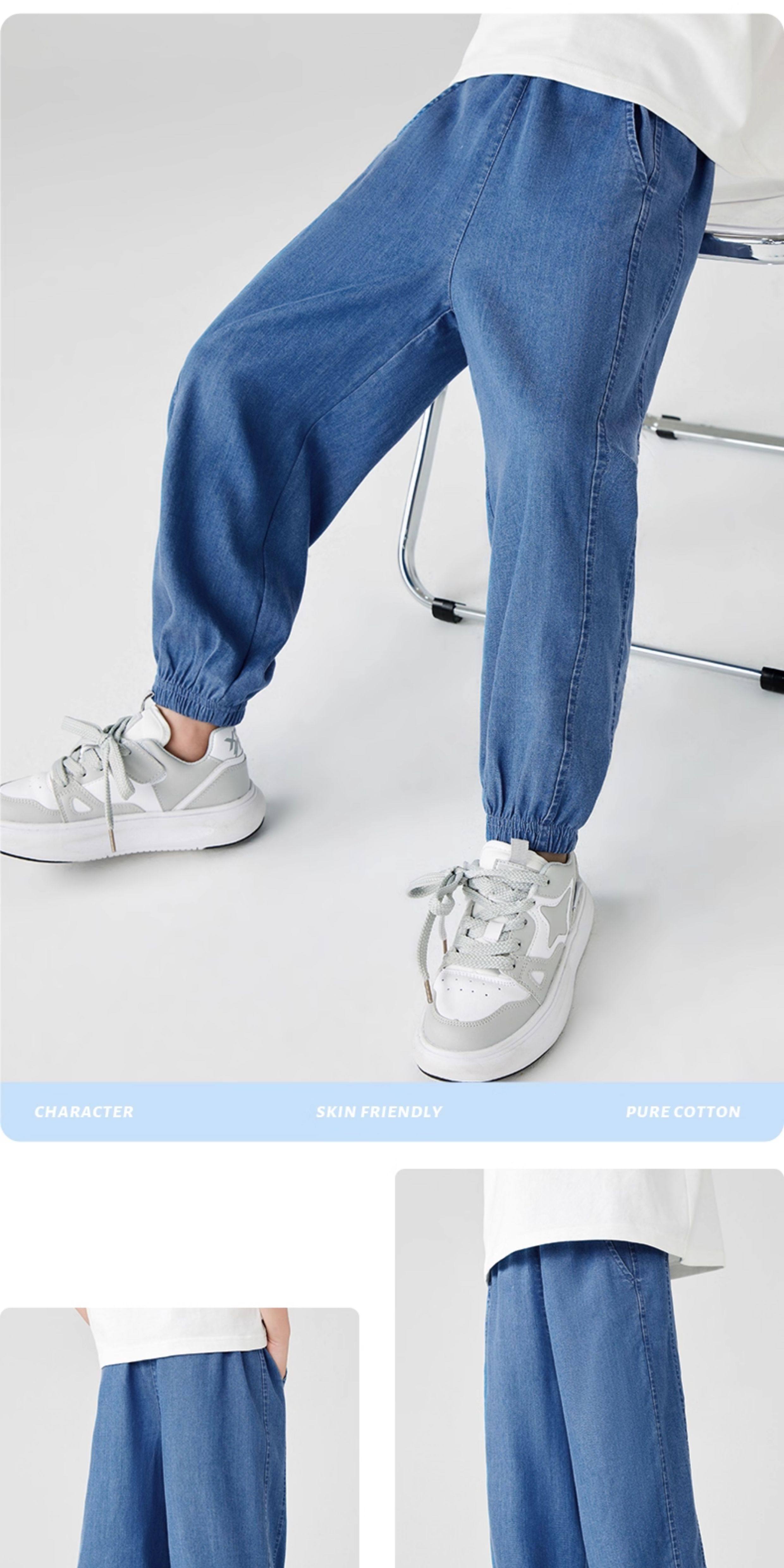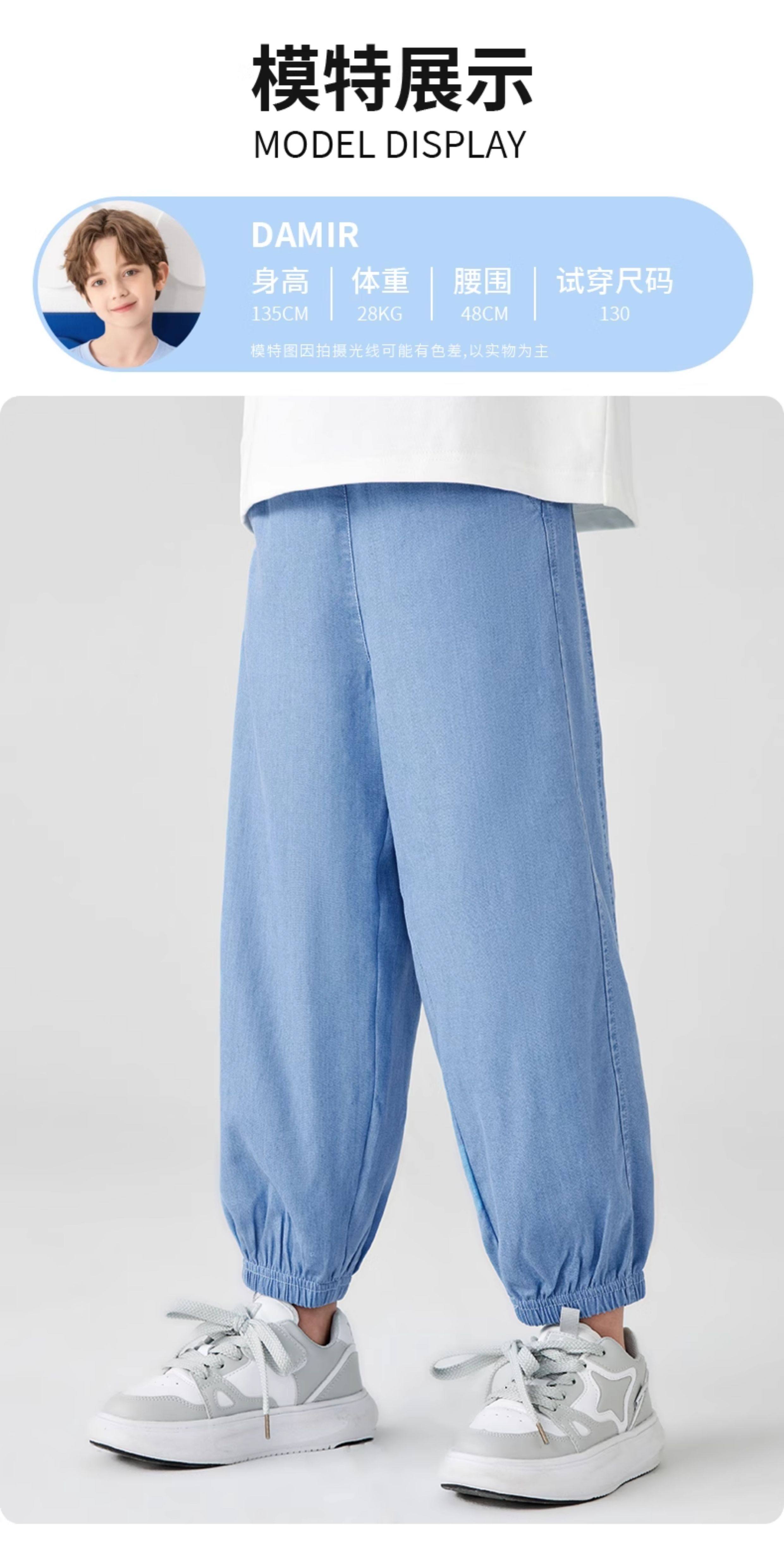 运动真维斯儿童牛仔裤男童夏季薄款天丝裤子防蚊裤男孩长裤冰丝夏