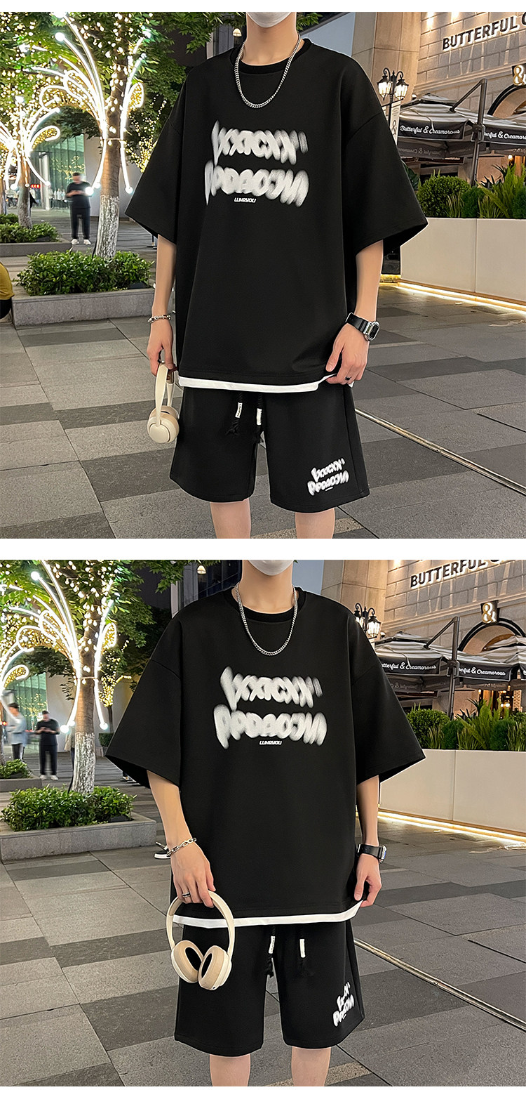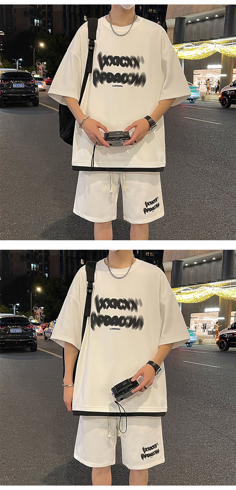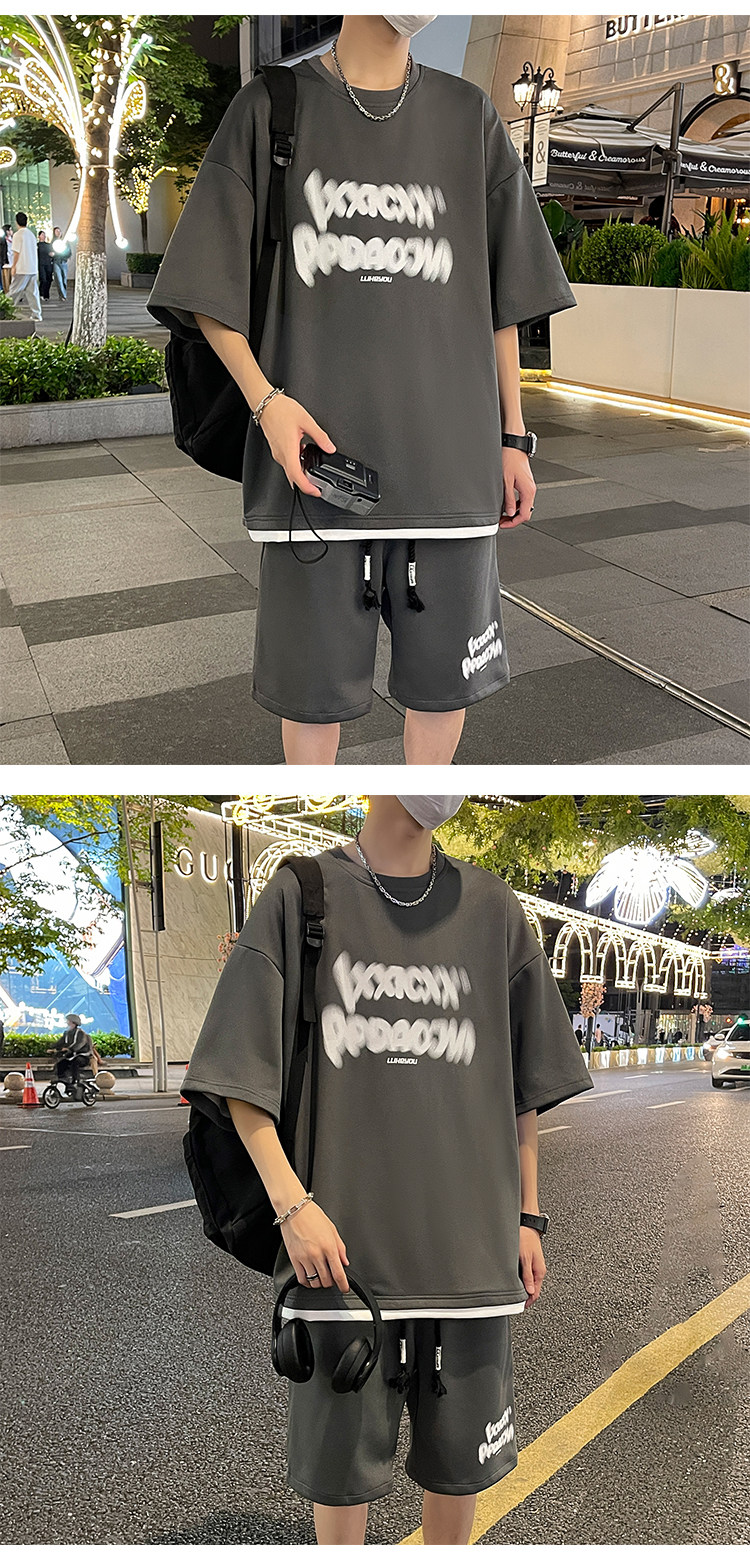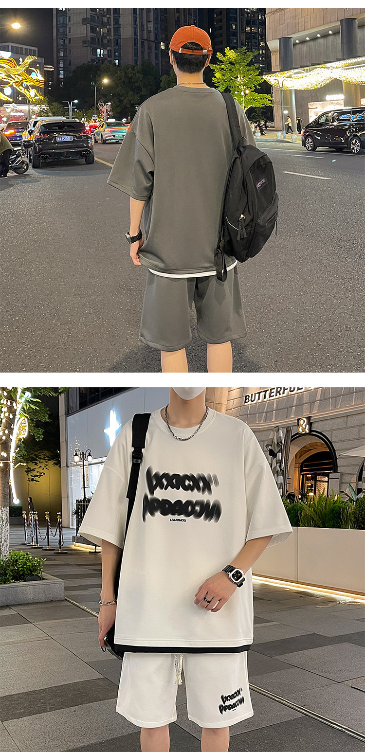 Fake Two-Piece Casual Sports Suit for Men, Summer Trendy Brand Short-Sleeve T-Shirt and Shorts, Men's High-End Style Matching Set
