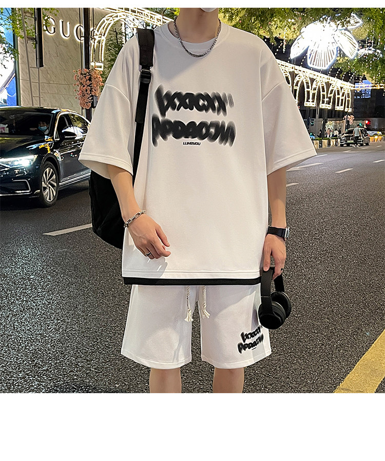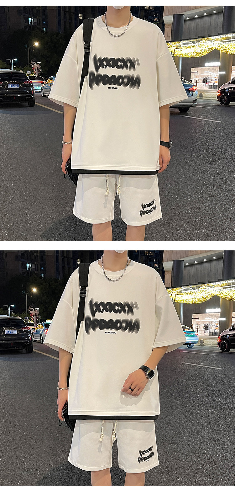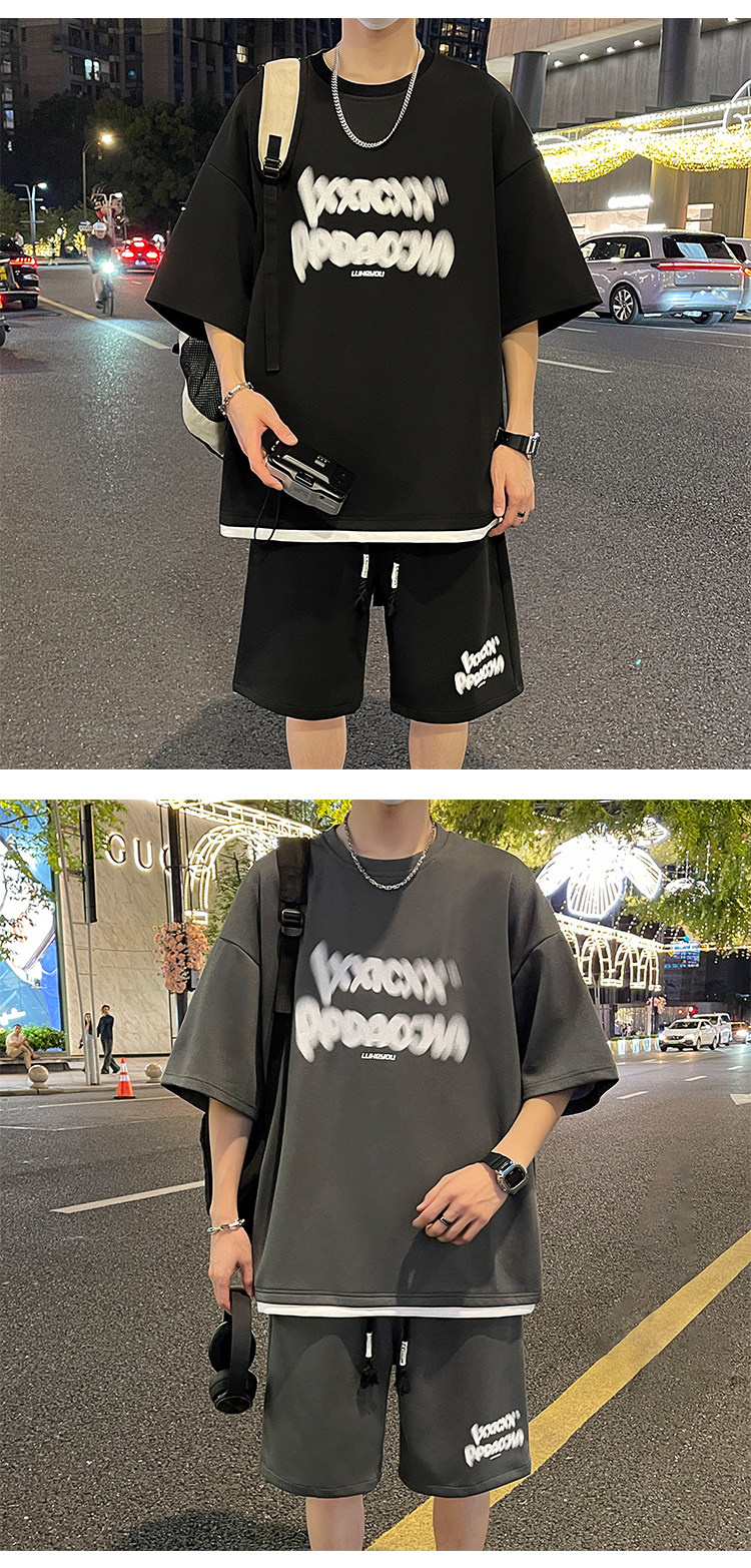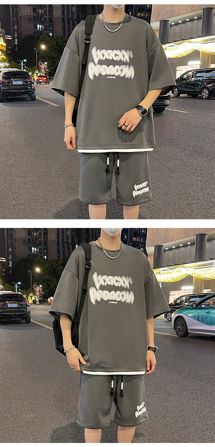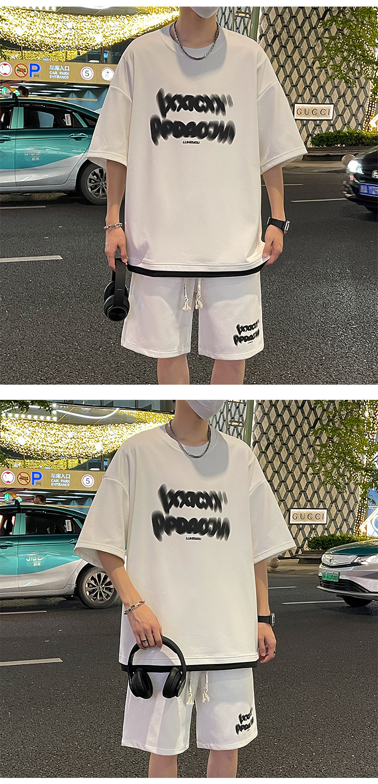 Fake Two-Piece Casual Sports Suit for Men, Summer Trendy Brand Short-Sleeve T-Shirt and Shorts, Men's High-End Style Matching Set