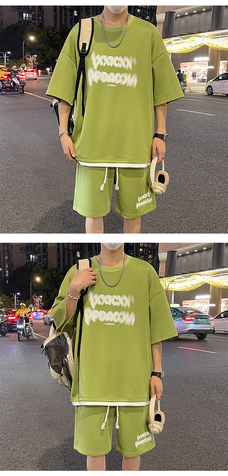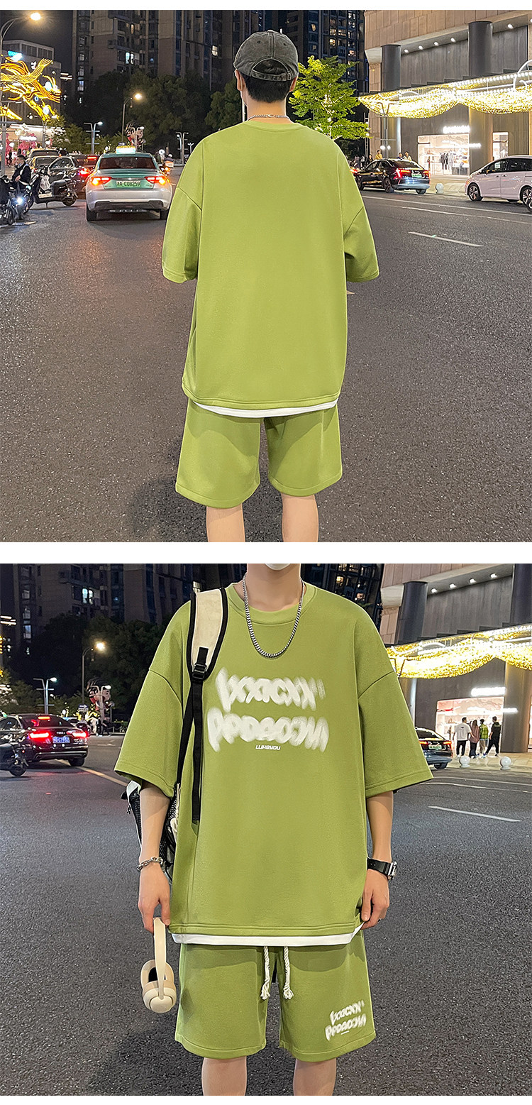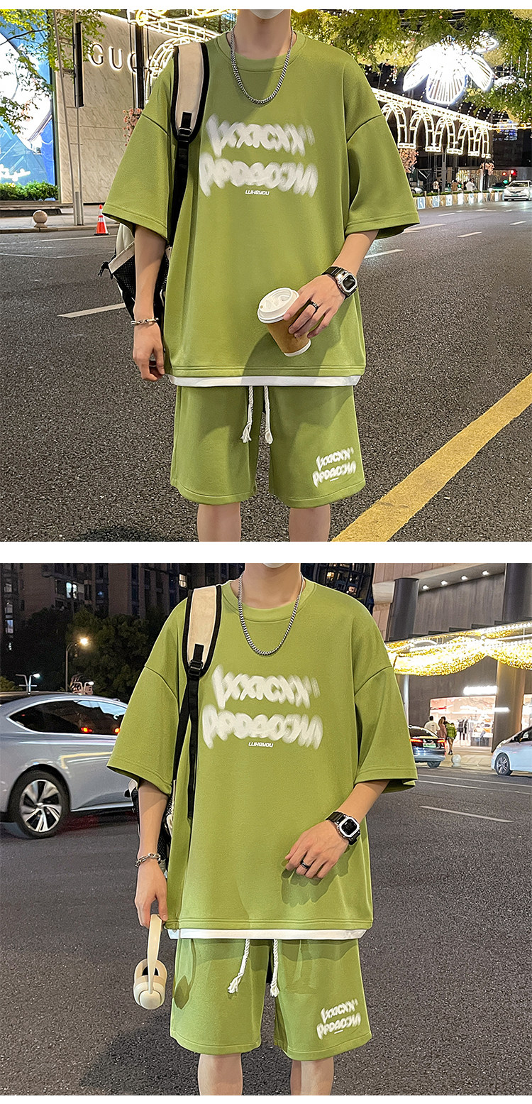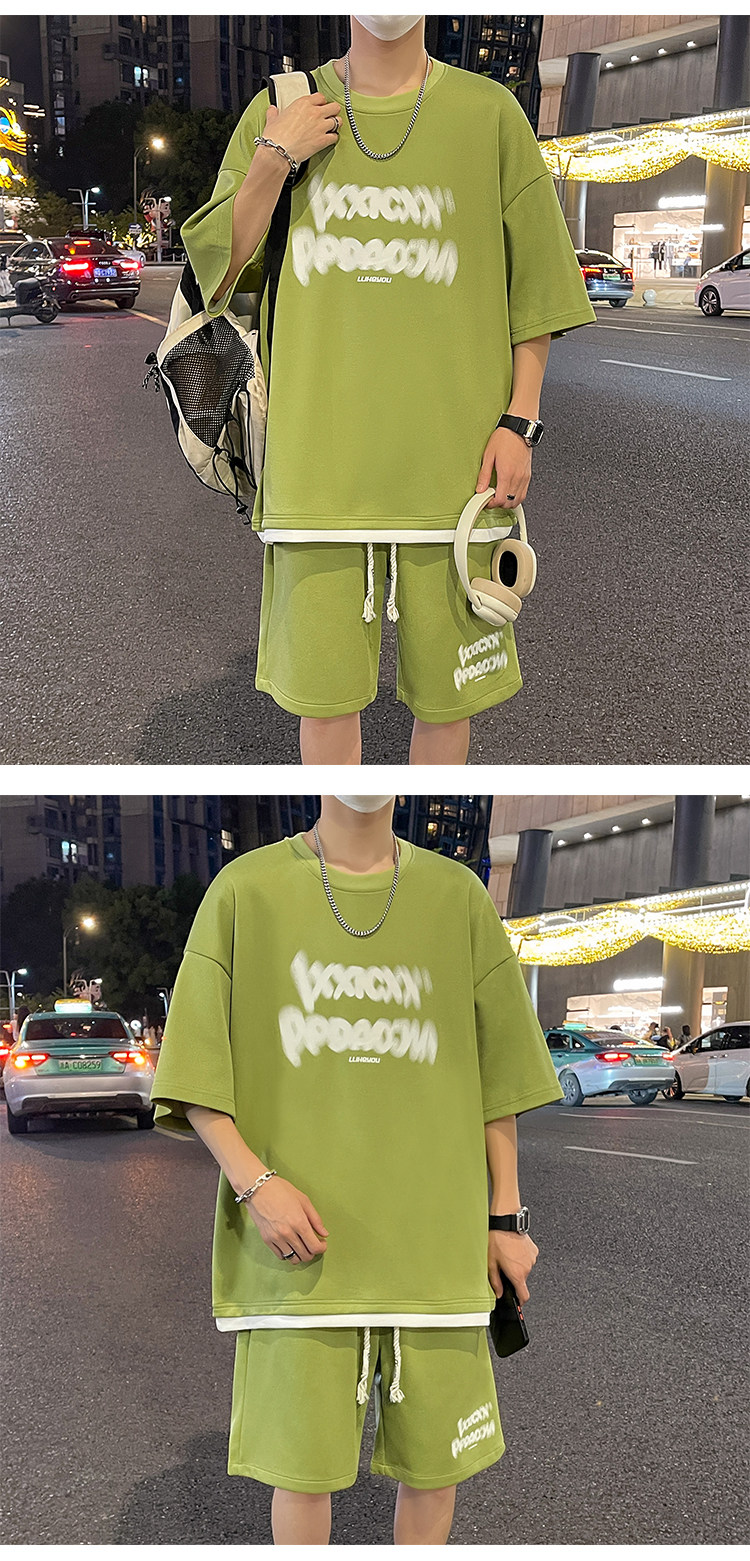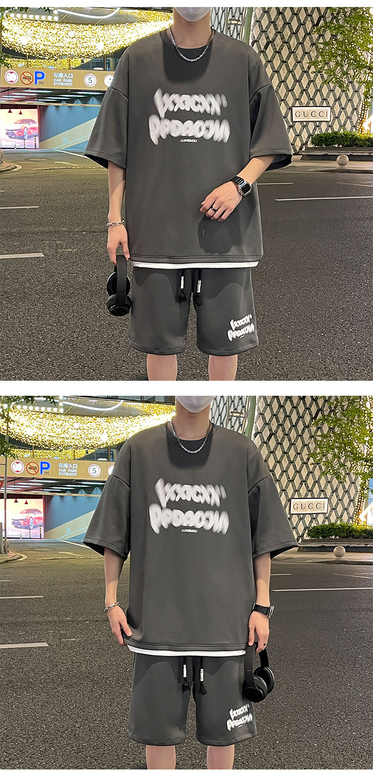 Fake Two-Piece Casual Sports Suit for Men, Summer Trendy Brand Short-Sleeve T-Shirt and Shorts, Men's High-End Style Matching Set