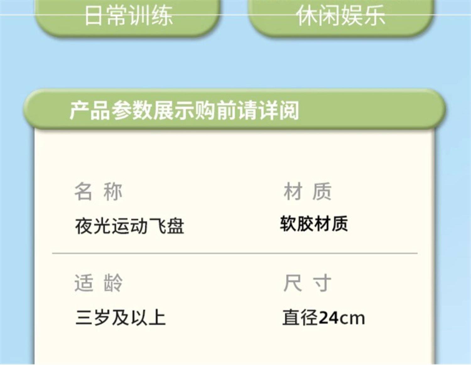 颜色分类 【绿色】夜光飞盘★柔软不伤人★直径20cm,【白色】夜光飞盘★柔软不伤人★直径20cm,【红色】夜光飞盘★柔软不伤人★直径20cm,【两个装】夜光红+夜光绿【柔软不伤人★直径20cm】,【两个装】夜光绿+夜光白【柔软不伤人★直径20cm】,【两个装】夜光红+夜光白【柔软不伤人★直径20cm】,【三个装】夜光绿+夜光白+夜光红【柔软不伤人★直径20cm】,【宇航员】柔软不伤人★直径20cm,【霸王龙】柔软不伤人★直径20cm,【独角兽】柔软不伤人★直径20cm,【小黄鸭】柔软不伤人★直径20cm,【小兔子】柔软不伤人★直径20cm