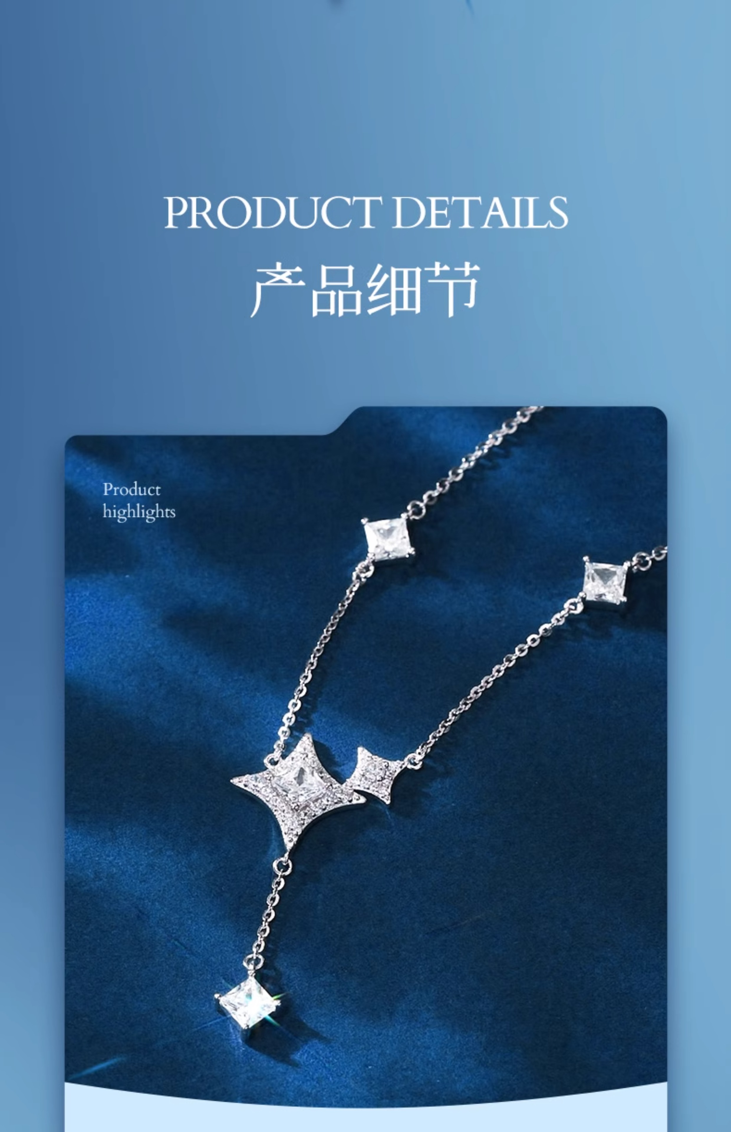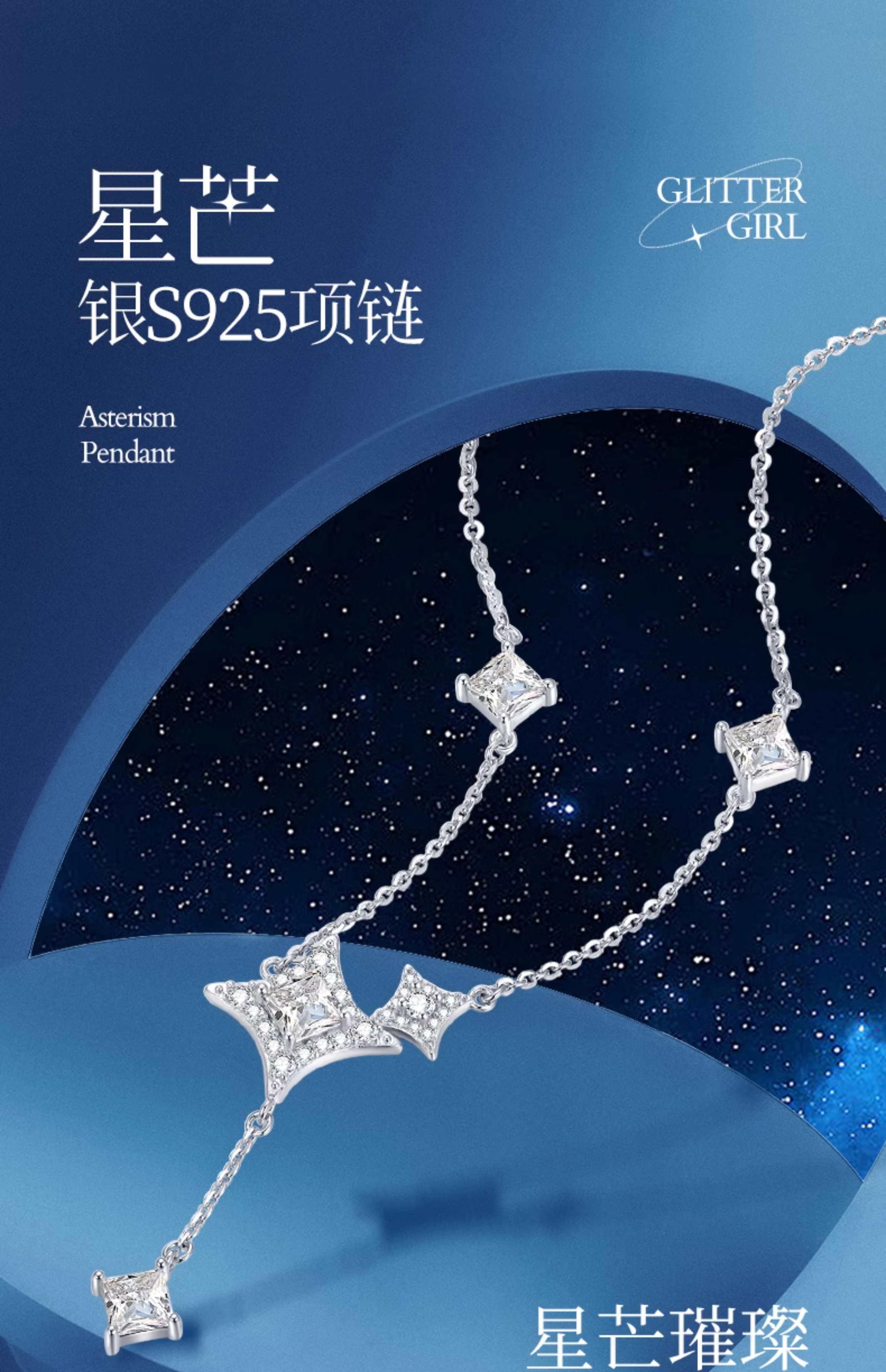 周大生璀璨星辰S925纯银项链女星月锁骨链吊坠正品送女友生日礼物