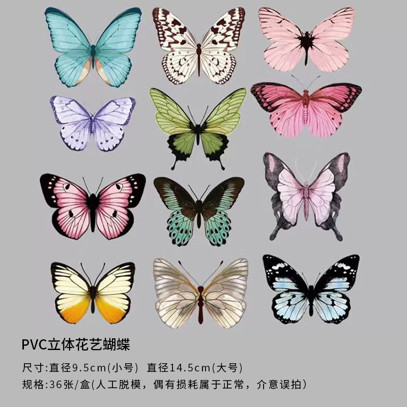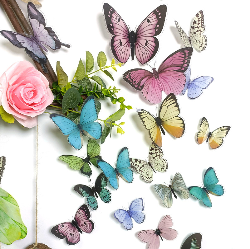 Наклейки из ПВХ с объемным реалистичным цветочным узором в виде бабочек для упаковки букетов, DIY, свежий и простой декор для дома