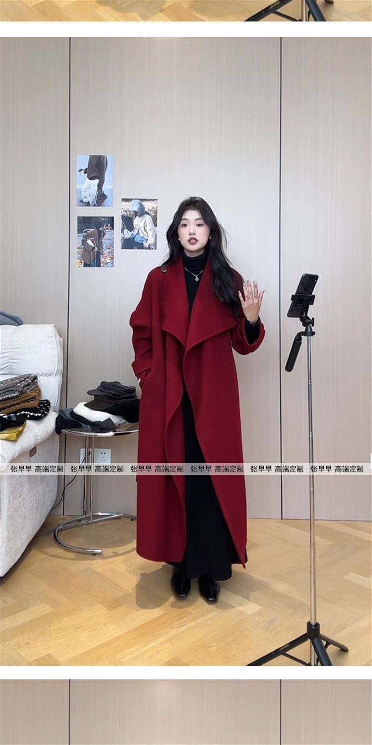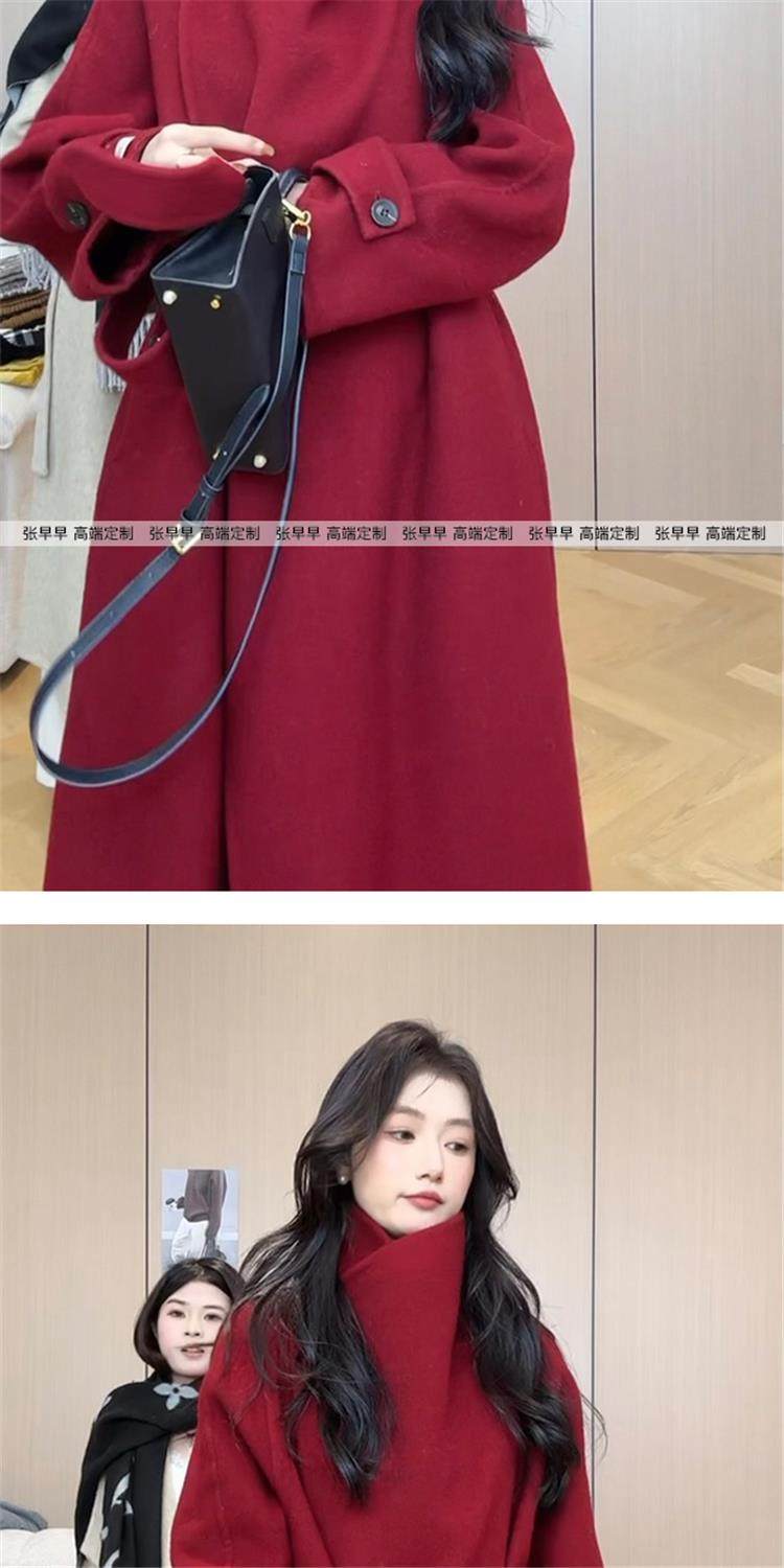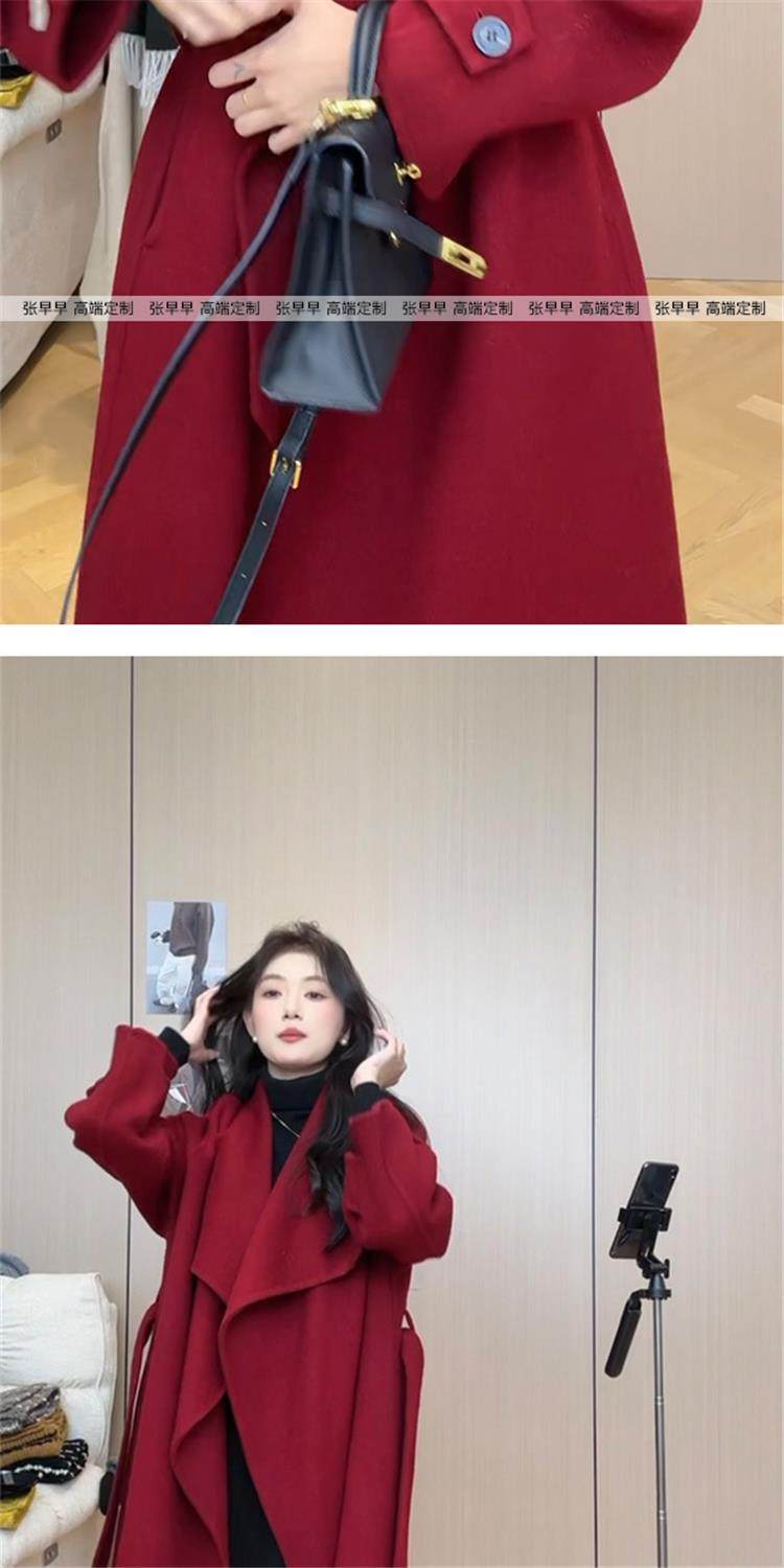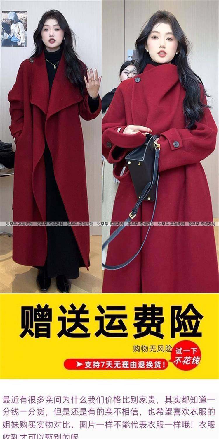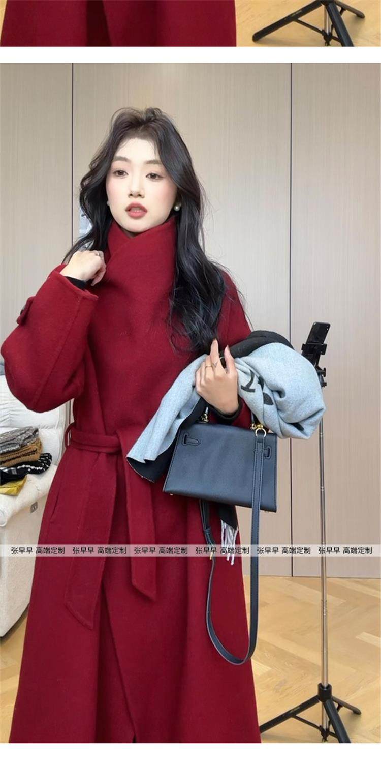 红色高级感双面羊绒大衣女2025新款长款过膝收腰气质韩系毛呢外套