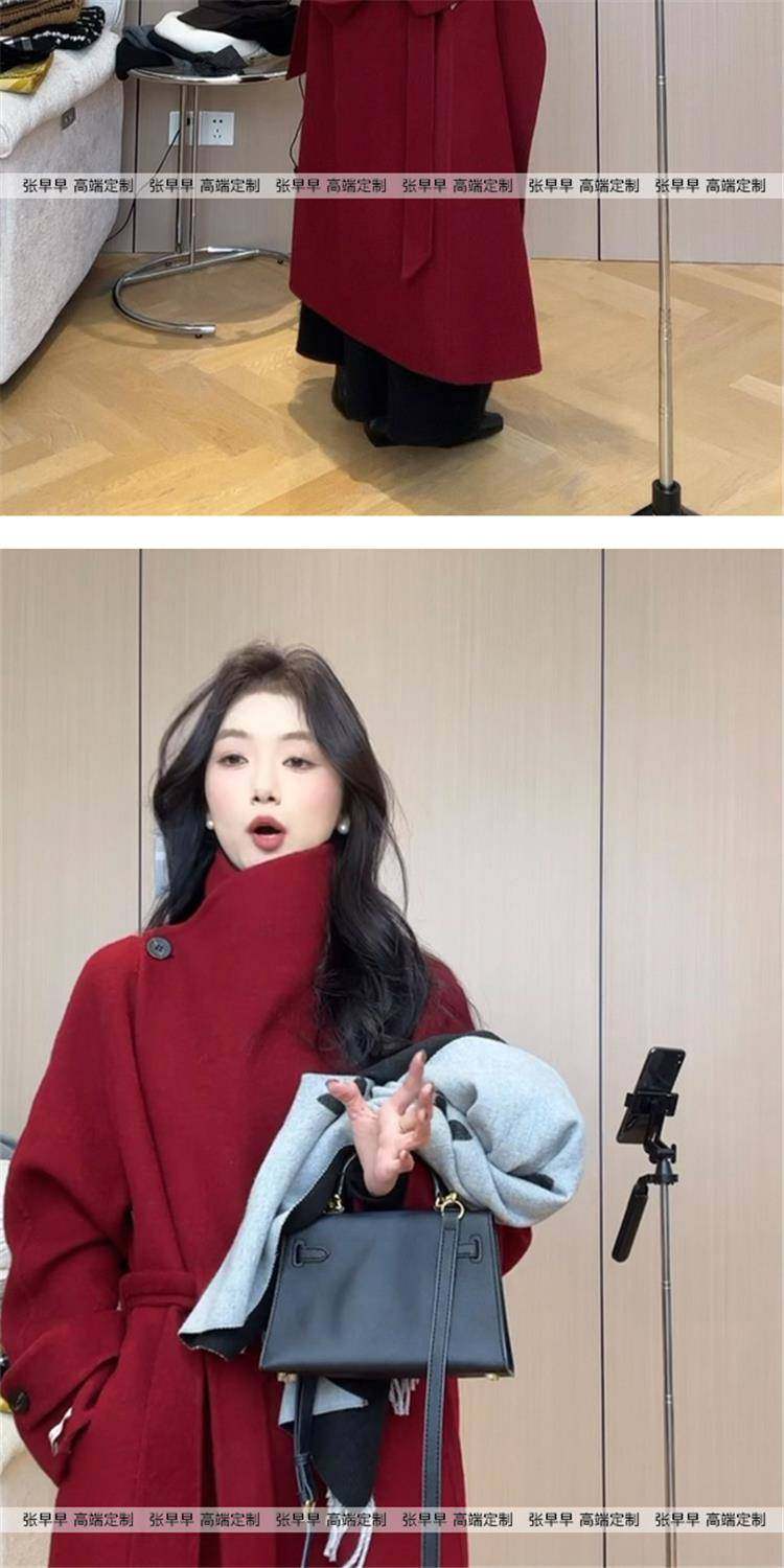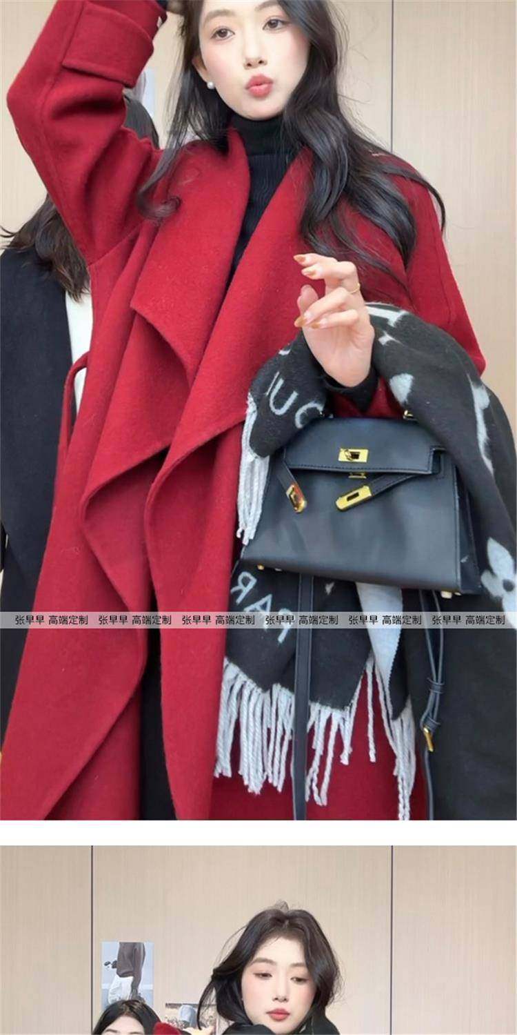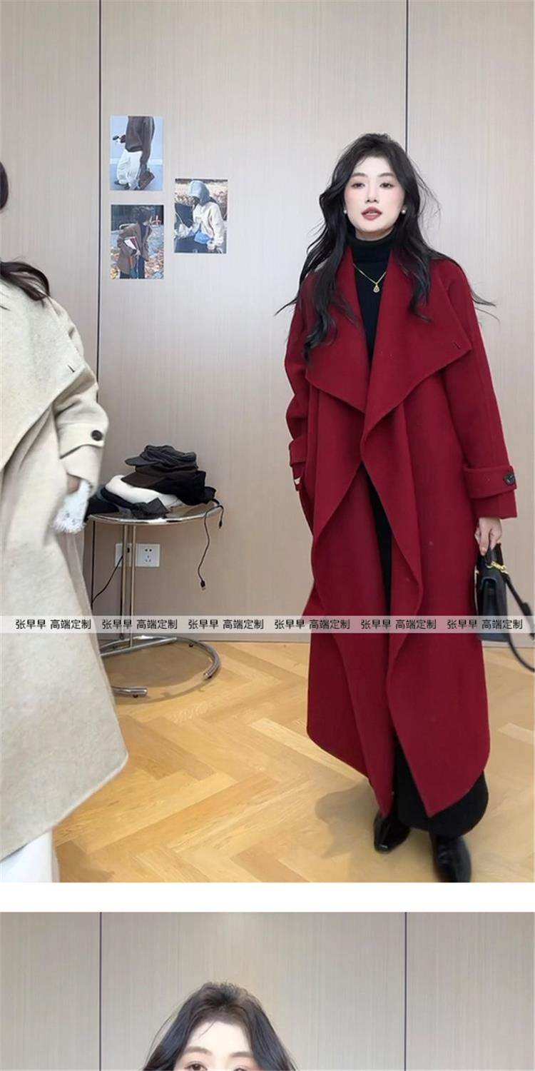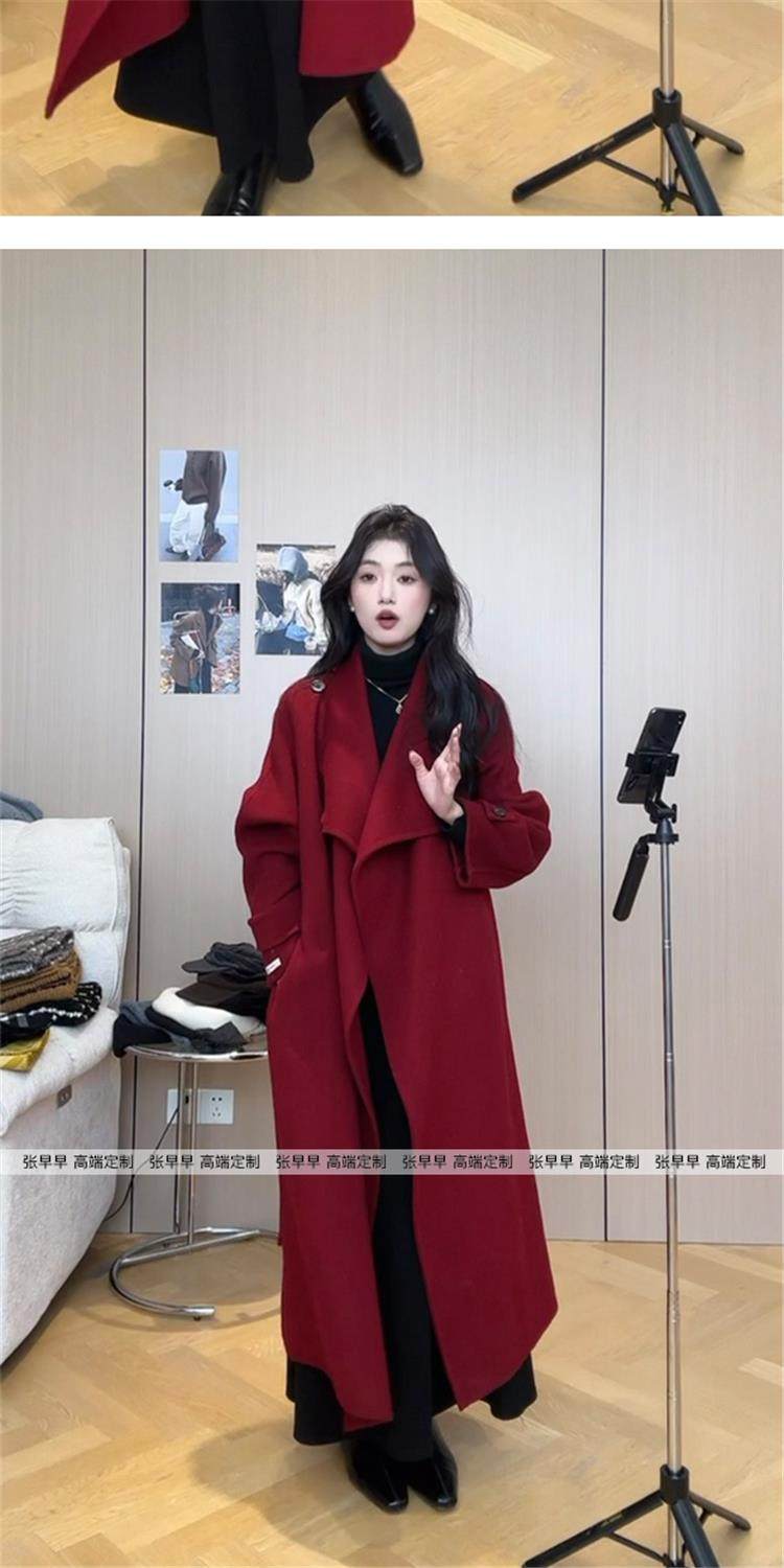 红色高级感双面羊绒大衣女2025新款长款过膝收腰气质韩系毛呢外套