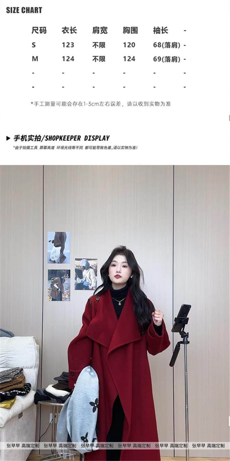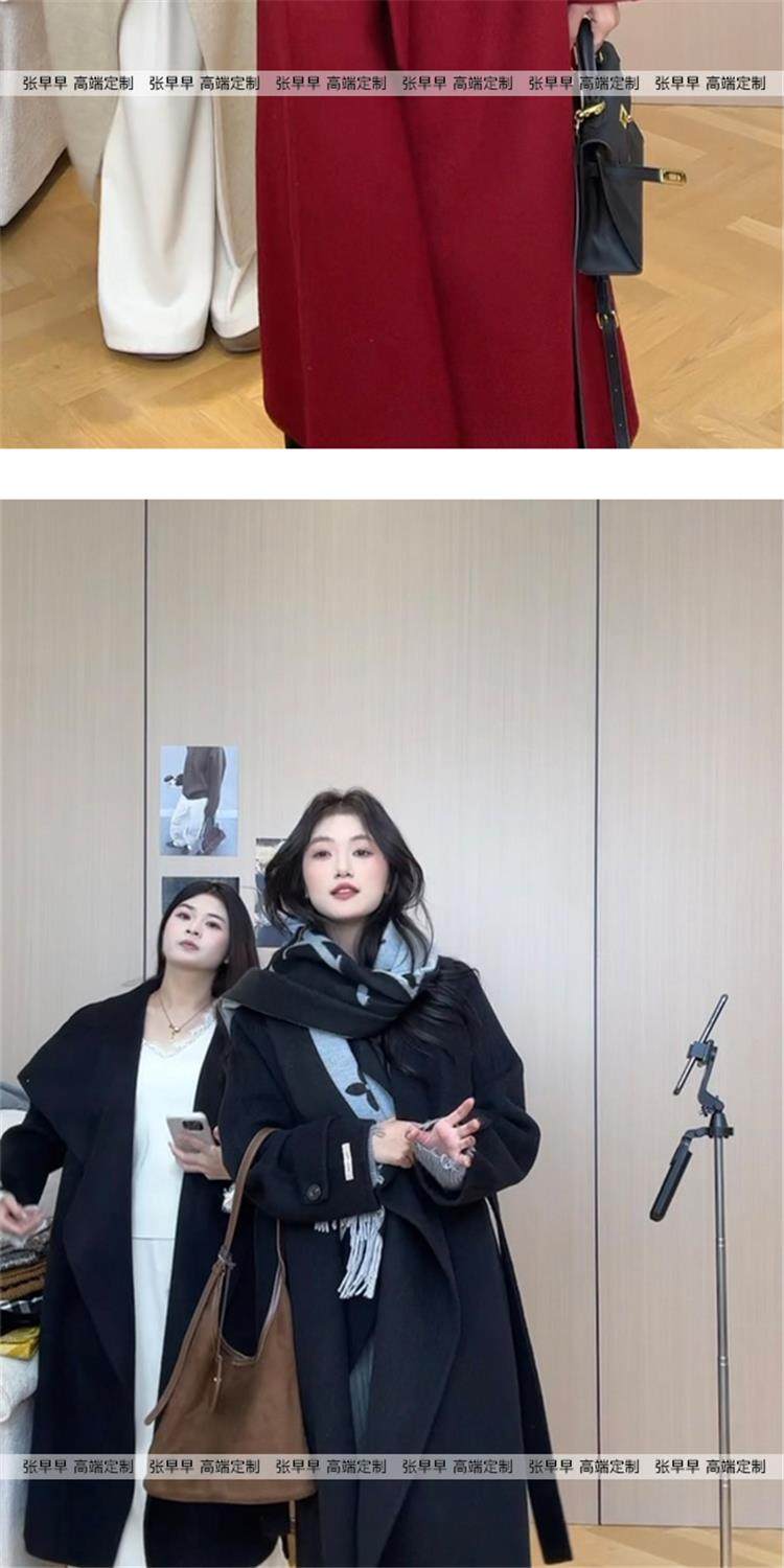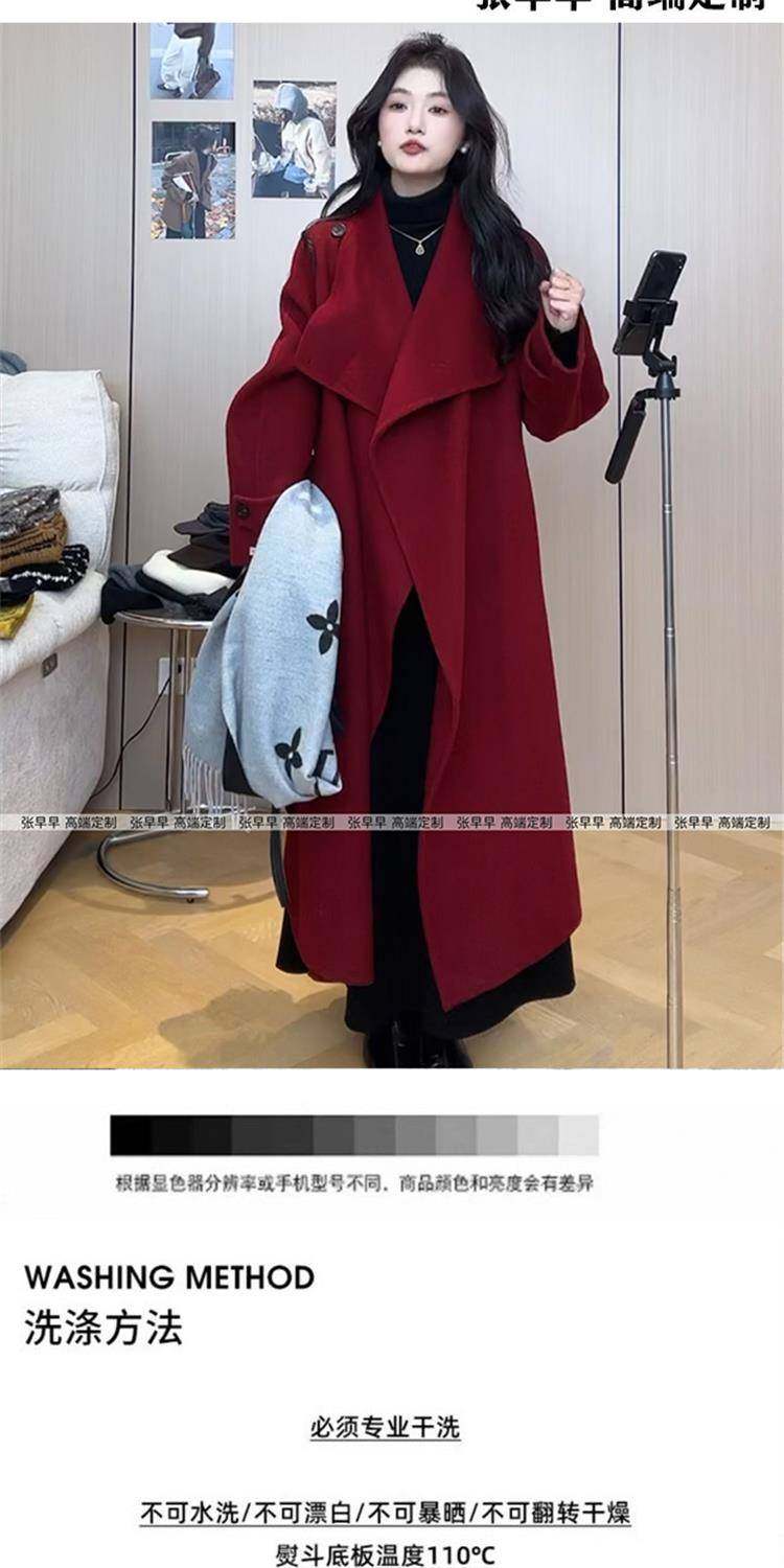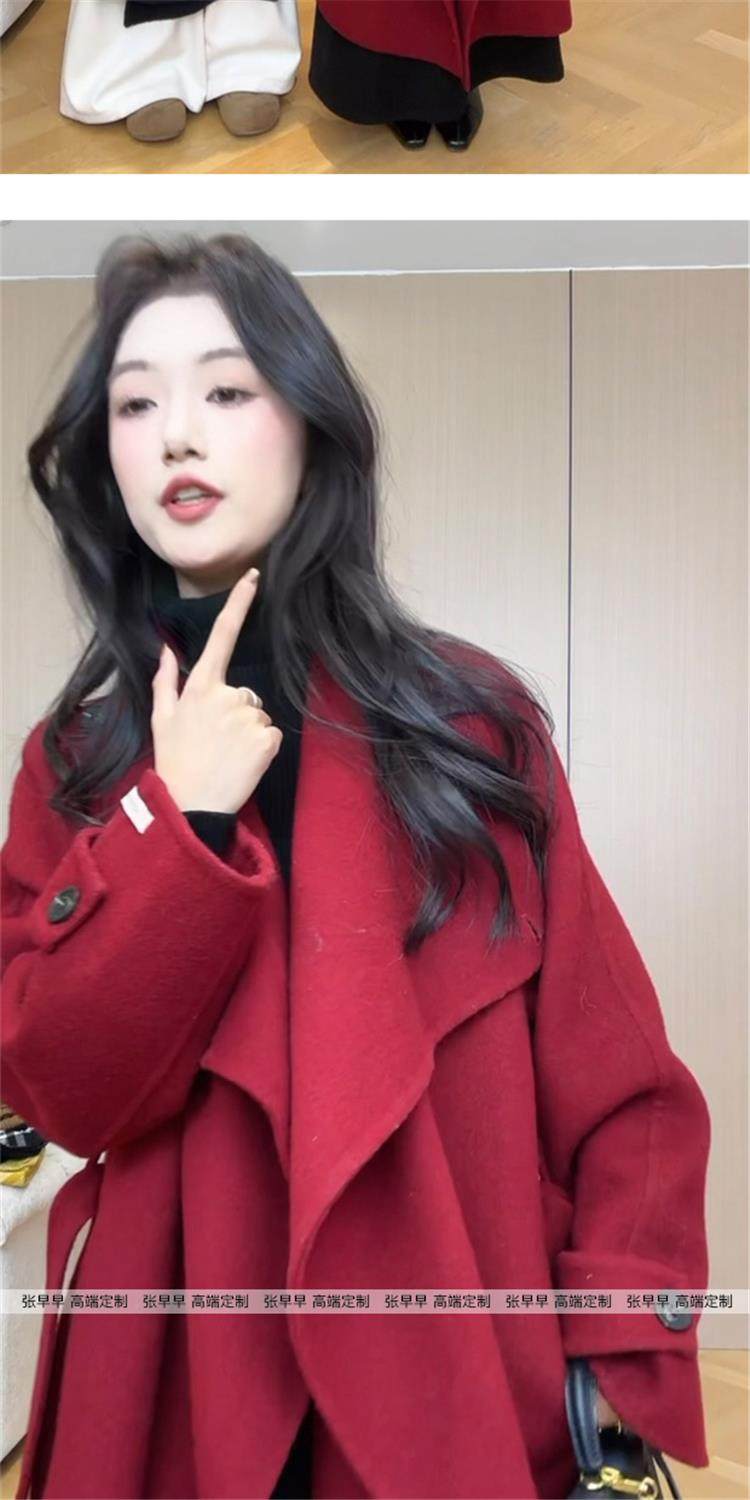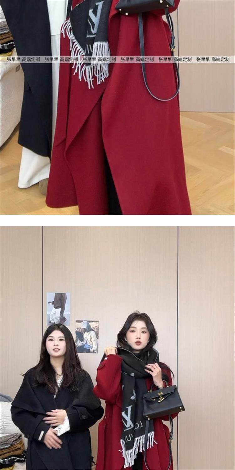 红色高级感双面羊绒大衣女2025新款长款过膝收腰气质韩系毛呢外套