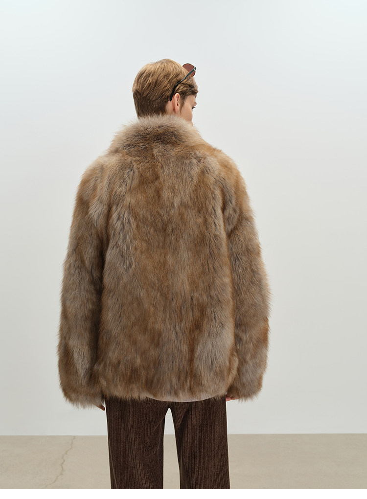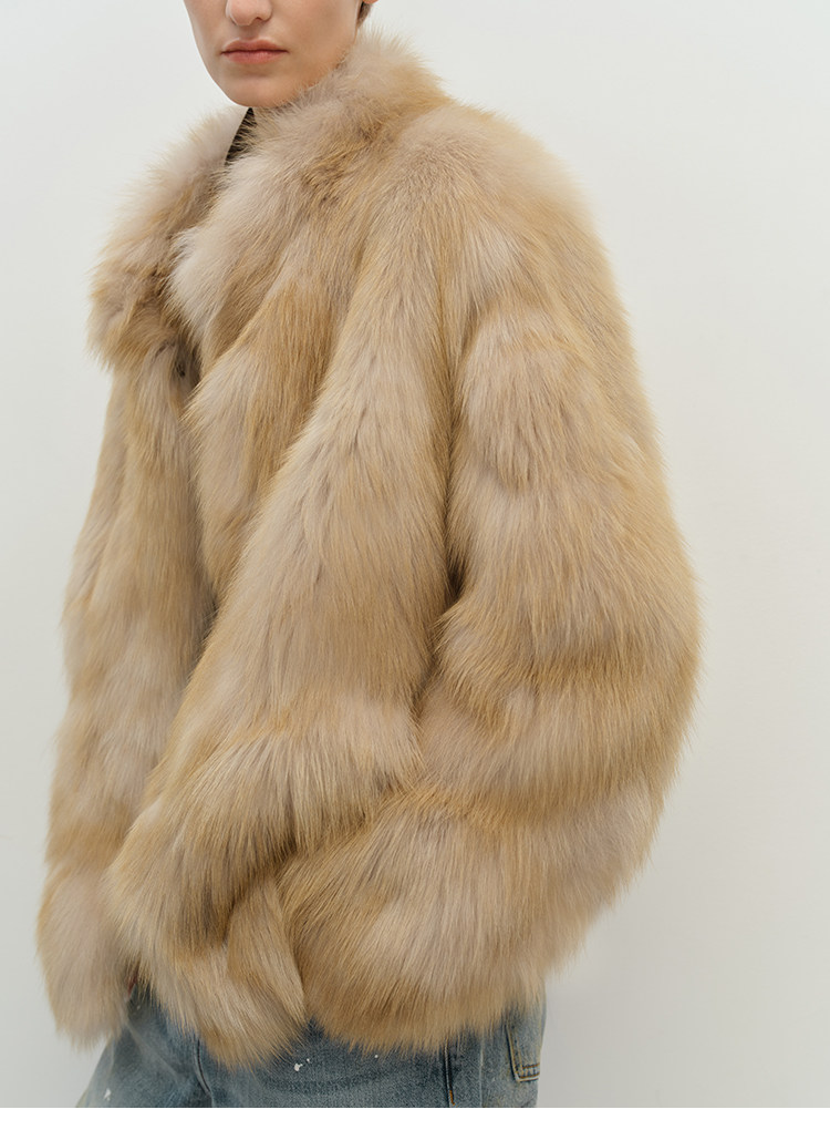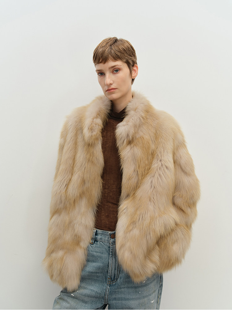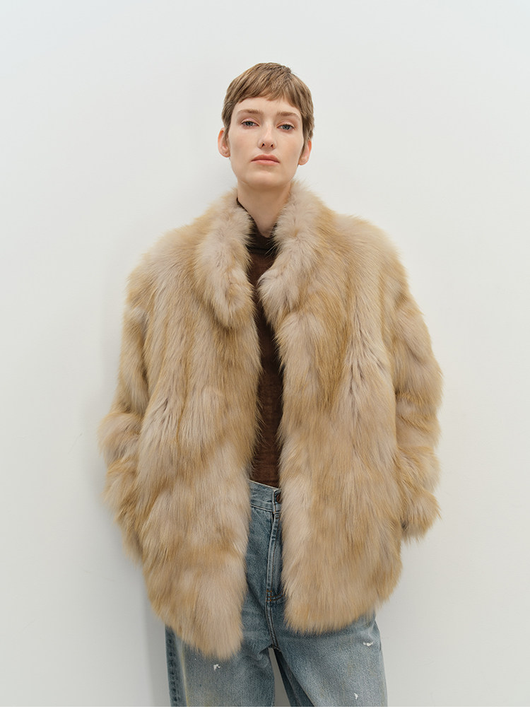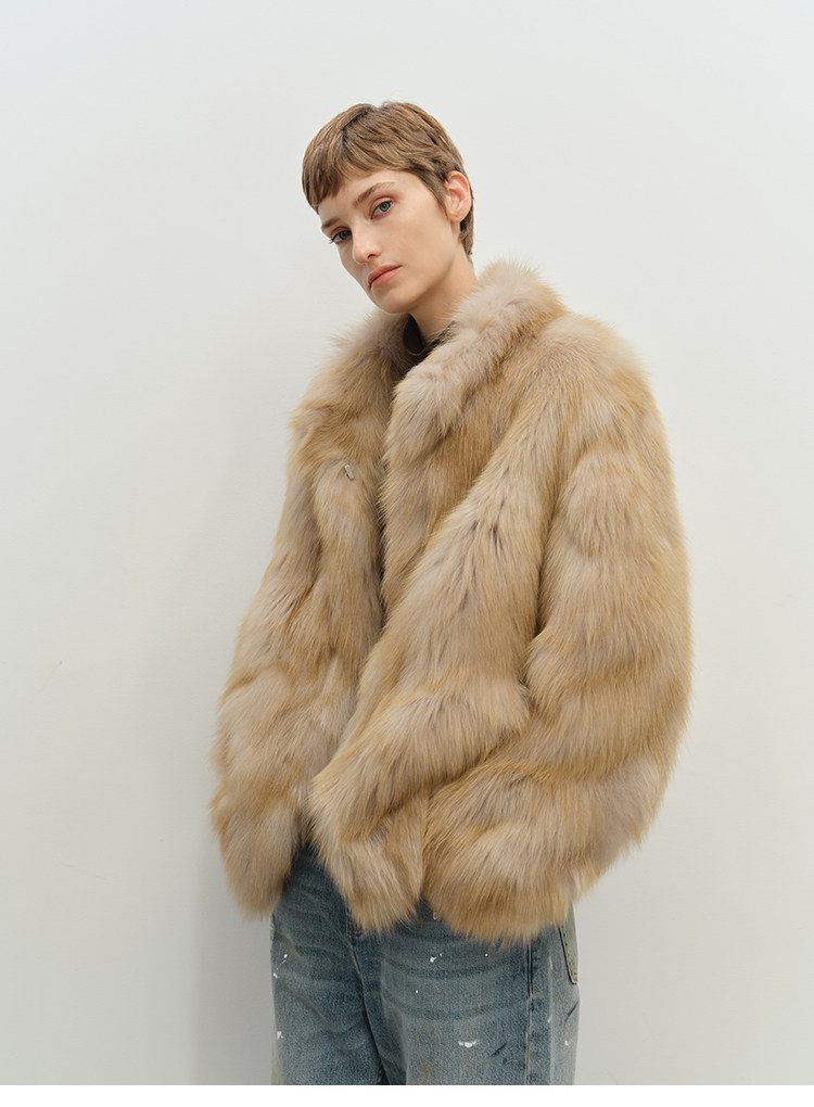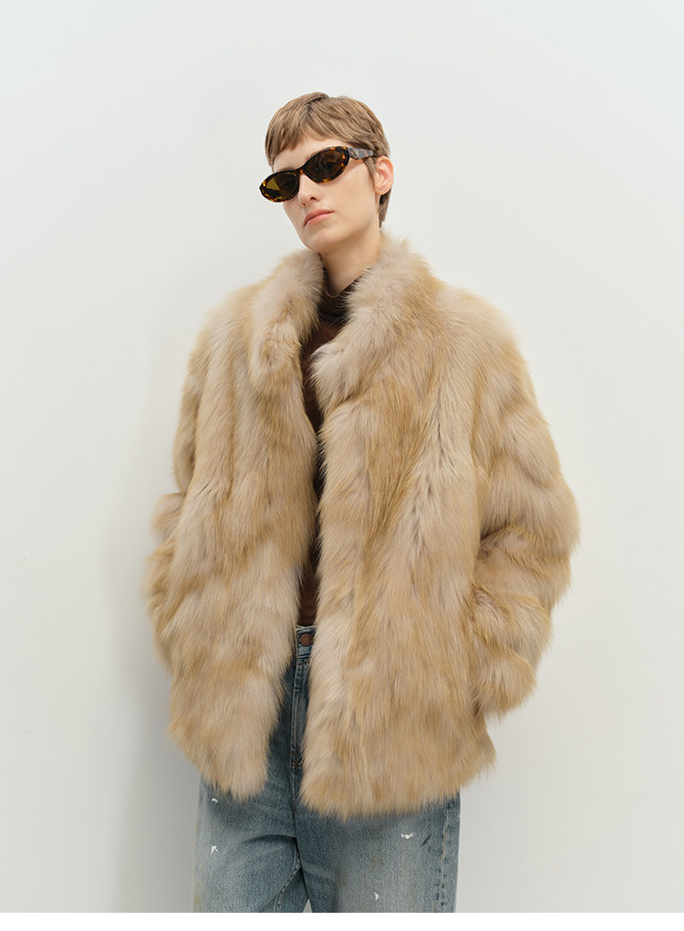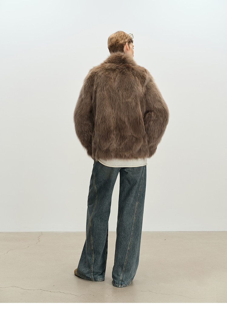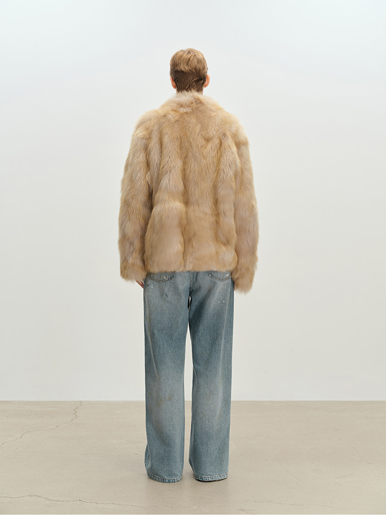 MSBEAST saga crown fox fur handmade smudge-dyed stand-collar silhouette fur jacket丨Hazy Wonderful Idea