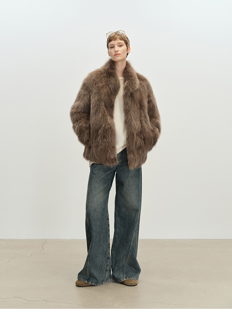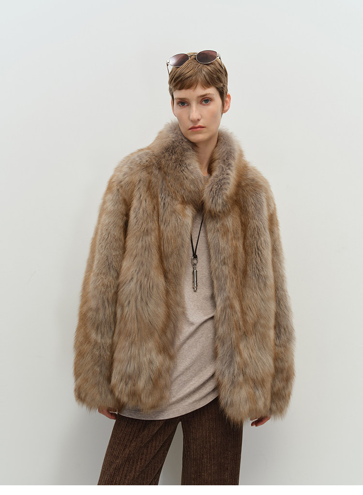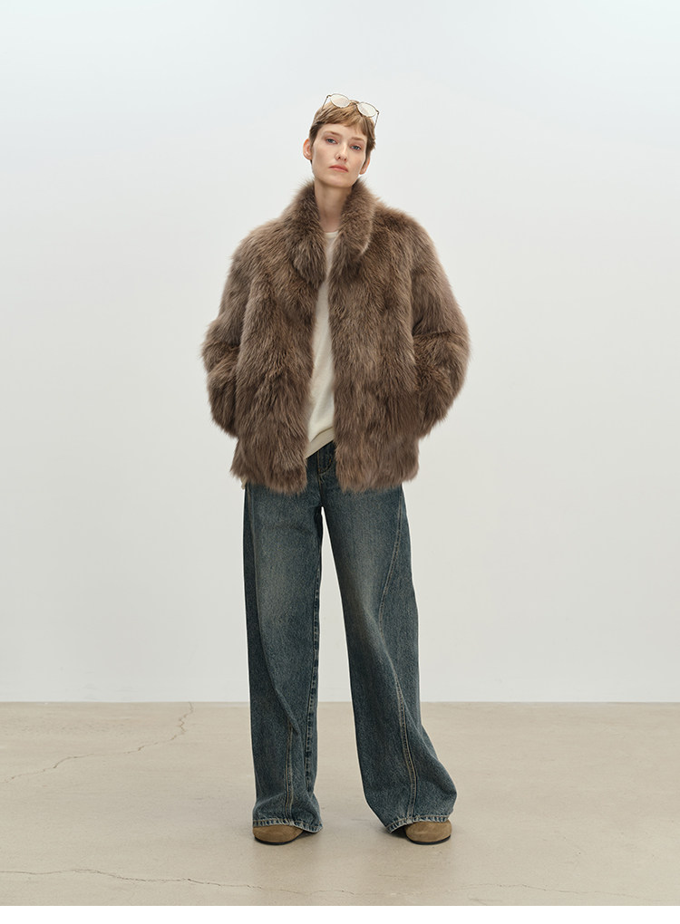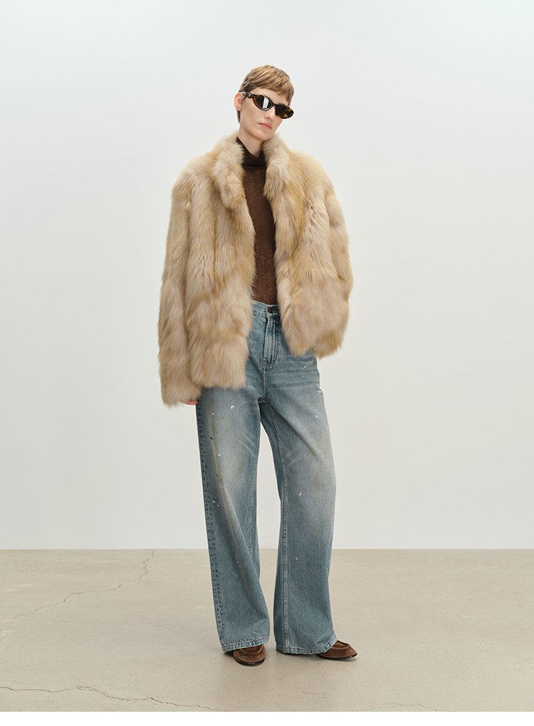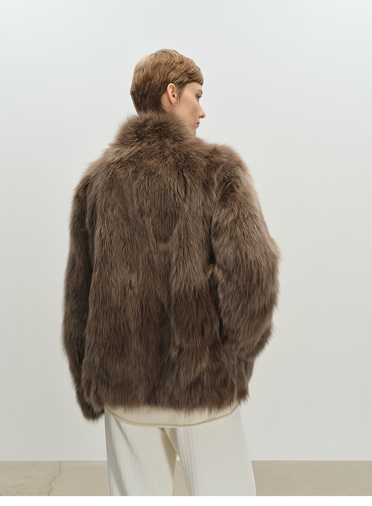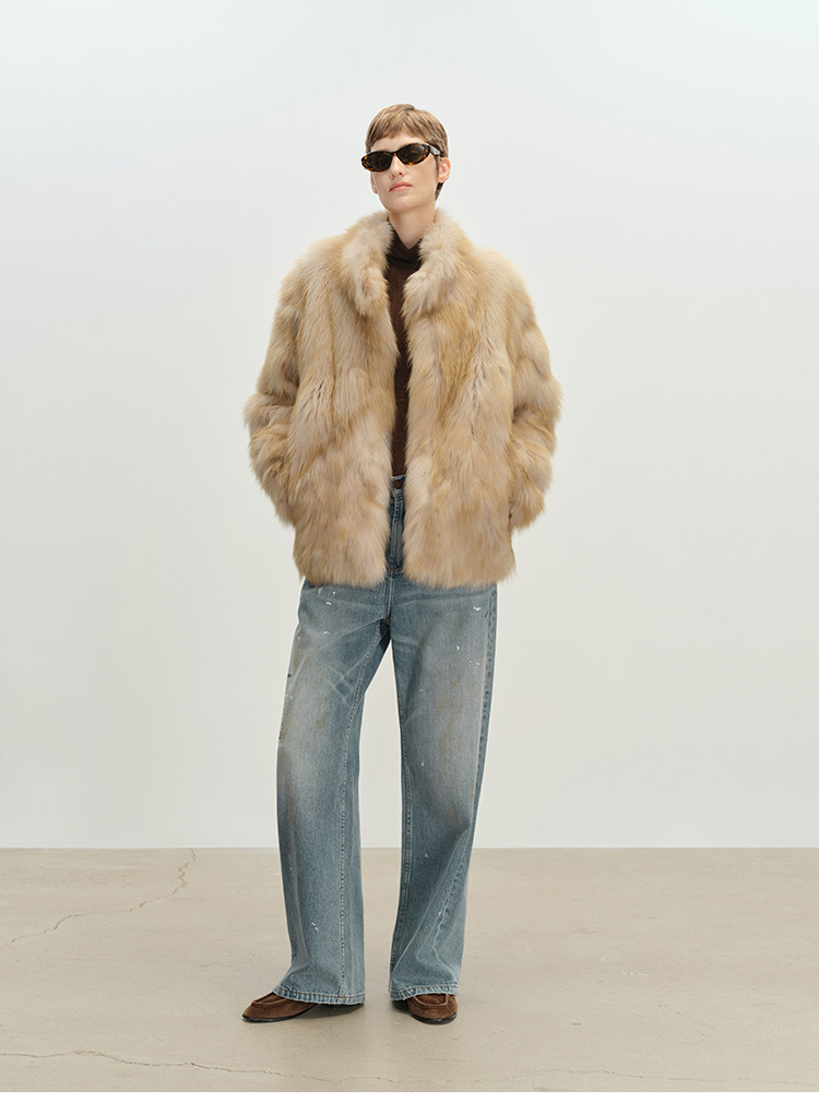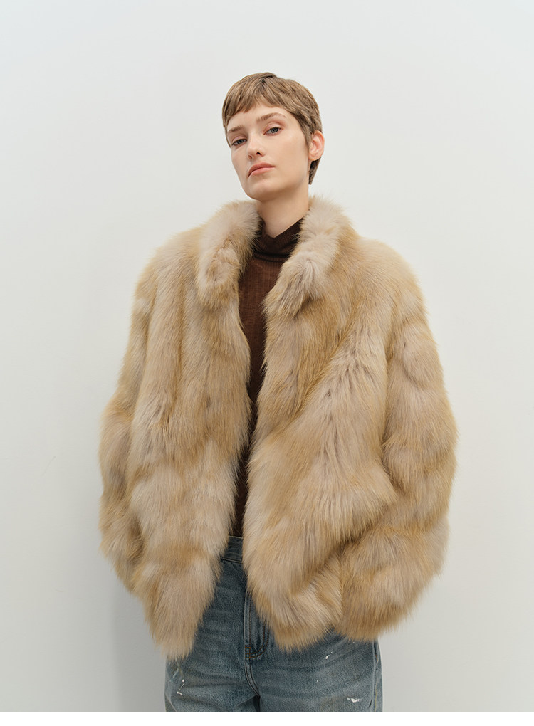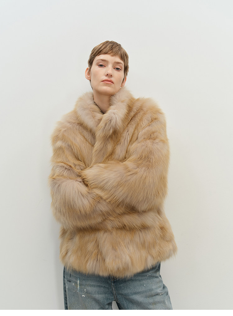 MSBEAST saga crown fox fur handmade smudge-dyed stand-collar silhouette fur jacket丨Hazy Wonderful Idea