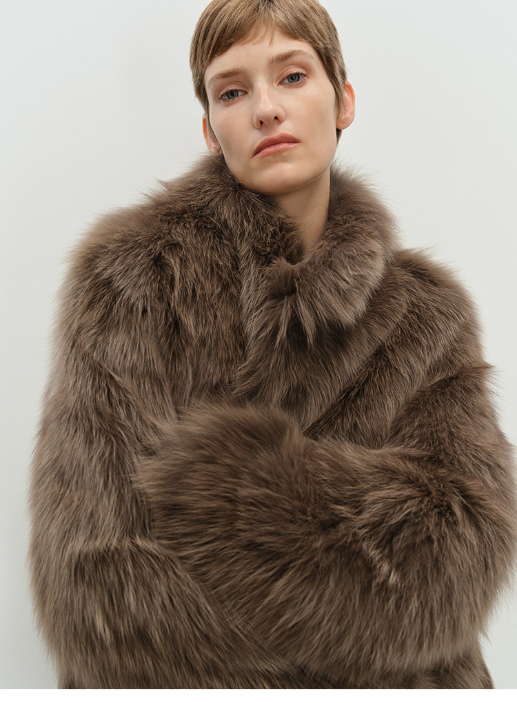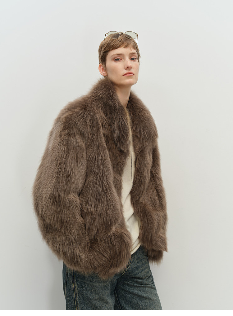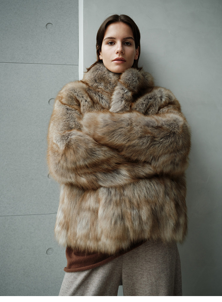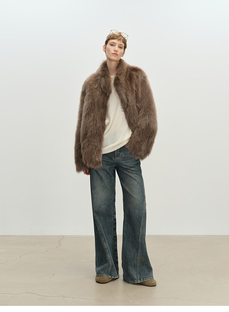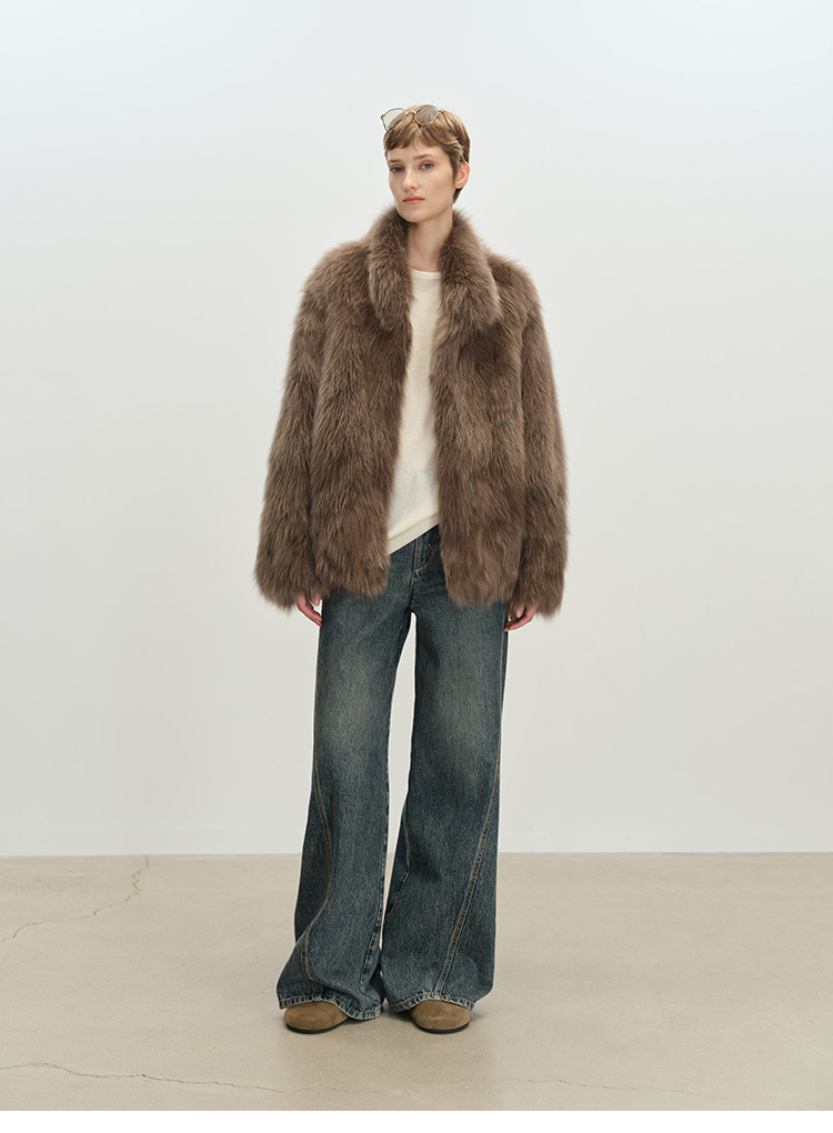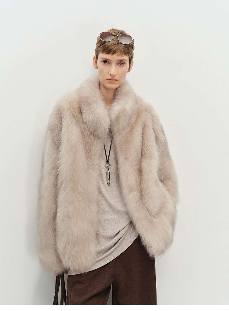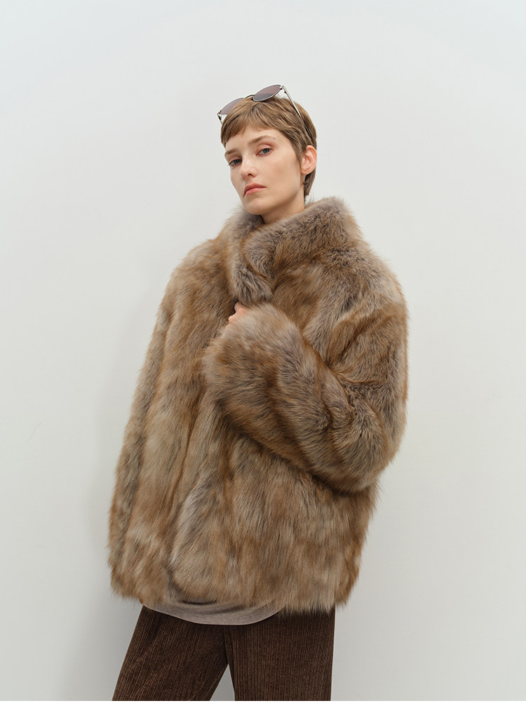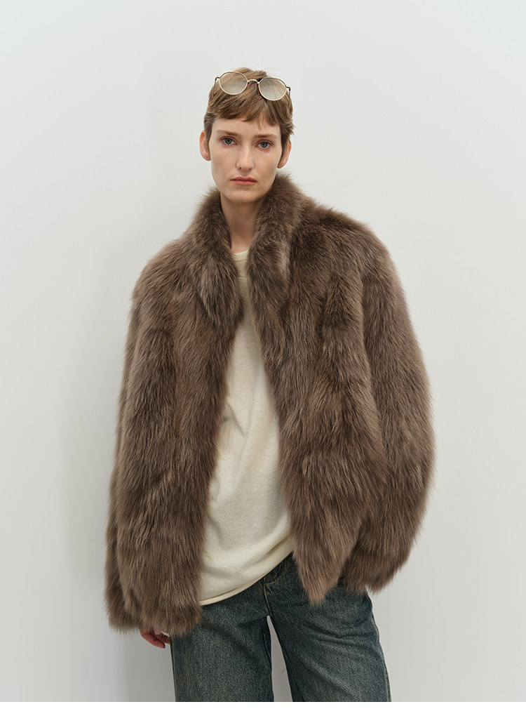 MSBEAST saga crown fox fur handmade smudge-dyed stand-collar silhouette fur jacket丨Hazy Wonderful Idea