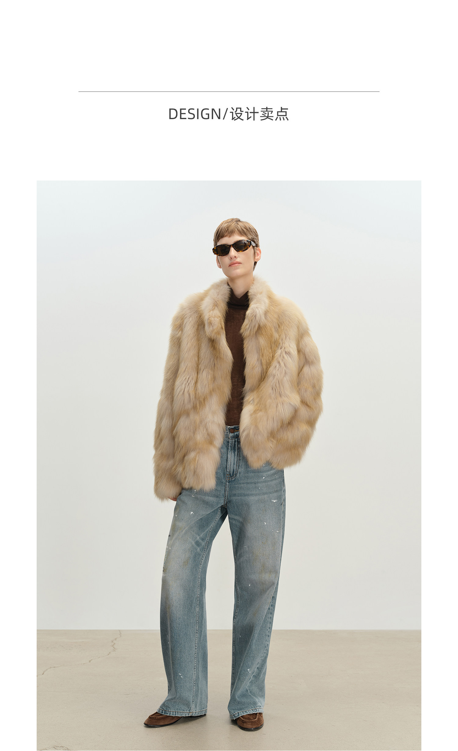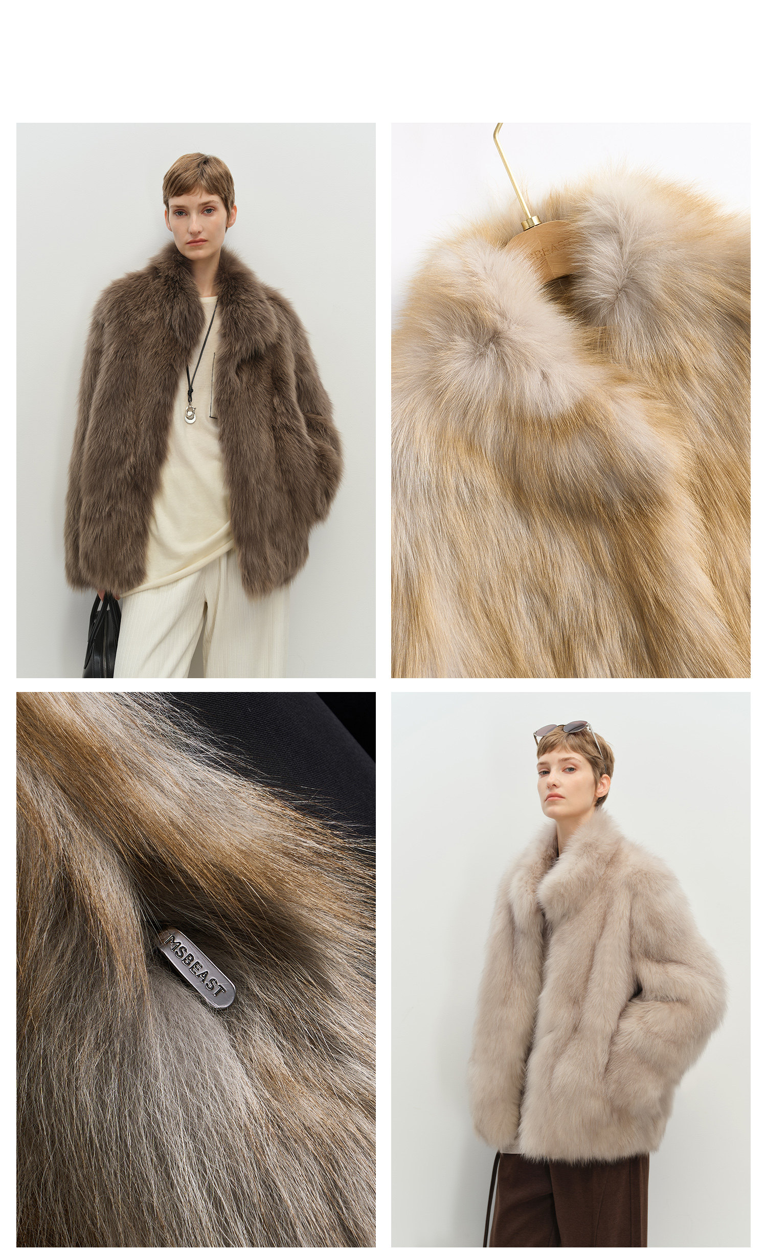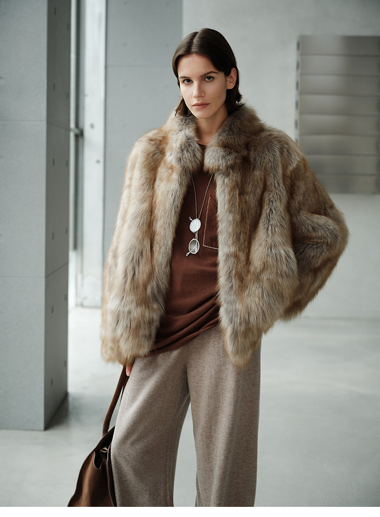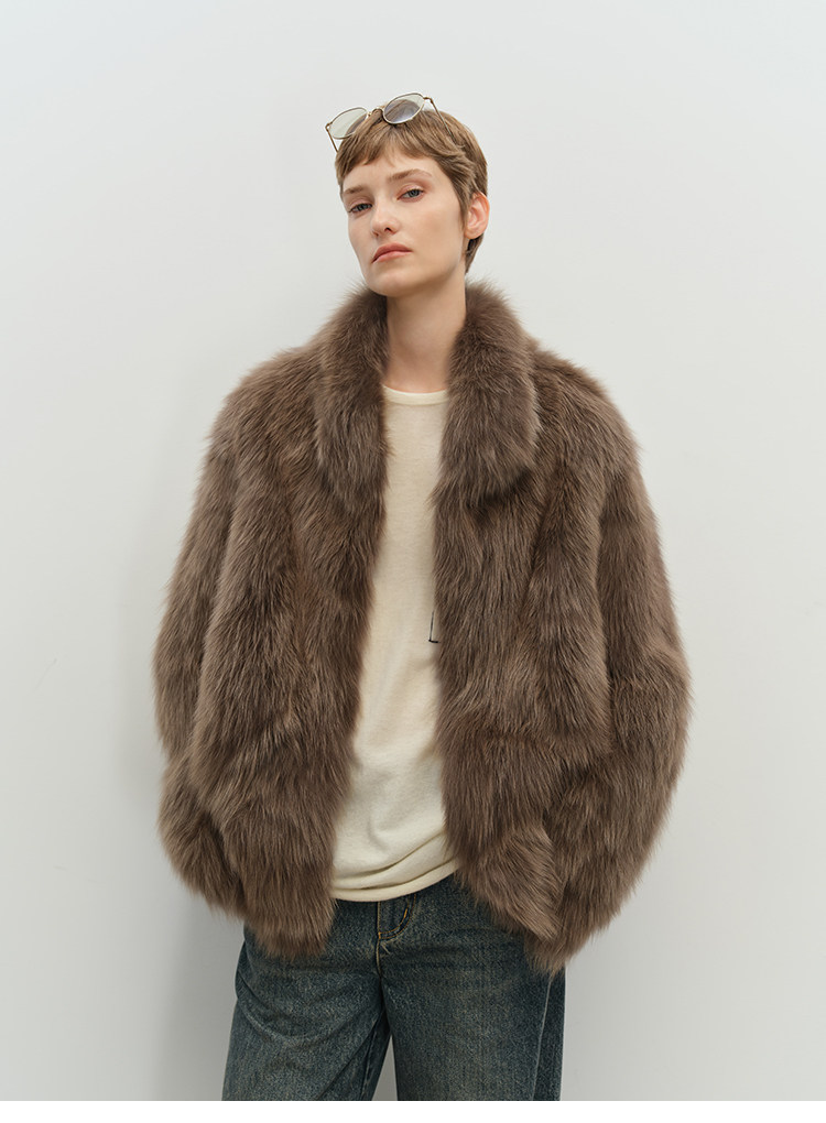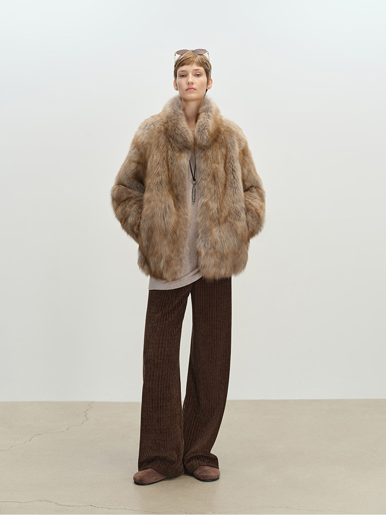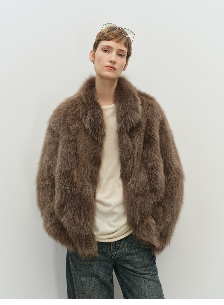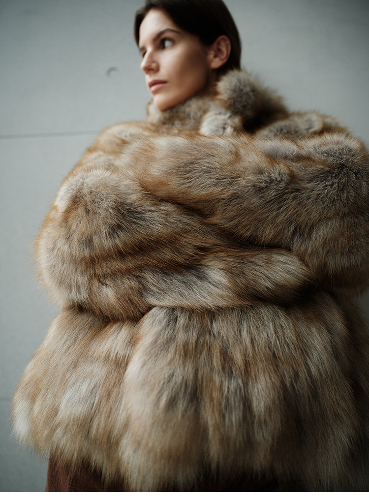 MSBEAST saga crown fox fur handmade smudge-dyed stand-collar silhouette fur jacket丨Hazy Wonderful Idea
