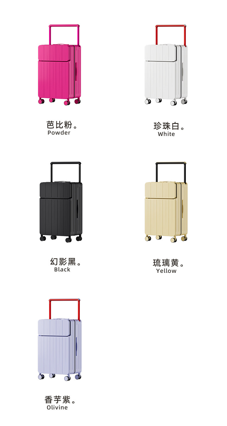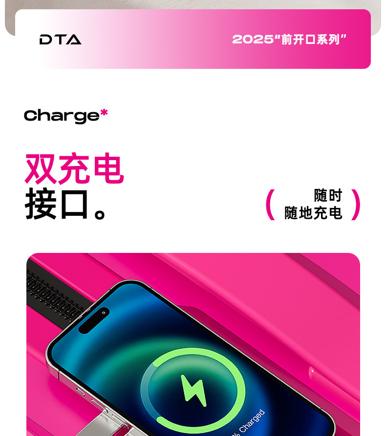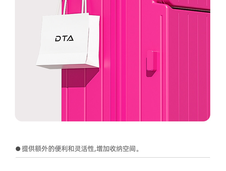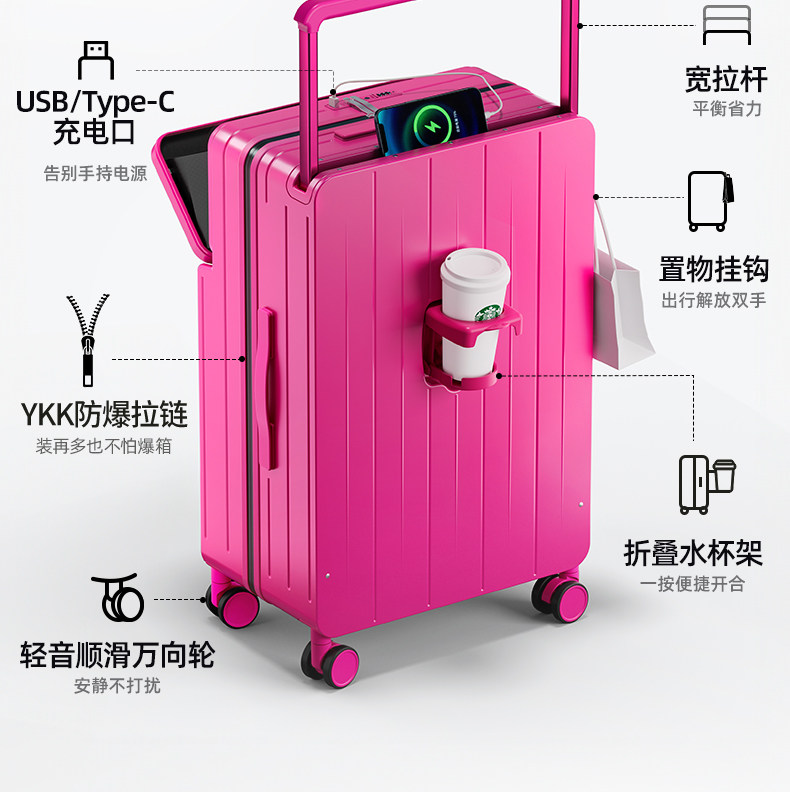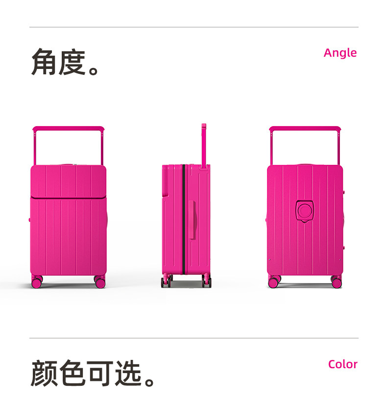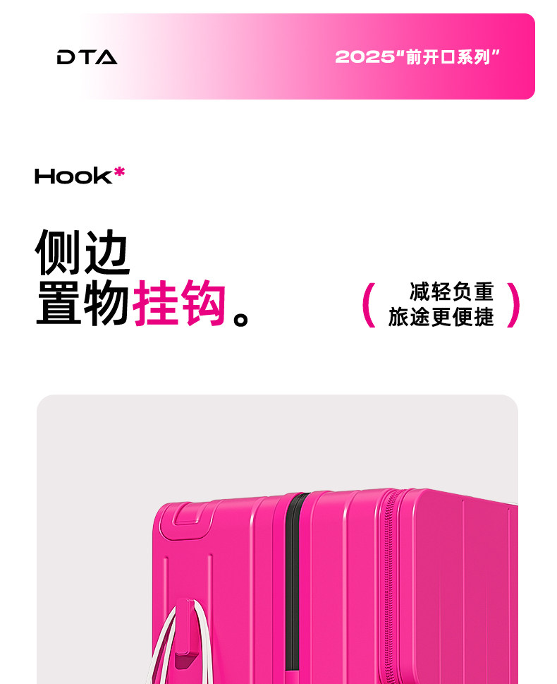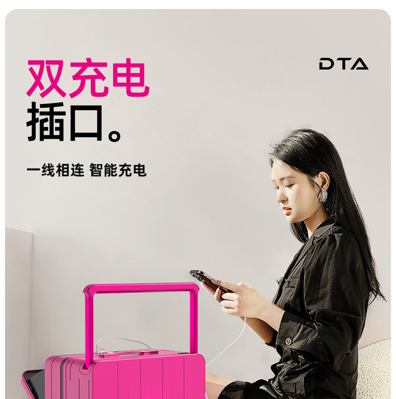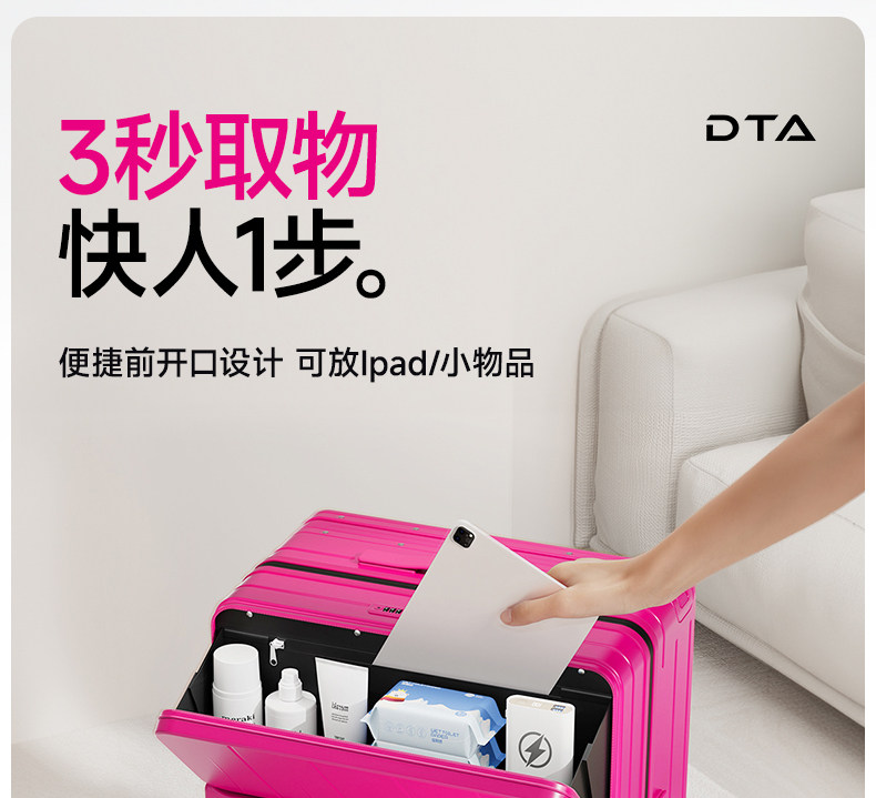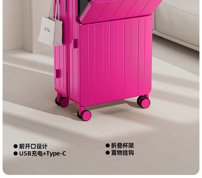 DTA front opening suitcase for women 2025 new multi-functional 20-inch boarding box wide pull rod pink suitcase