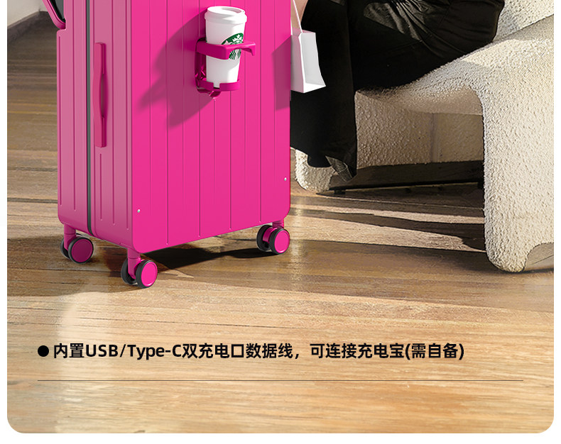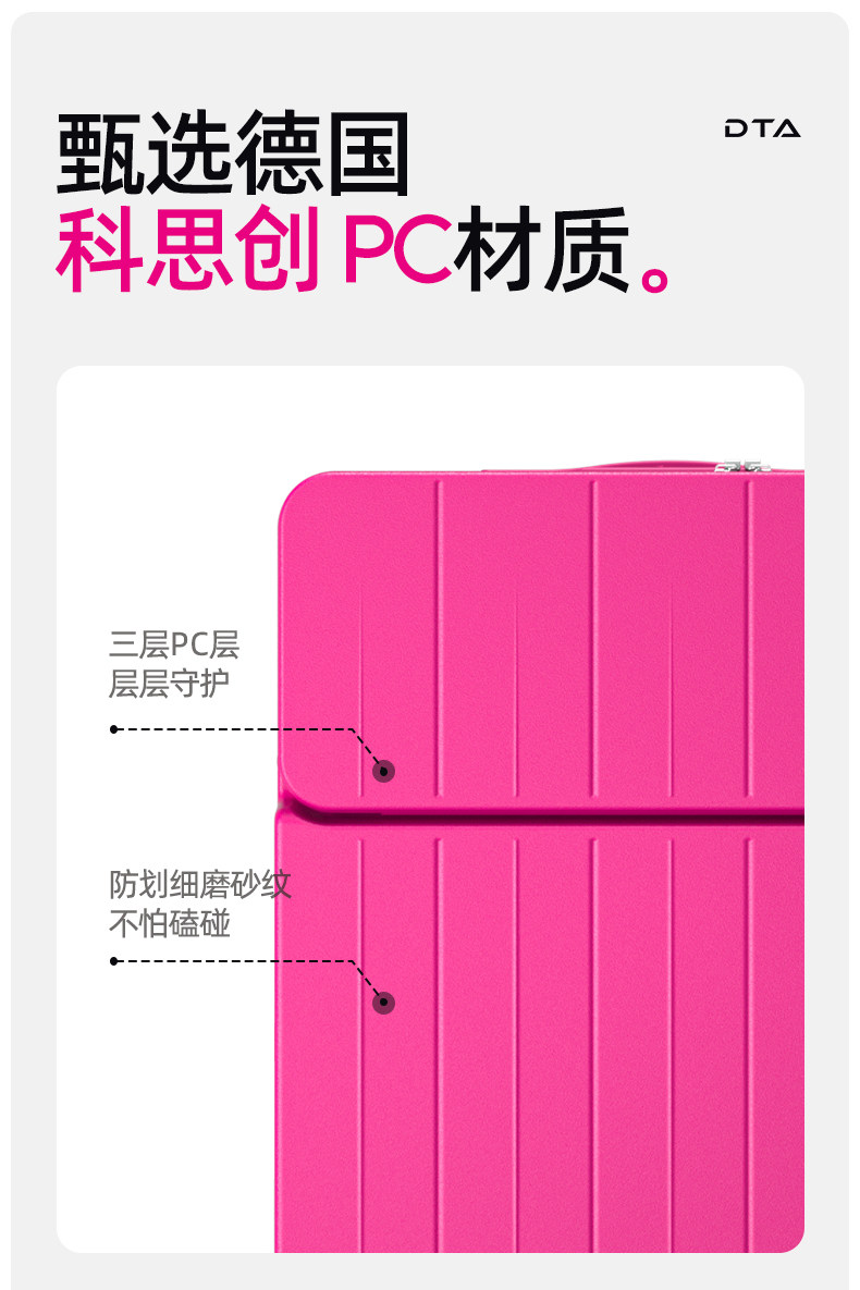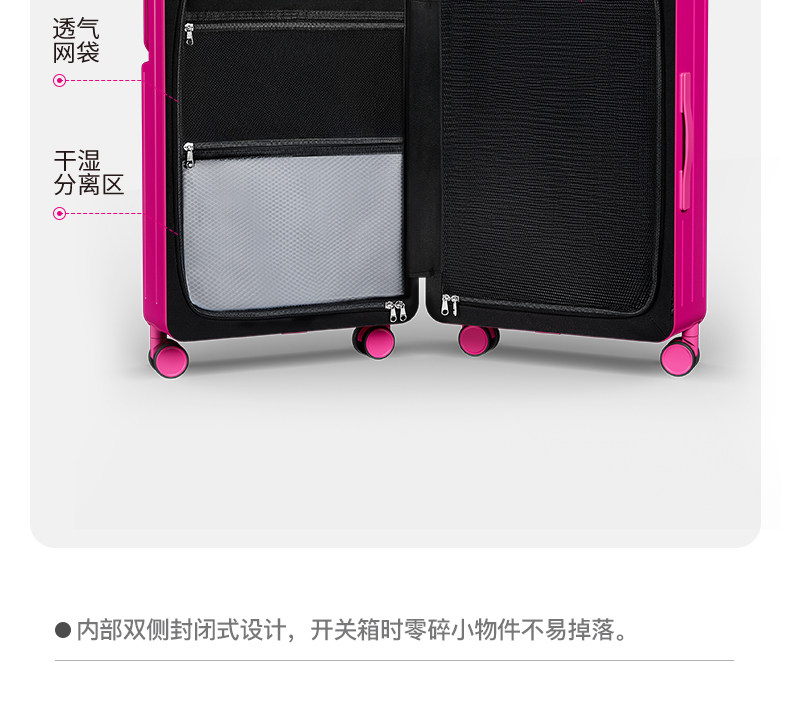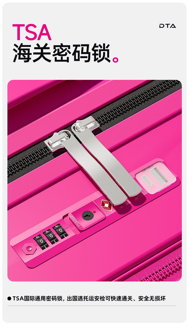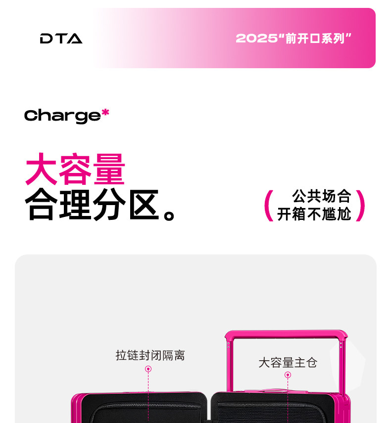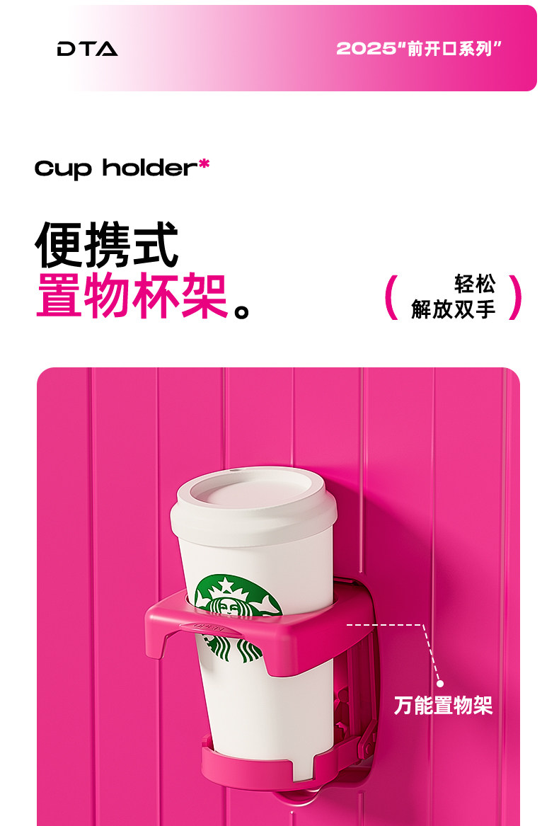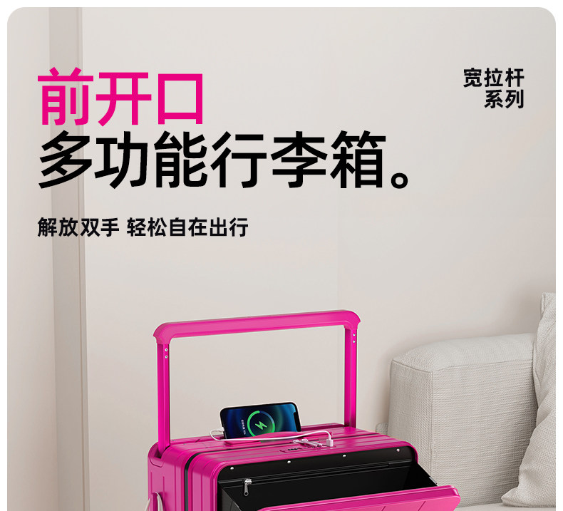DTA front opening suitcase for women 2025 new multi-functional 20-inch boarding box wide pull rod pink suitcase