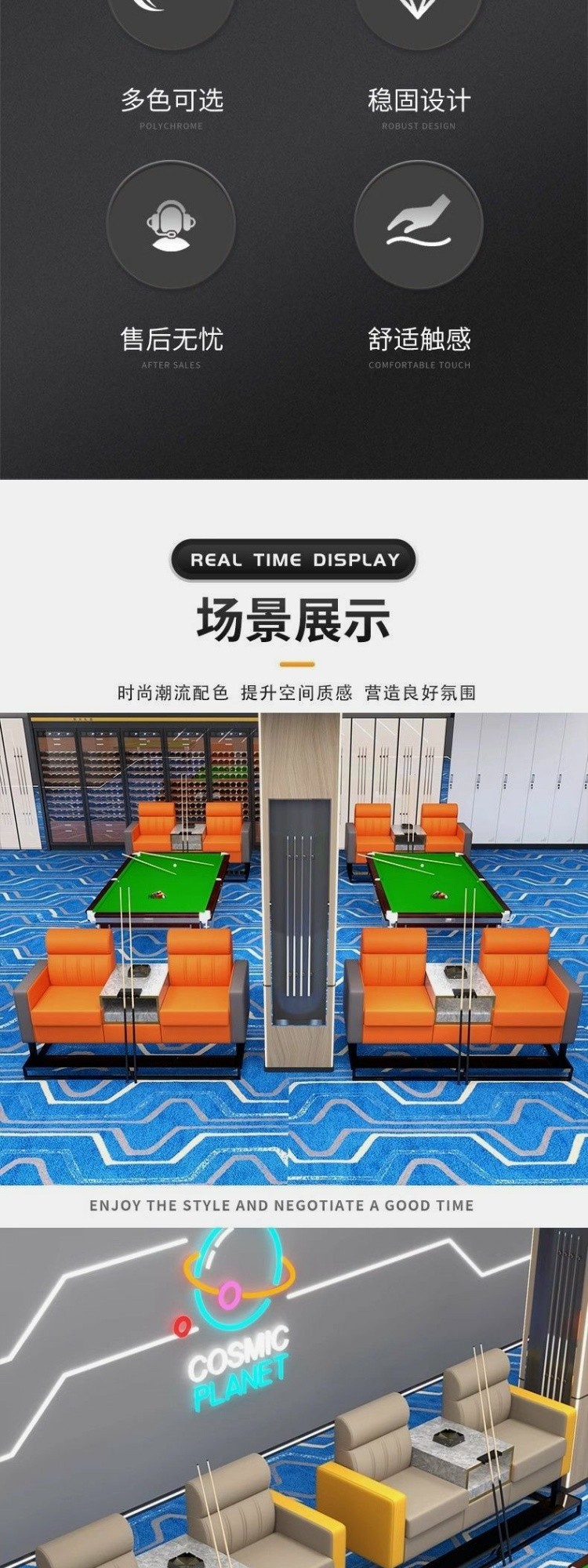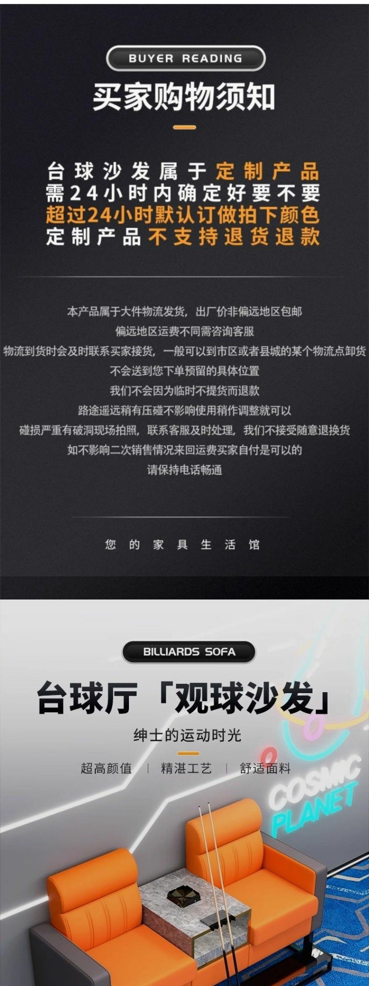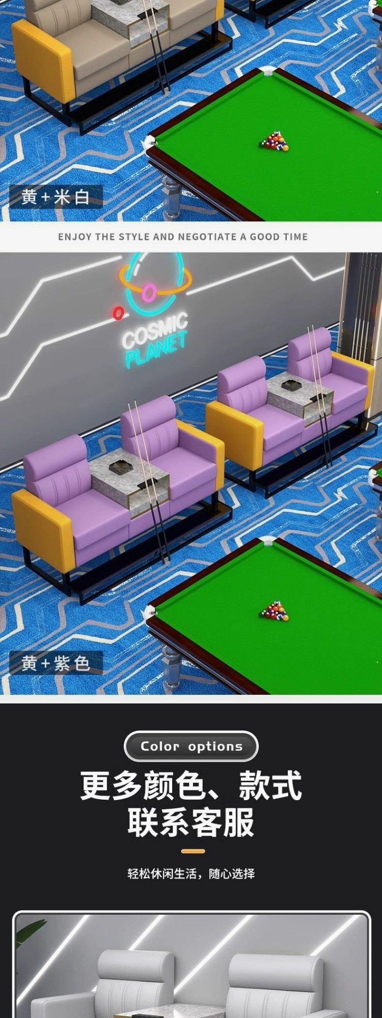 Combinaison canapé, table et chaise de billard, chaise de visualisation, salle de billard dédiée, siège de repos haut de gamme pour deux ou trois personnes