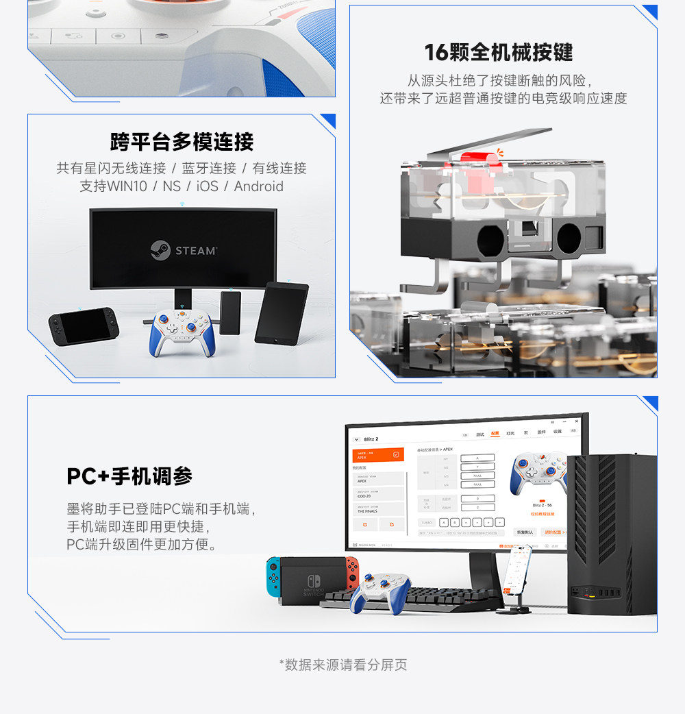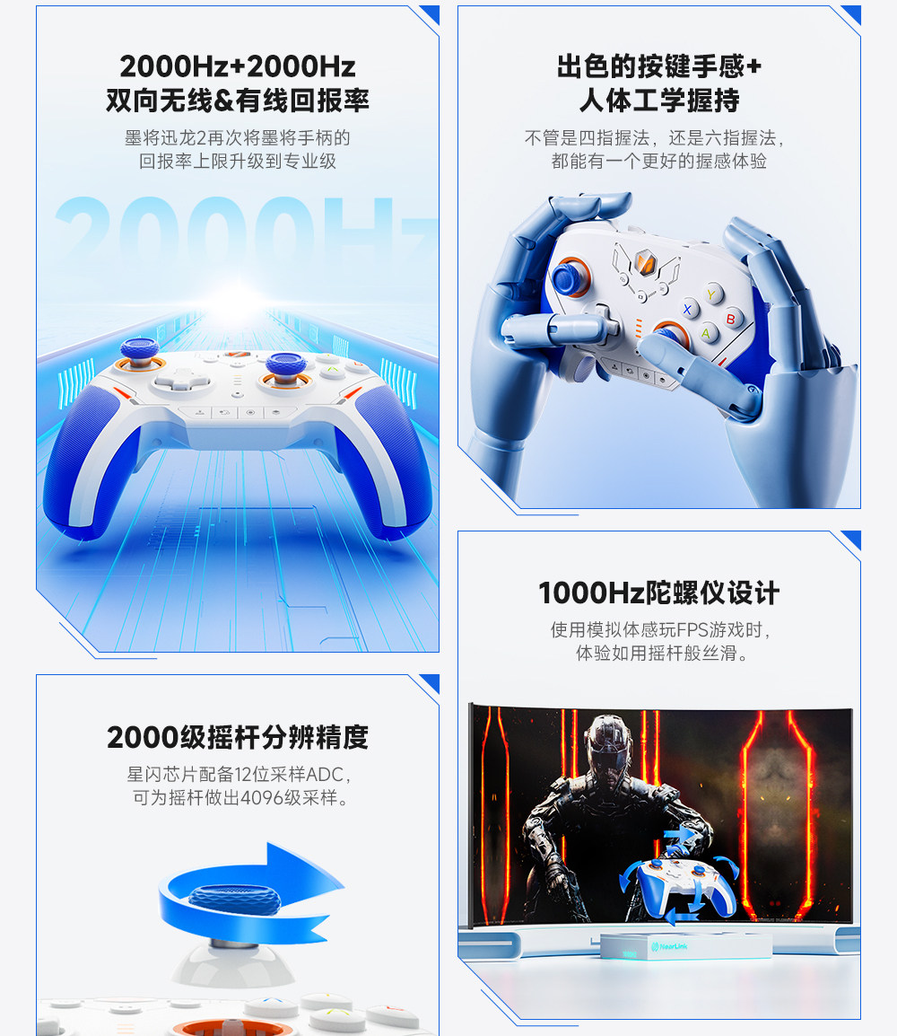 Mojiang Xunlong 2 Controlador de juego PC Versión de computadora Elite FPS Controlador Star Flash Steam Black Myth Wukong Botón mecánico APEX Inalámbrico Bluetooth 1000Hz Somatosensorial Valorant