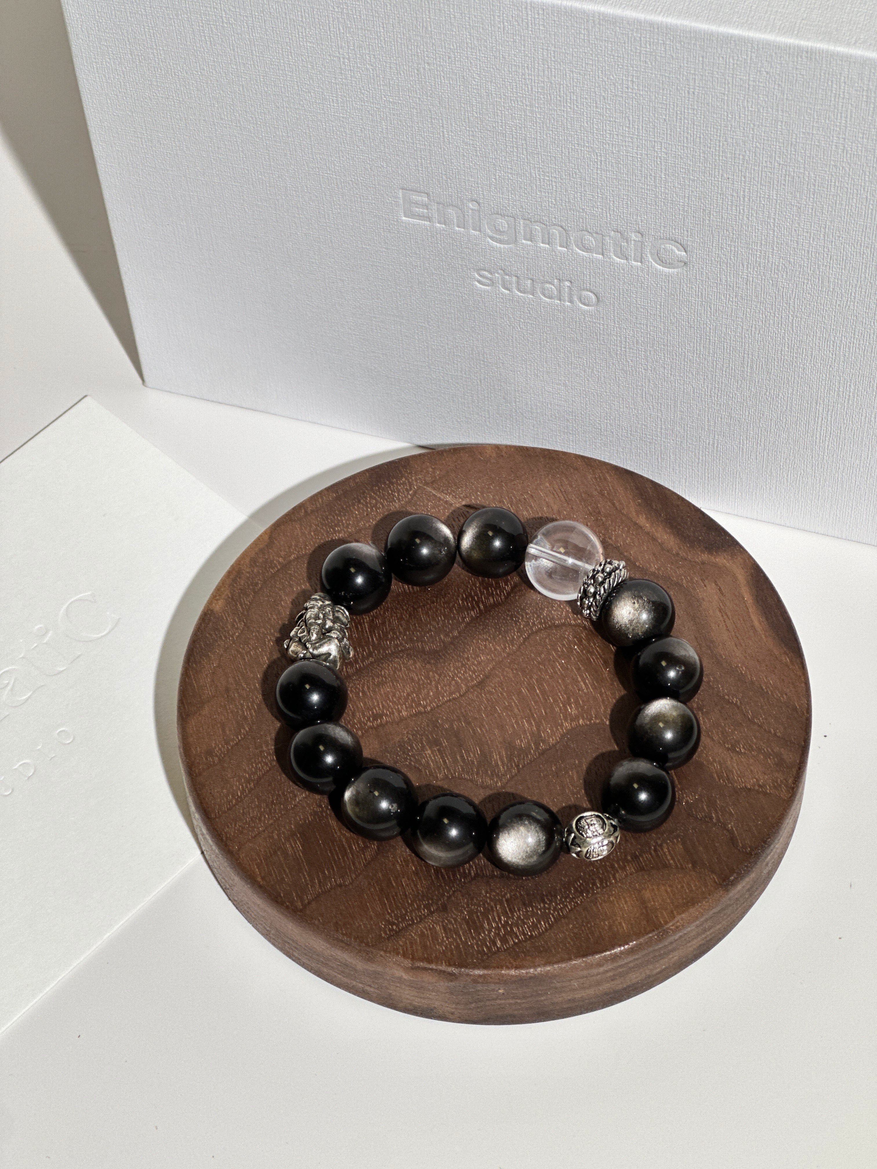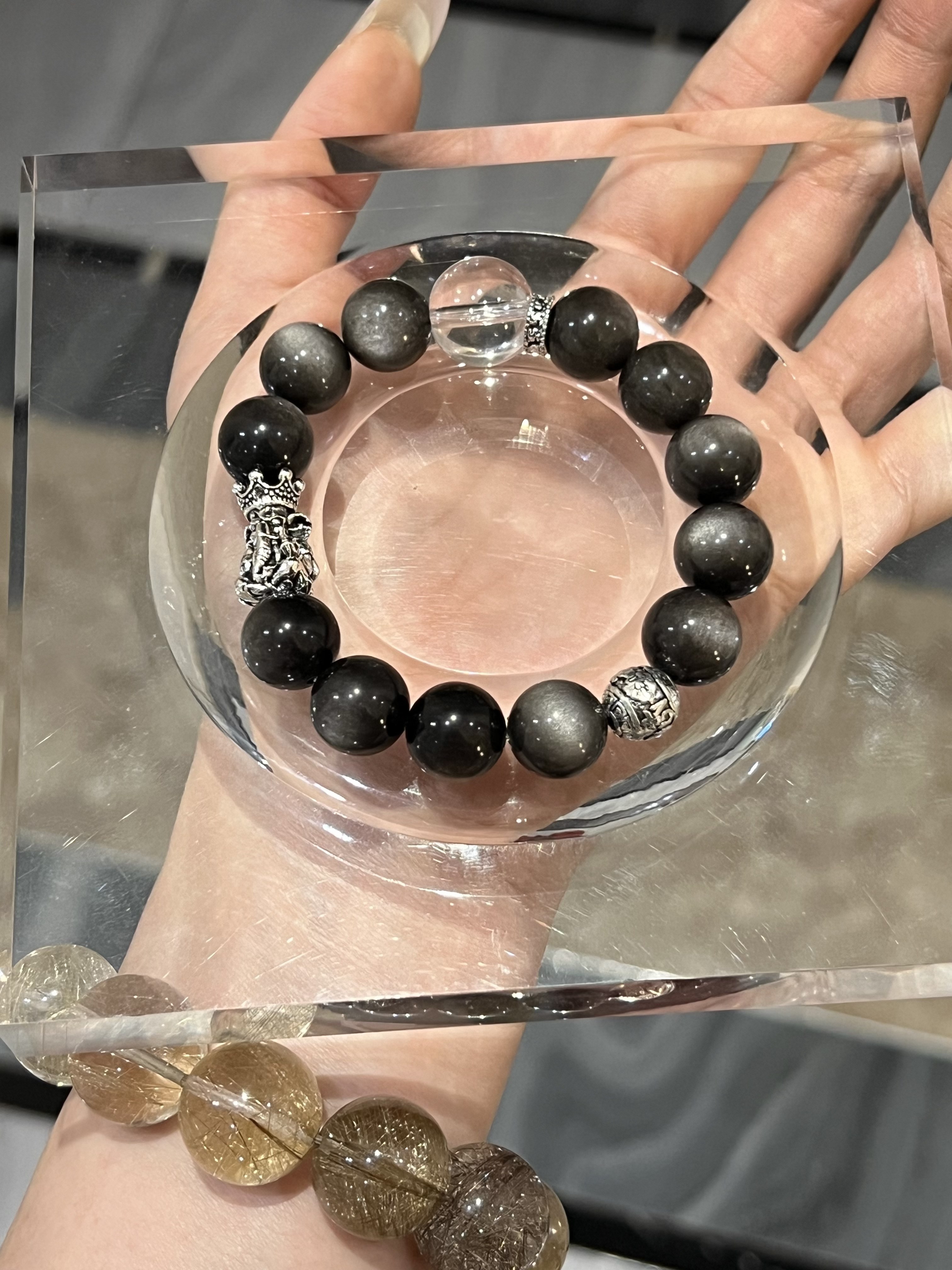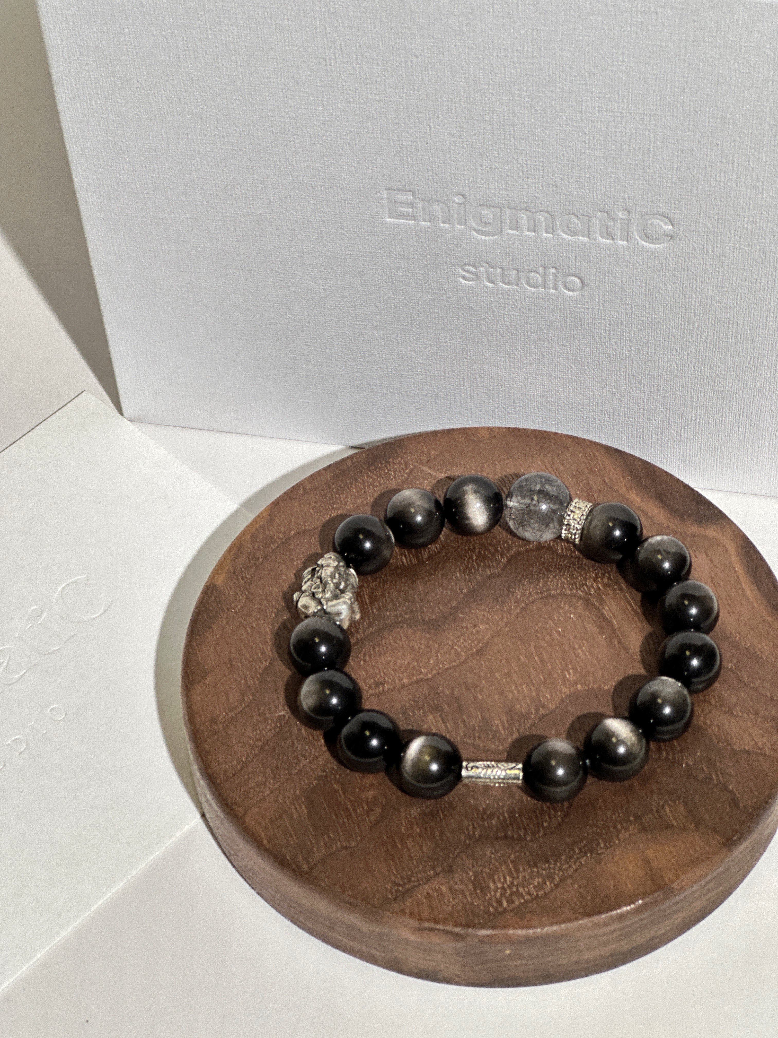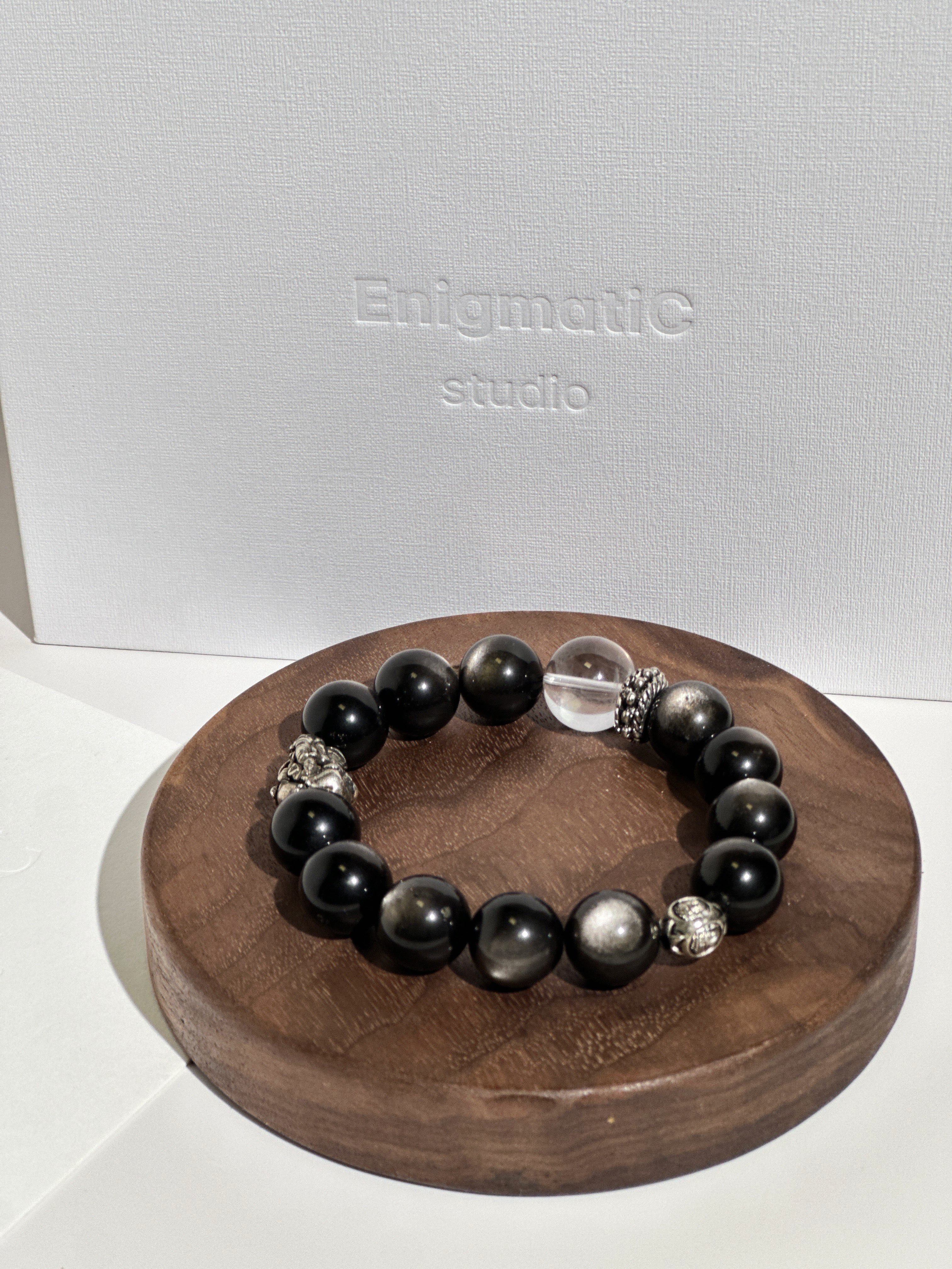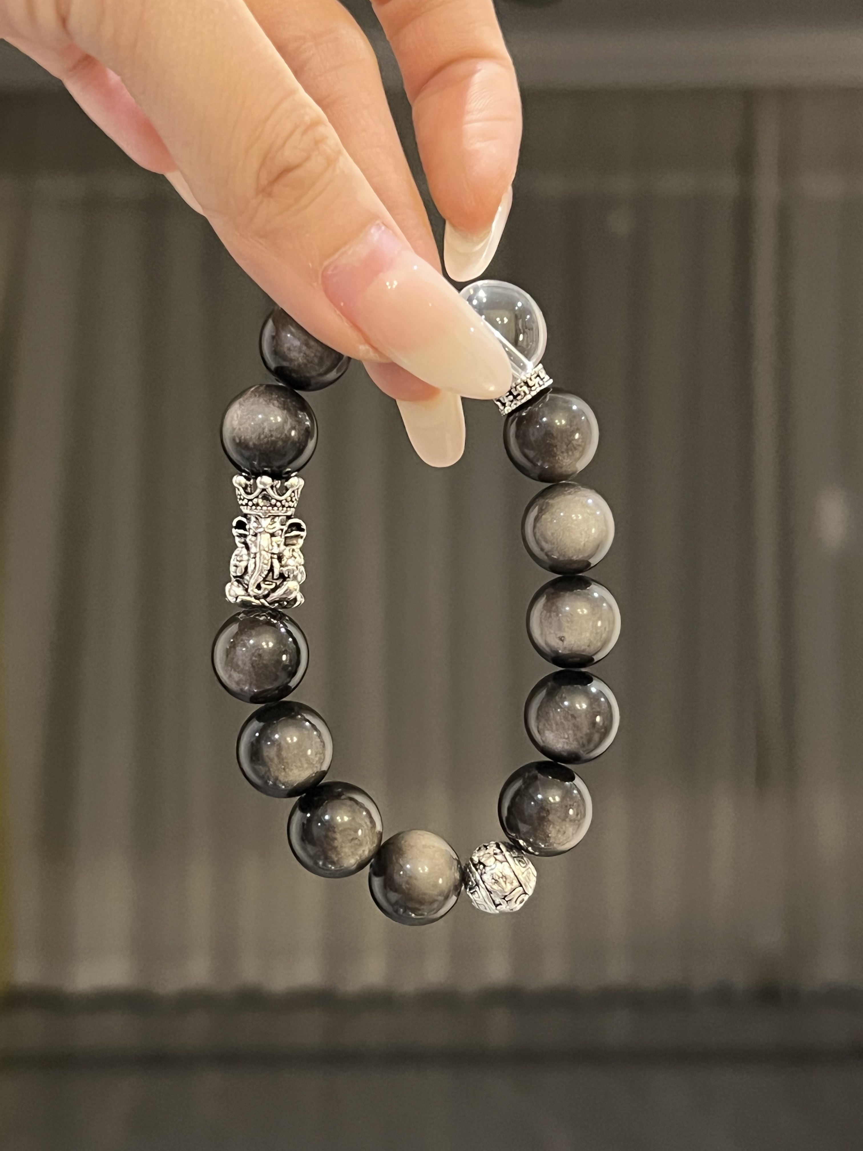 「摩诃摩耶」好运补给天然黑曜石白水晶新年送男友情侣手串本命年