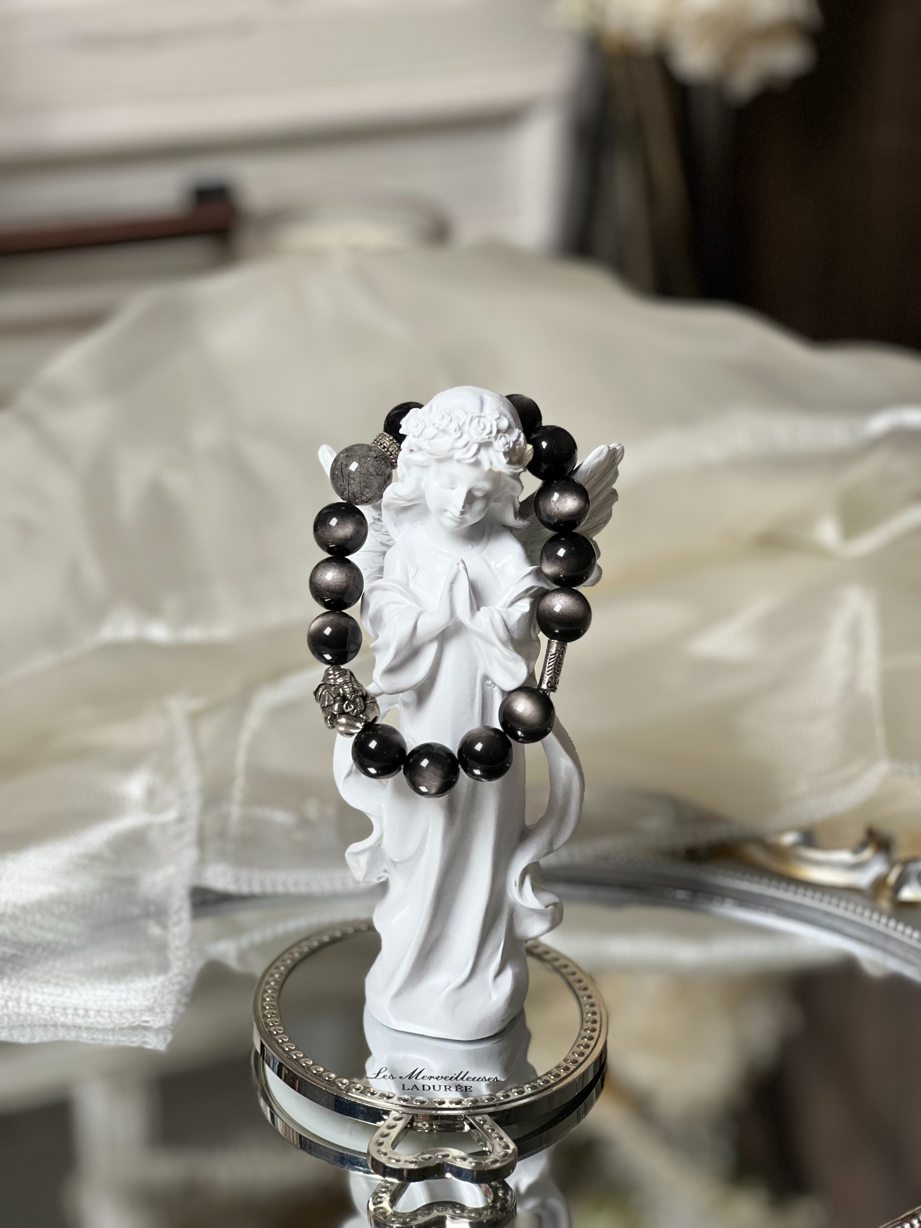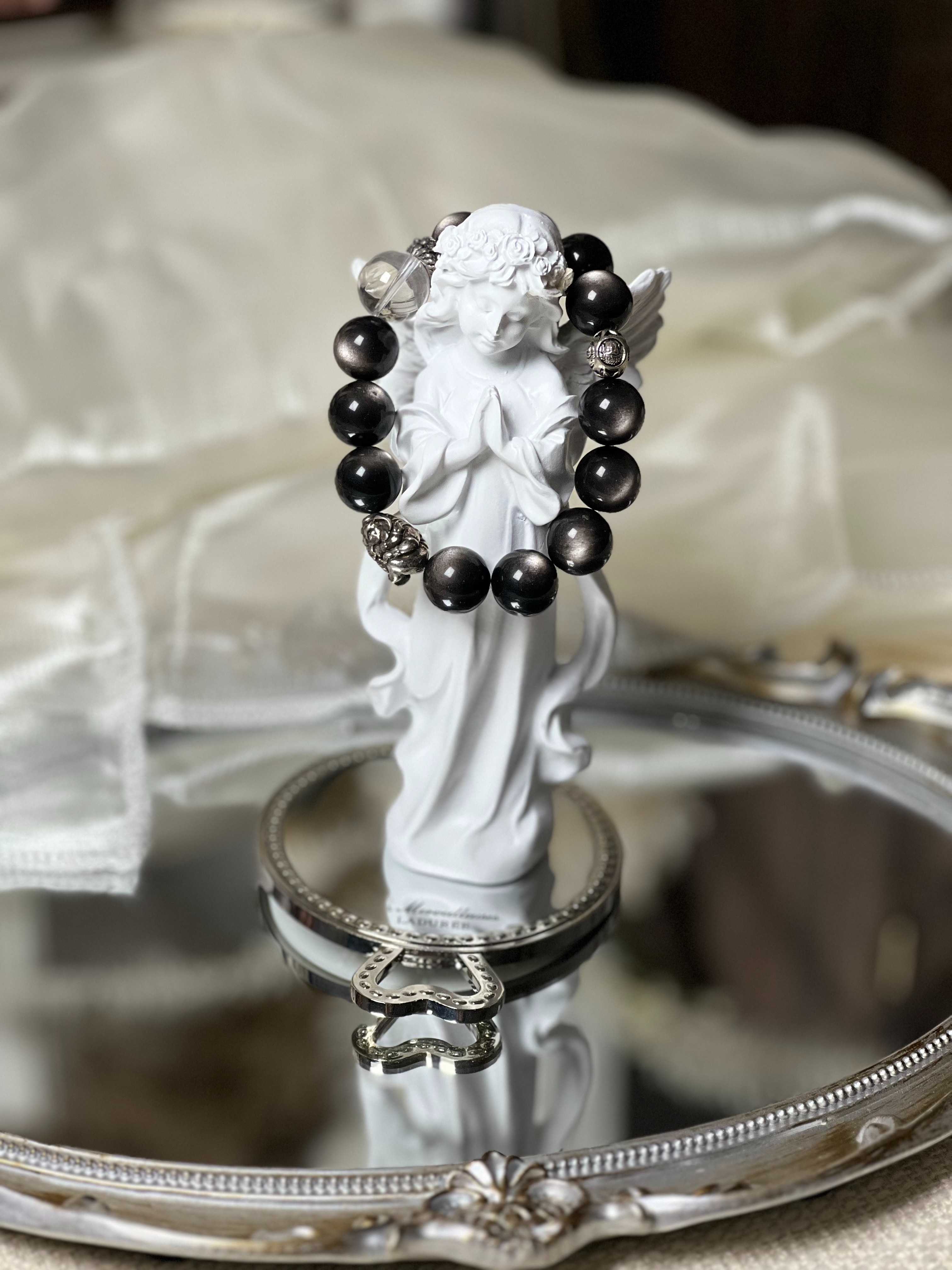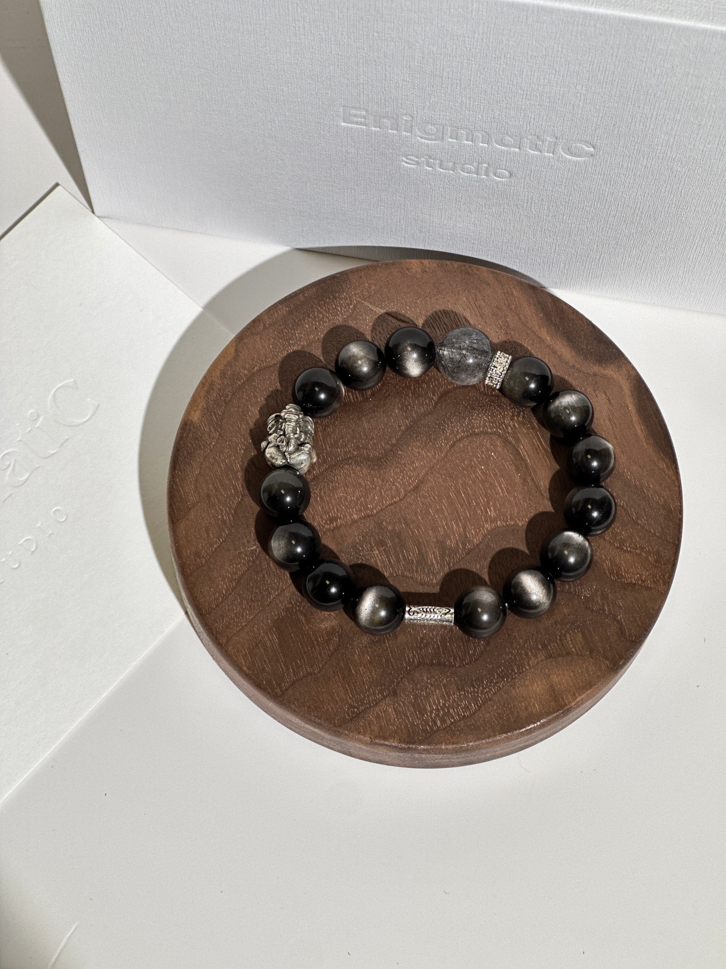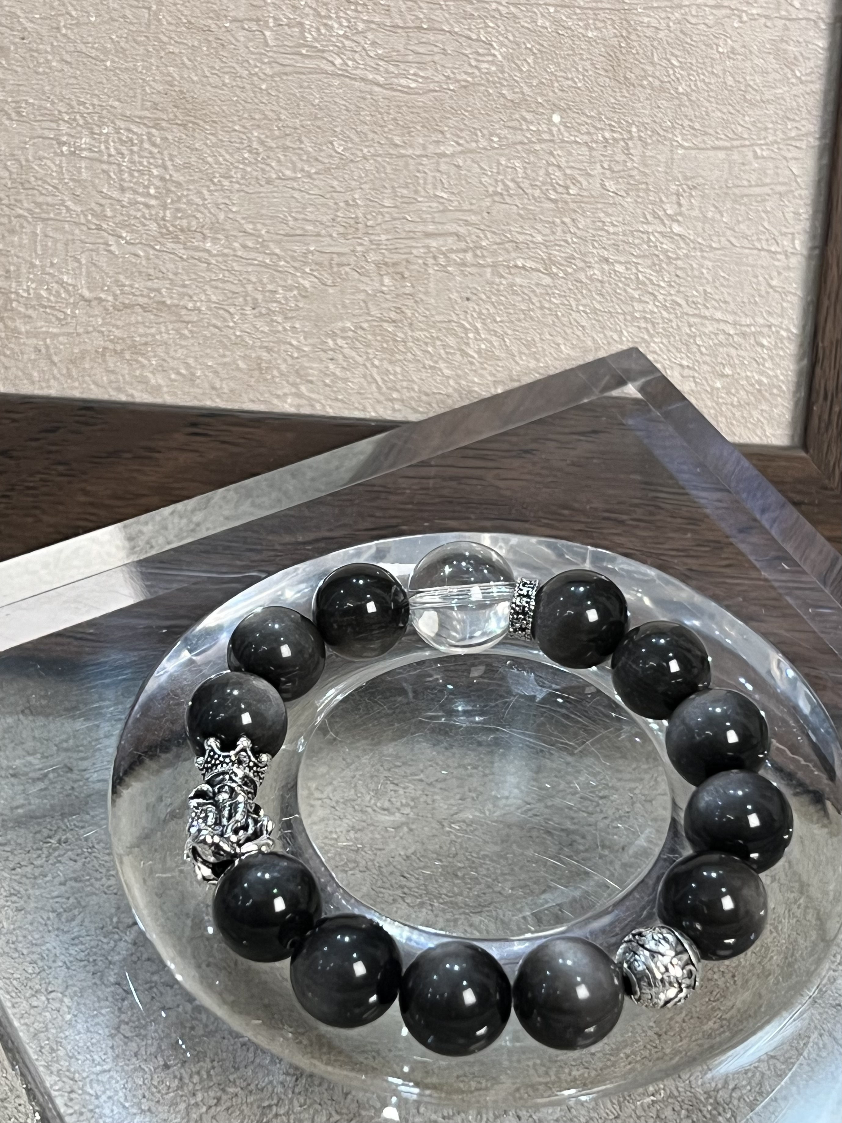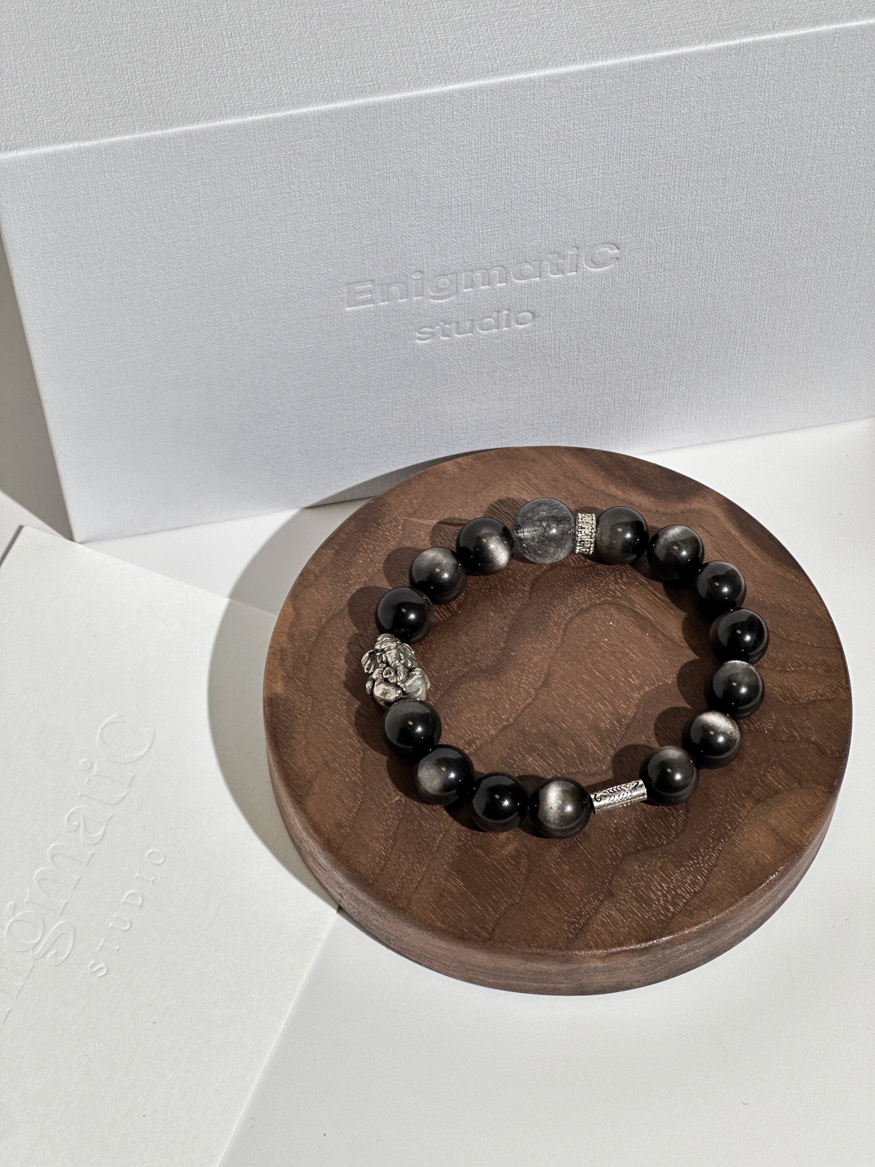 「摩诃摩耶」好运补给天然黑曜石白水晶新年送男友情侣手串本命年