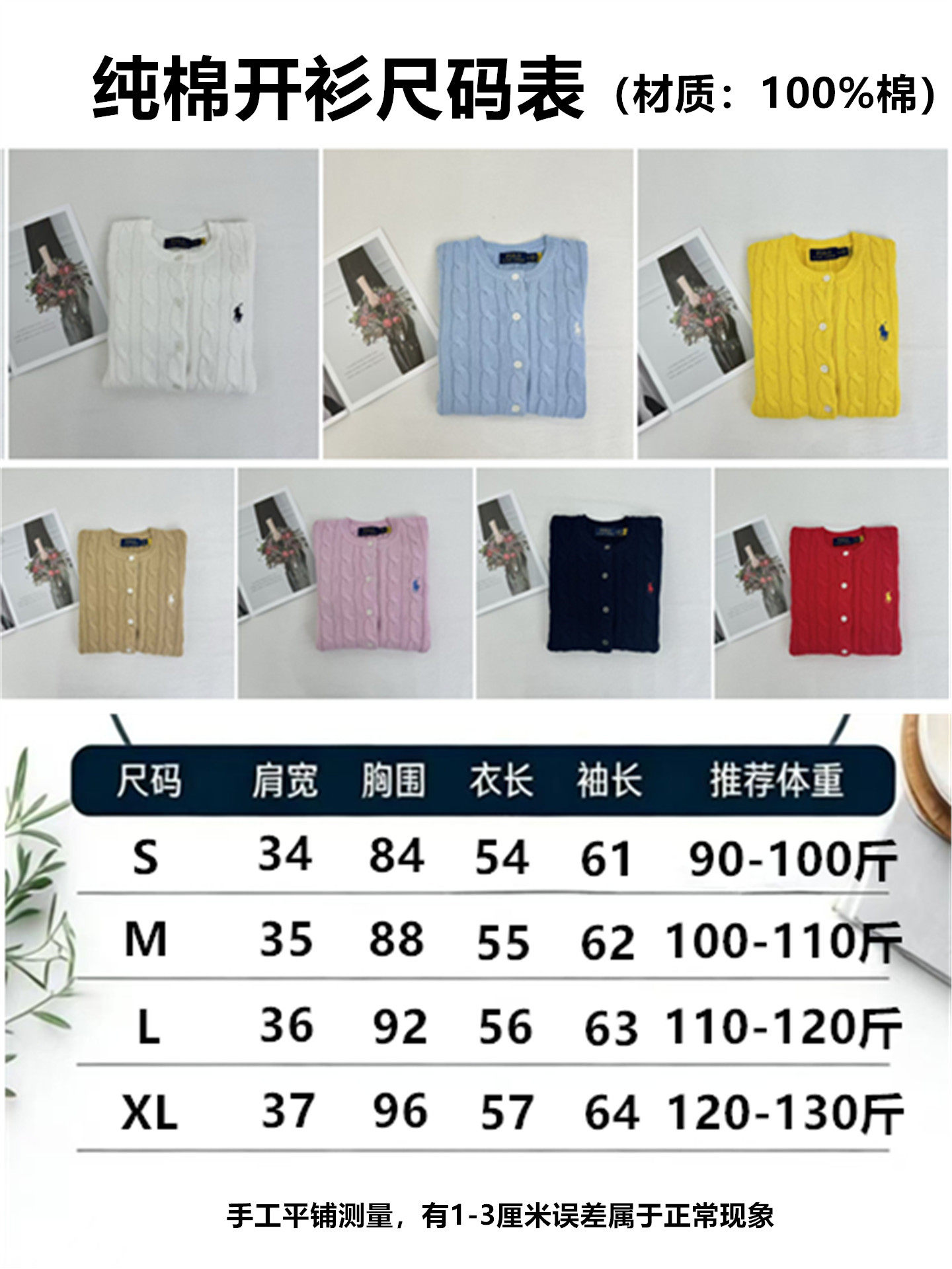 RALPH LAUREN拉夫劳伦秋冬小马刺绣麻花纹针织开衫女圆领纯棉毛衣